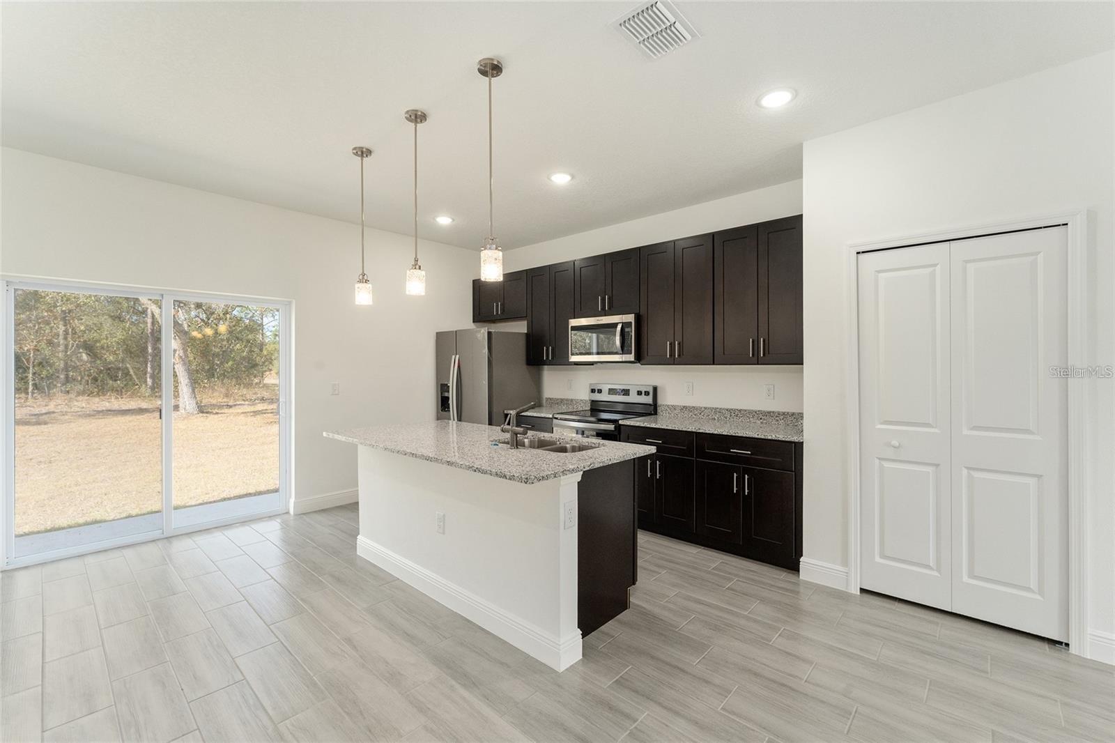 One or more photo(s) has been virtually staged. Brand-New, Move-In-Ready 4/2 Home in Citrus Springs! This affordable, newly completed 4-bedroom, 2-bathroom home offers 1,580 sq. ft. of thoughtfully designed living space in beautiful Citrus Springs. Move-in ready, this home is perfect for those looking for modern comforts in a peaceful setting. The kitchen is a chef’s delight, featuring granite countertops, sleek GE appliances, an island with a double-bowl stainless steel sink, a Moen faucet, a garbage disposal, and elegant 36" dark espresso cabinets. Throughout the home, you’ll find upgraded ceramic tile flooring, 3 1/4" decorative base molding, granite bathroom countertops, and stylish tile shower walls. Prime Location for Outdoor Enthusiasts! Love fishing, cycling, or outdoor adventures? This home is less than 10 minutes from Rainbow River, Lake Rousseau, and the Withlacoochee River. The Halapata Tastanaki Preserve and its scenic 46-mile Withlacoochee Trail are just a short bike ride away! Plus, you’re only 20 minutes from Crystal River’s stunning springs, parks, and beaches, including Three Sisters Springs. Convenience Meets Serenity Enjoy the perfect balance of peaceful living with easy access to everyday essentials—groceries, restaurants, shopping, pharmacies, and medical facilities are just 10 to 20 minutes away in Dunnellon or Crystal River. Need to travel? Tampa and Orlando’s airports and attractions are just over an hour’s drive. If you're looking for a quiet retreat that’s close to everything you need, this home is for you! Call today to schedule a showing and start your next chapter in North Central Florida’s hidden gem!