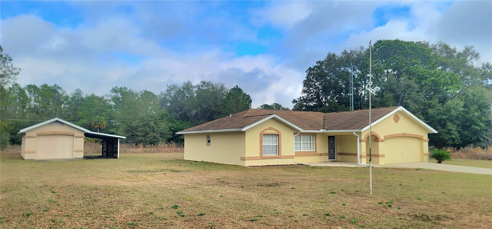 **Welcome to Your New Home!** This charming 3-bedroom, 2-bathroom home with a split floor plan offers both comfort and convenience. The house is equipped with a brand new hot water heater and boasts a whole-house backup Generac generator powered by propane, ensuring peace of mind during power outages. The A/C was replaced in 2015 and had a re-roof done in 2007. The spacious 2-car garage just had epoxy put down on the floor. There is also a detached garage with a lean-to perfect for DIY projects, extra storage or a place to park the boat and toys. Outside, enjoy the amenities of a well-maintained community that includes access to beautiful lakes with a fishing dock, a private boat ramp, and an array of recreational facilities, such as a workout center, community centers for both adults and teenagers, basketball courts, tennis courts, and a scenic park with a walking trail and outdoor workout stations. Located close to the Gulf of Mexico, the Rainbow River, Crystal River, and the Goethe National Forest, this property offers a perfect blend of tranquility and outdoor adventure. Whether you're into boating, fishing, hiking, or simply relaxing, this home has something for everyone. Don't miss the opportunity to make this wonderful property your own!