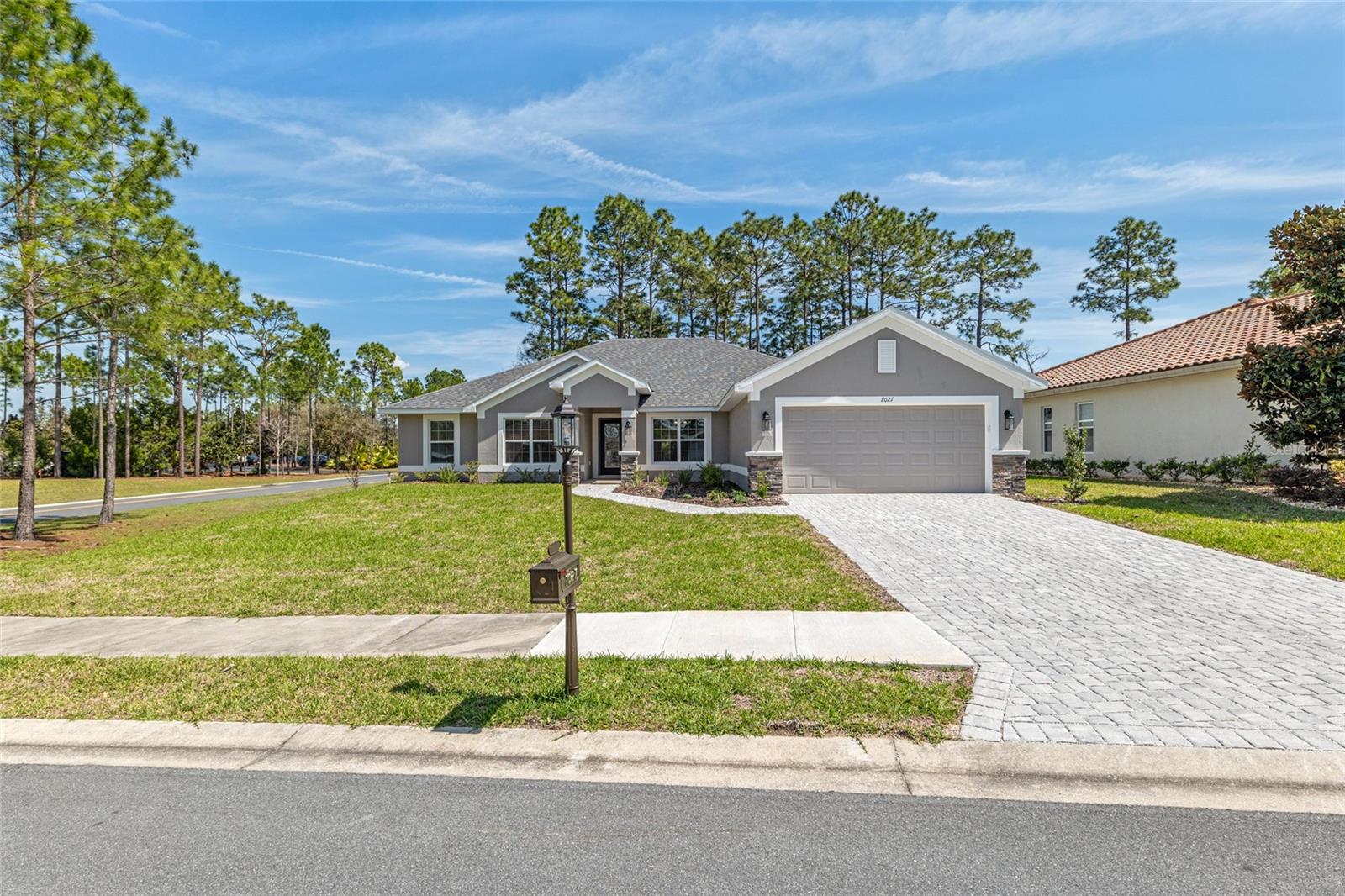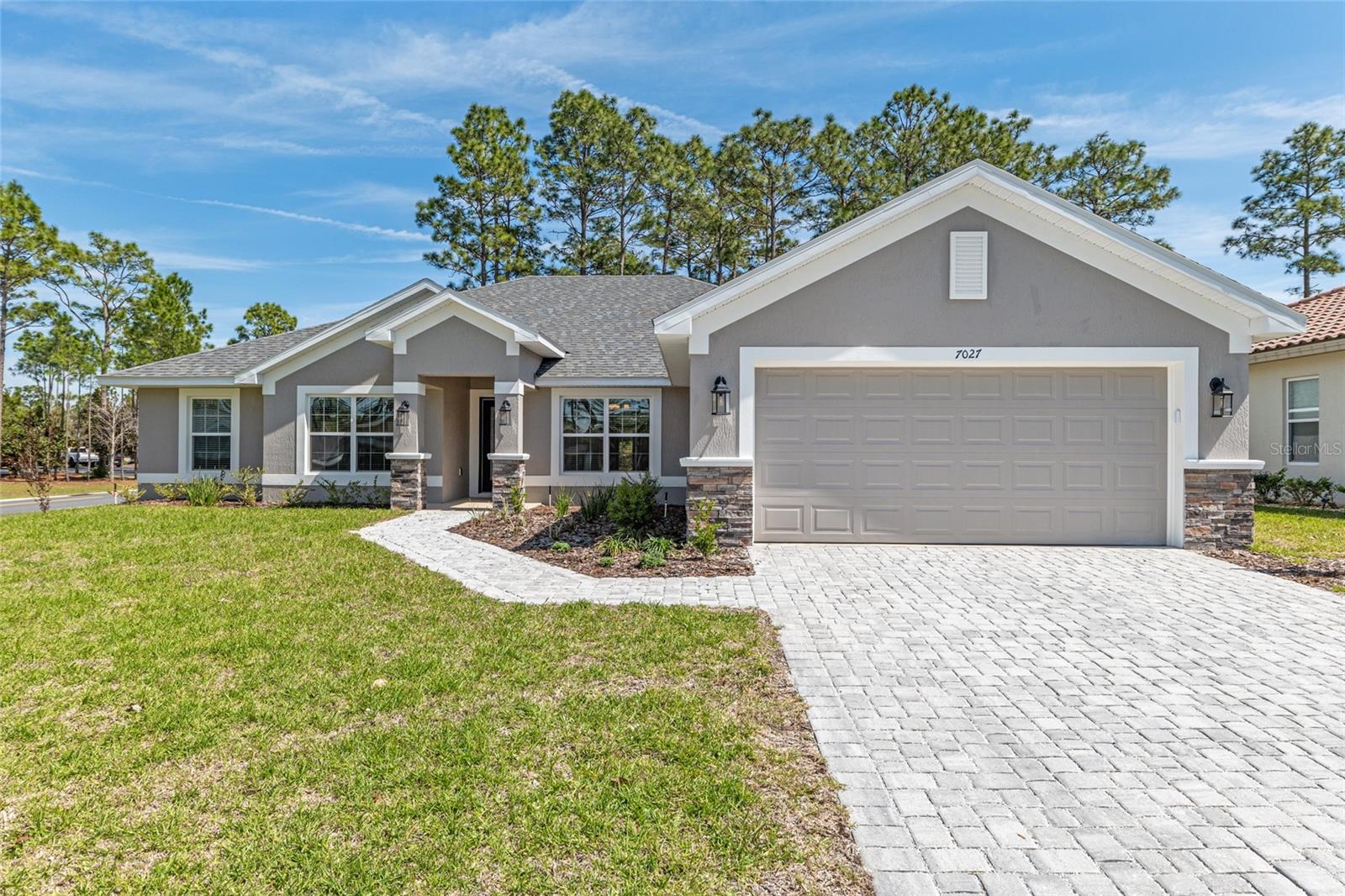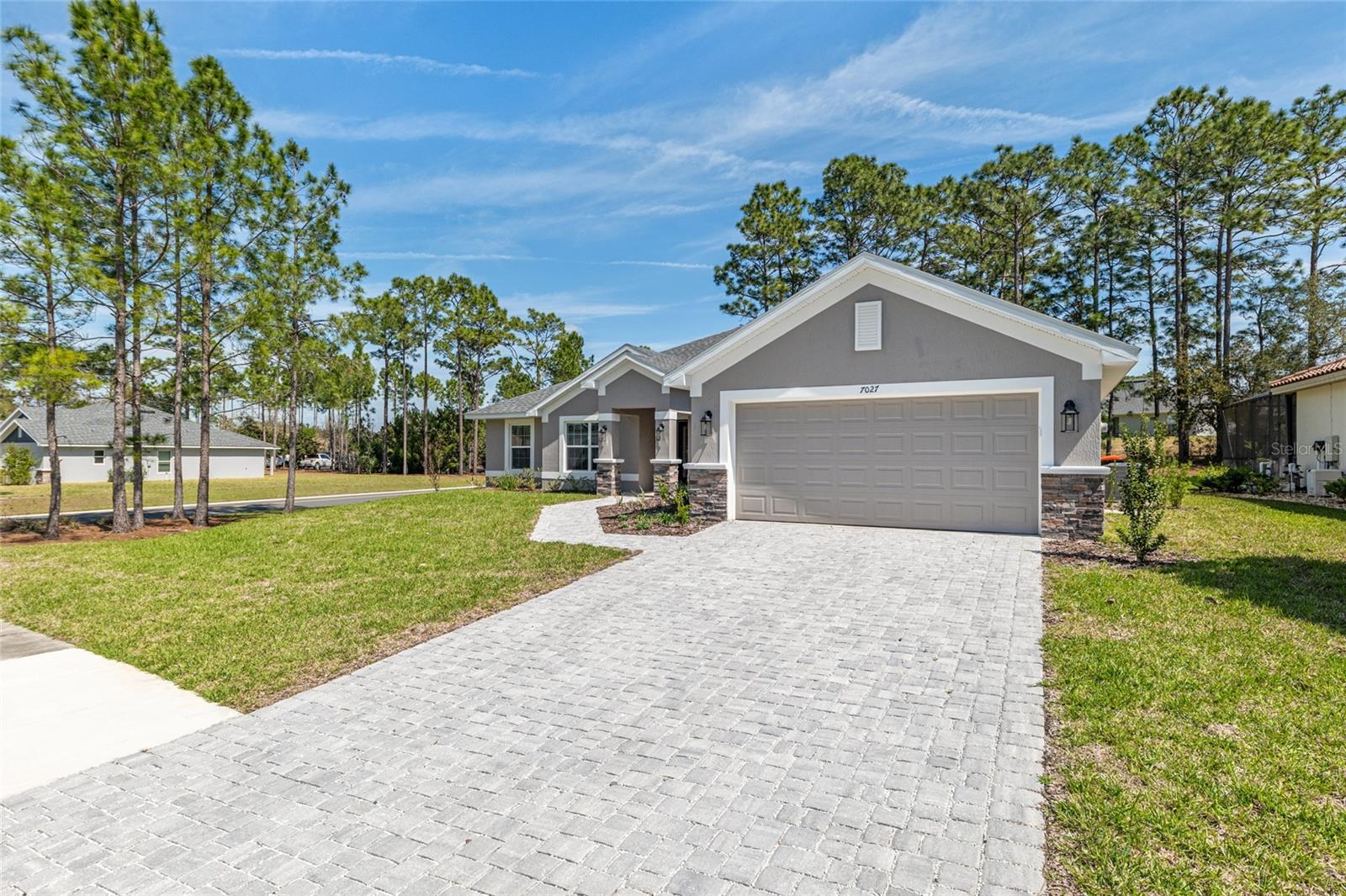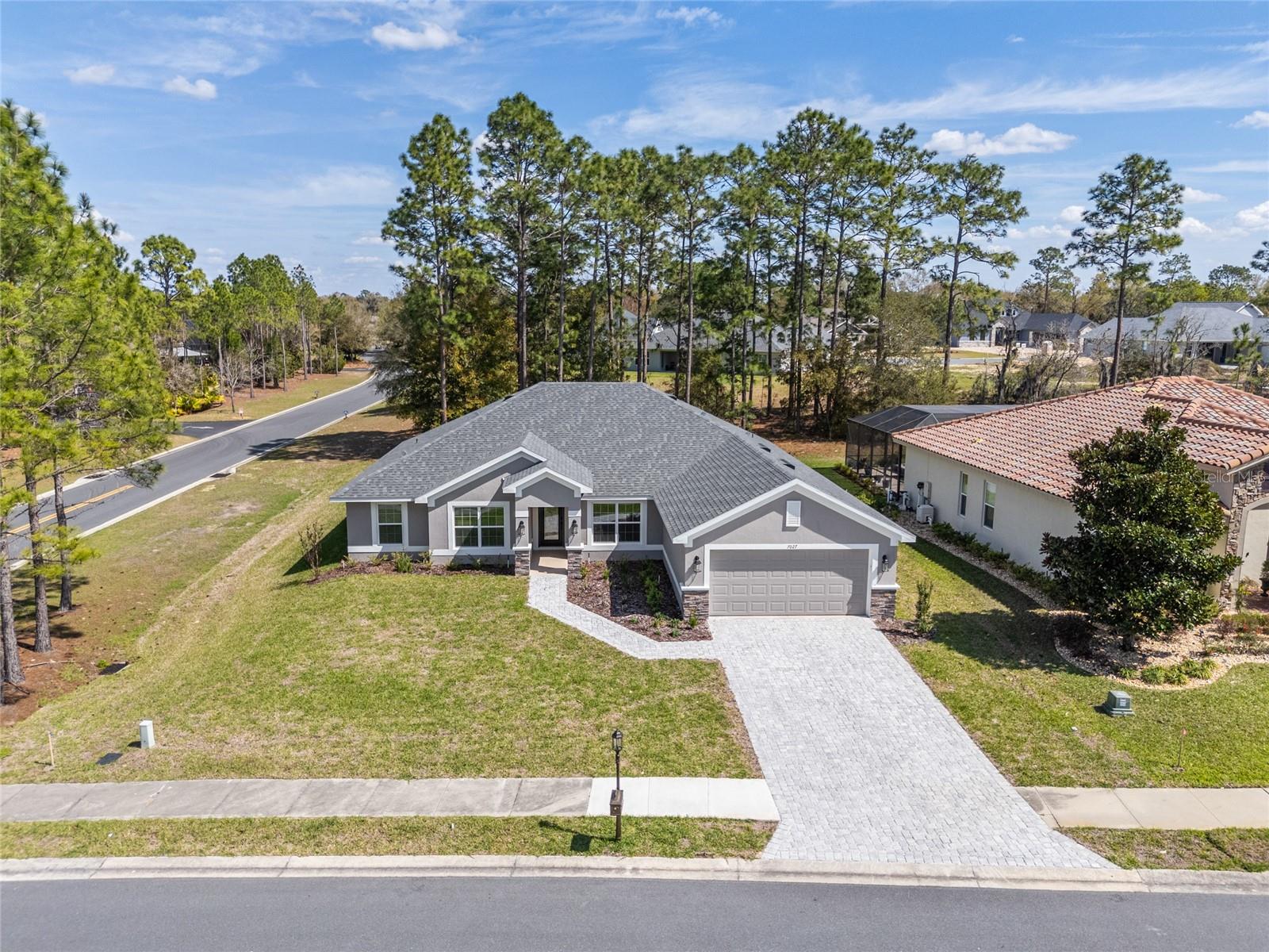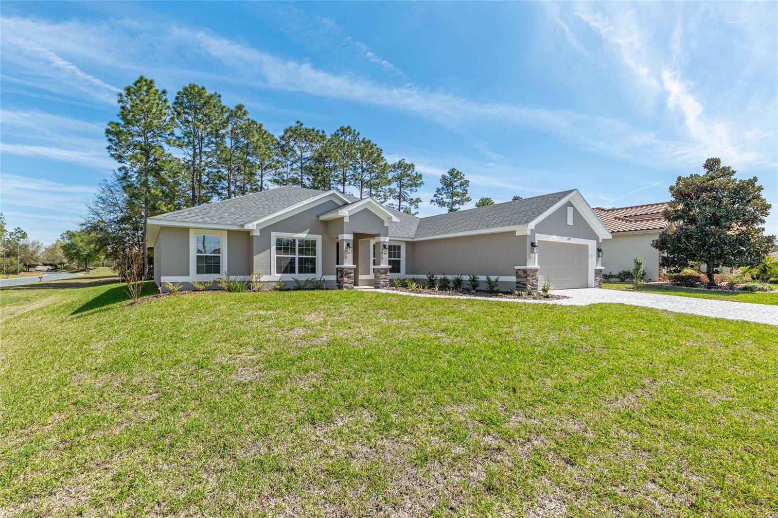 Gorgeous 2024 BUILT 4/2/2 home in Juliette Falls, a gated golf course community! CORNER lot with green space behind the home. Great curb appeal with paver driveway and walkway. SPACIOUS HOME with 2557 ft living space. Light and bright! Wood look tile plank flooring throughout living areas. OPEN FLOOR PLAN with vaulted ceilings and large living room and dining room. Eat in kitchen has a breakfast bar, pantry, SS appliances, plenty of granite counters and upgraded shaker cabinets. The office/flex room can also be used as a family room or 5th bedroom. Primary suite has tray ceiling, TWO WALK-IN CLOSETS, linen closet, dual sinks, granite counters, walk-in tile shower, and water closet. Split bedroom plan has 3 more bedrooms and bathroom on the other side of the home. Indoor laundry room. Enjoy the pretty backyard from the covered lanai. Includes irrigation system and tubes-in-the-wall pest control. Juliette Falls is a master designed gated golf course community featuring a top-ranked golf course! Juliette Falls' 540 acres includes a 136 acre conservation area with 3.5 miles of walking trails. Minutes from shopping and dining in downtown Dunnellon, Rainbow Springs State Park, and 10 miles from the World Equestrian Center. Easy drive to Ocala, Crystal River, the Villages, and Gainesville. Peaceful neighborhood! Transferrable warranty. (One bedroom isn't pictured).