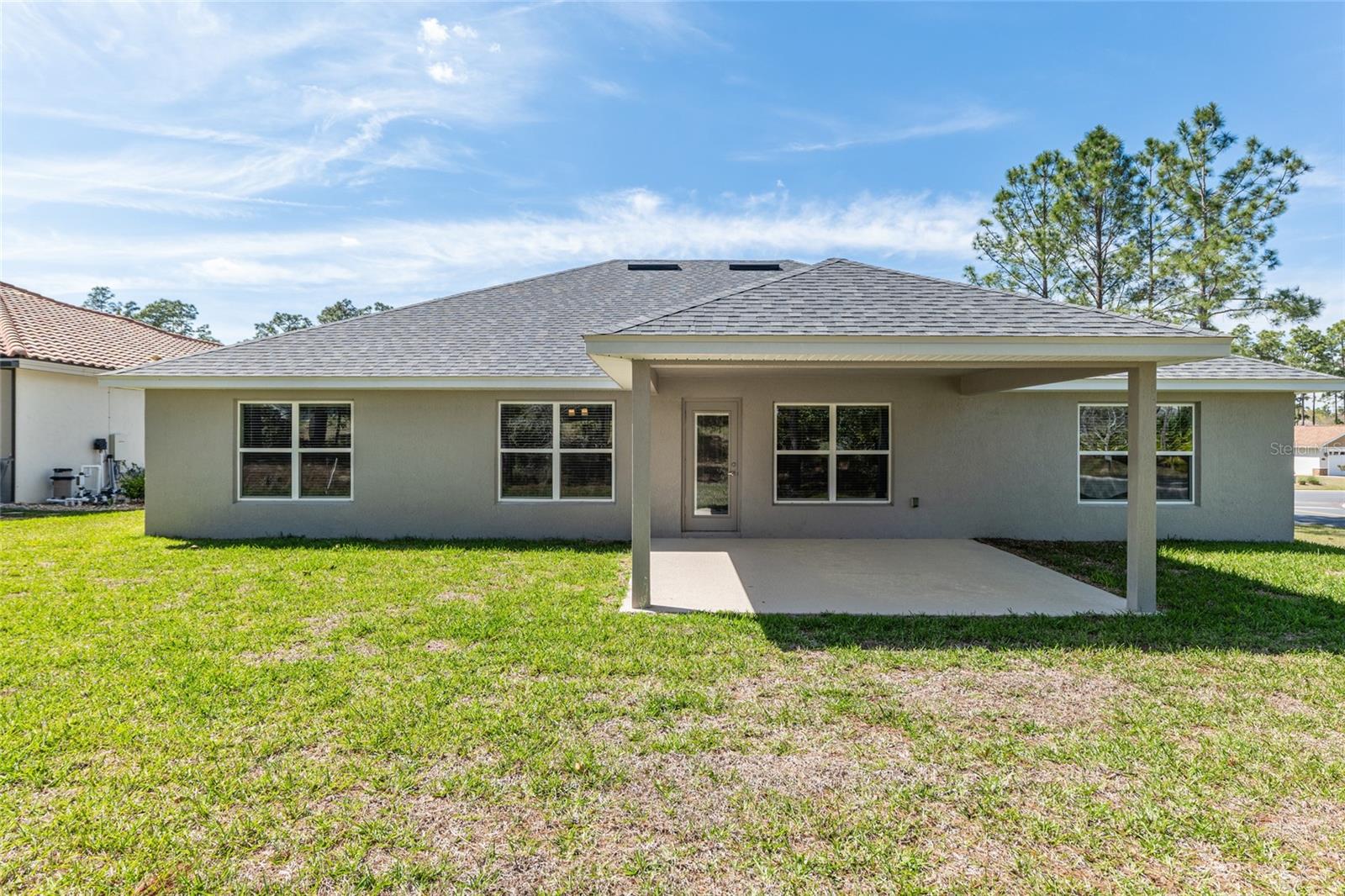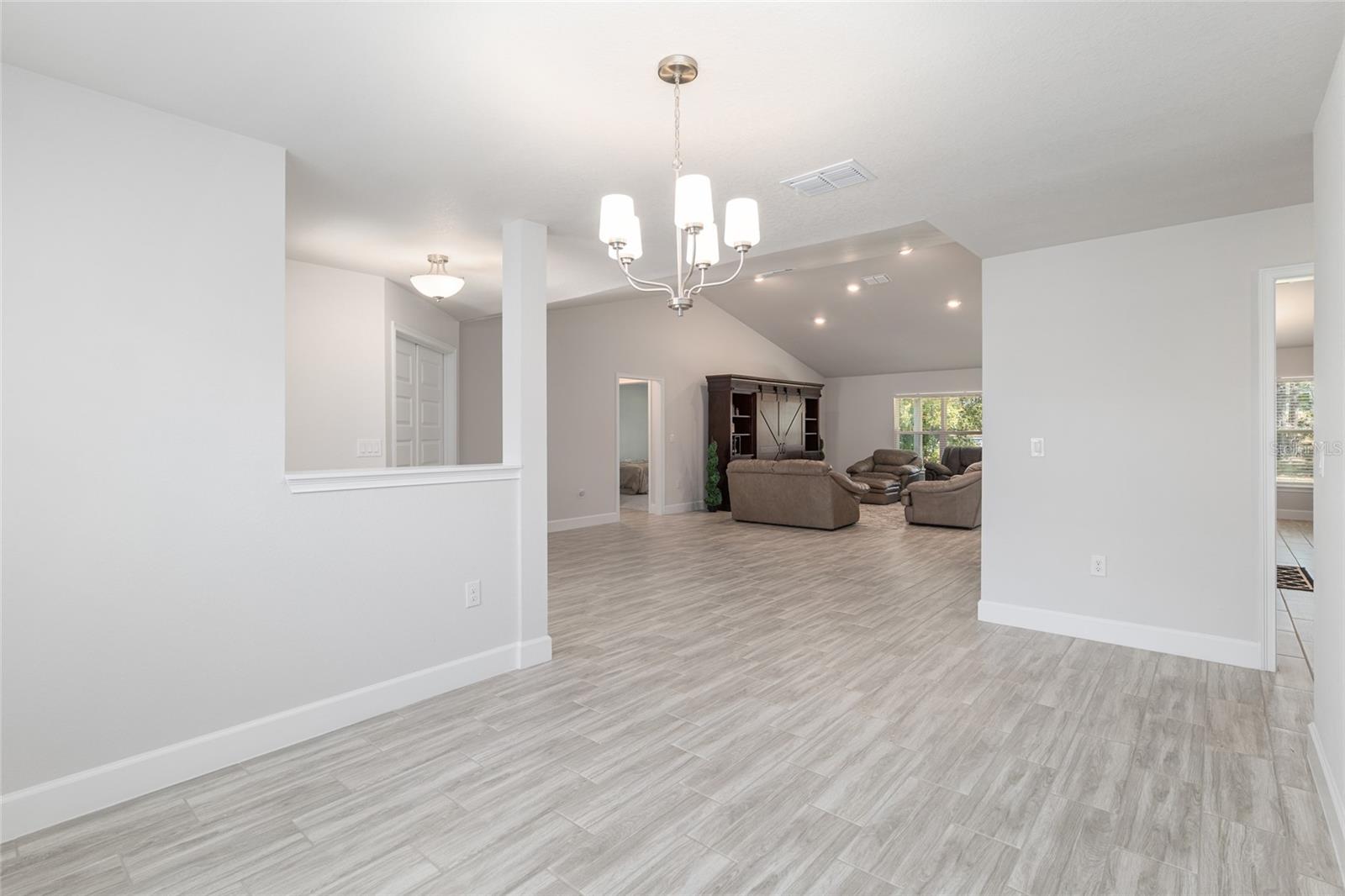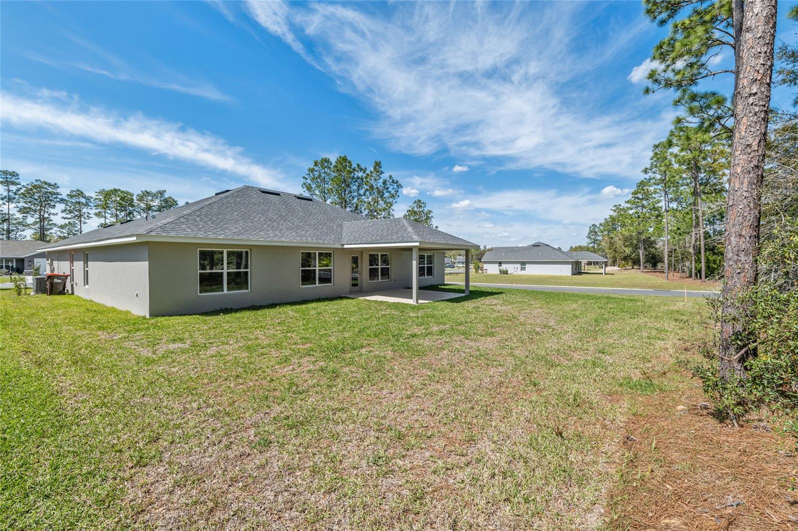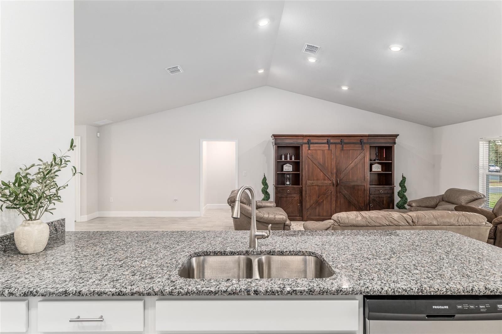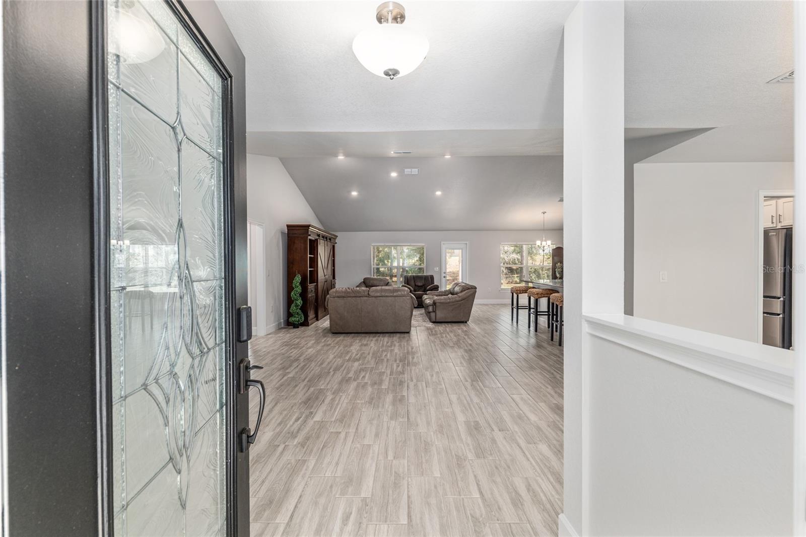 Gorgeous 2024 BUILT 4/2/2 home in Juliette Falls, a gated golf course community! CORNER lot with green space behind the home. Great curb appeal with paver driveway and walkway. SPACIOUS HOME with 2557 ft living space. Light and bright! Wood look tile plank flooring throughout living areas. OPEN FLOOR PLAN with vaulted ceilings and large living room and dining room. Eat in kitchen has a breakfast bar, pantry, SS appliances, plenty of granite counters and upgraded shaker cabinets. The office/flex room can also be used as a family room or 5th bedroom. Primary suite has tray ceiling, TWO WALK-IN CLOSETS, linen closet, dual sinks, granite counters, walk-in tile shower, and water closet. Split bedroom plan has 3 more bedrooms and bathroom on the other side of the home. Indoor laundry room. Enjoy the pretty backyard from the covered lanai. Includes irrigation system and tubes-in-the-wall pest control. Juliette Falls is a master designed gated golf course community featuring a top-ranked golf course! Juliette Falls' 540 acres includes a 136 acre conservation area with 3.5 miles of walking trails. Minutes from shopping and dining in downtown Dunnellon, Rainbow Springs State Park, and 10 miles from the World Equestrian Center. Easy drive to Ocala, Crystal River, the Villages, and Gainesville. Peaceful neighborhood! Transferrable warranty. (One bedroom isn't pictured).