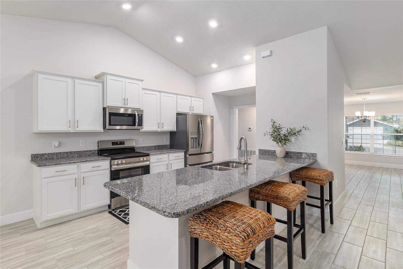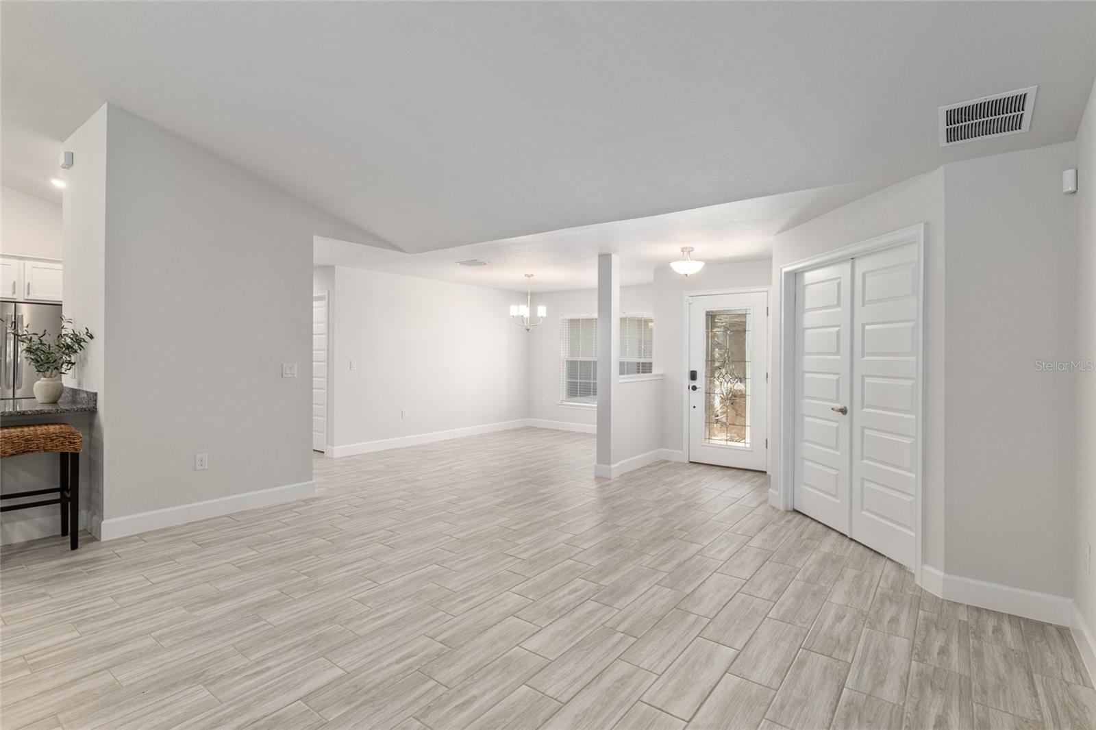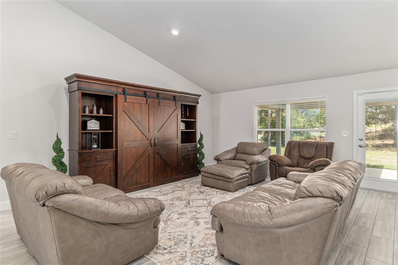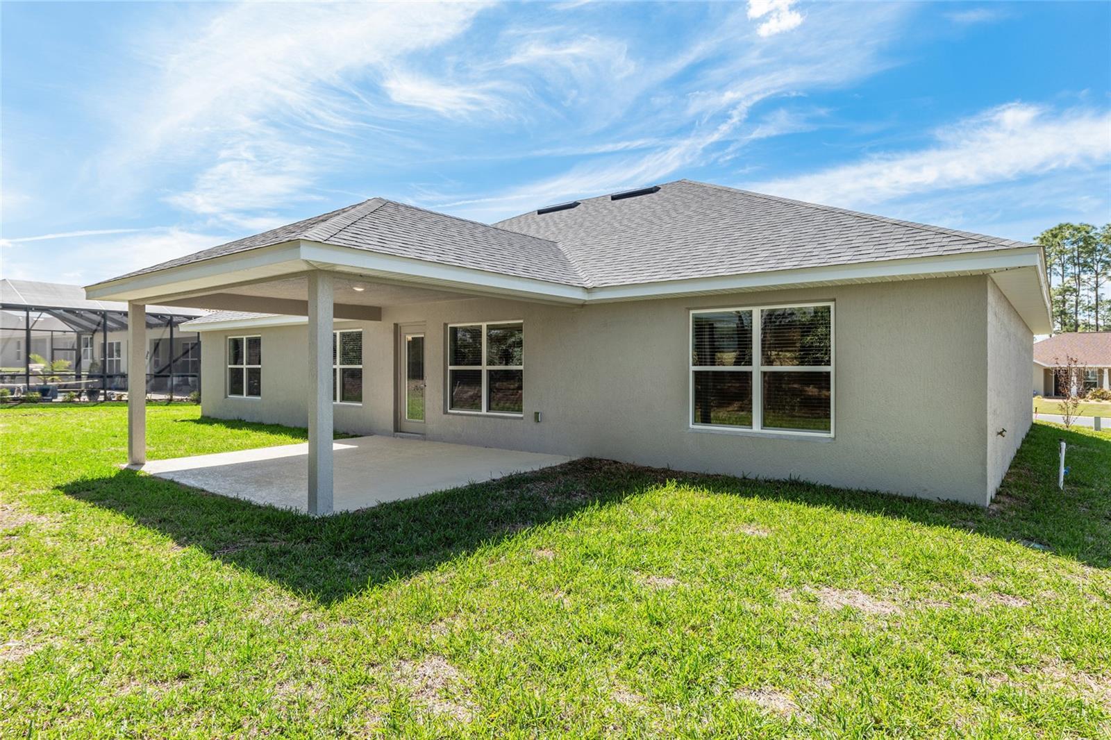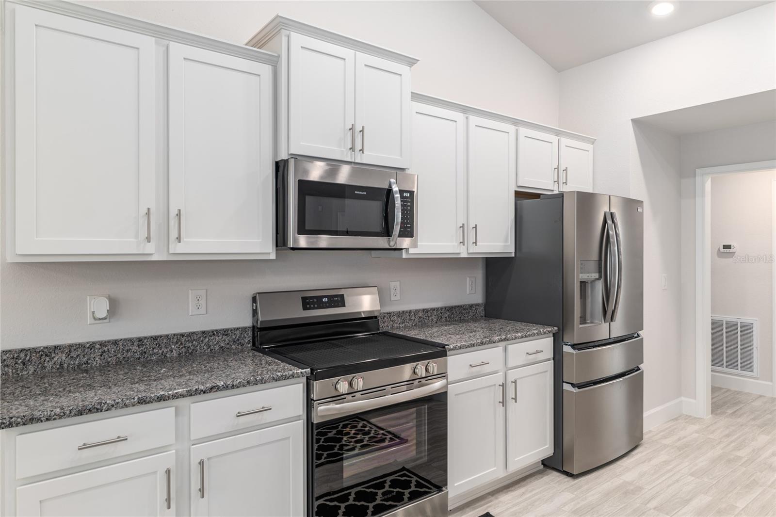 Gorgeous 2024 BUILT 4/2/2 home in Juliette Falls, a gated golf course community! CORNER lot with green space behind the home. Great curb appeal with paver driveway and walkway. SPACIOUS HOME with 2557 ft living space. Light and bright! Wood look tile plank flooring throughout living areas. OPEN FLOOR PLAN with vaulted ceilings and large living room and dining room. Eat in kitchen has a breakfast bar, pantry, SS appliances, plenty of granite counters and upgraded shaker cabinets. The office/flex room can also be used as a family room or 5th bedroom. Primary suite has tray ceiling, TWO WALK-IN CLOSETS, linen closet, dual sinks, granite counters, walk-in tile shower, and water closet. Split bedroom plan has 3 more bedrooms and bathroom on the other side of the home. Indoor laundry room. Enjoy the pretty backyard from the covered lanai. Includes irrigation system and tubes-in-the-wall pest control. Juliette Falls is a master designed gated golf course community featuring a top-ranked golf course! Juliette Falls' 540 acres includes a 136 acre conservation area with 3.5 miles of walking trails. Minutes from shopping and dining in downtown Dunnellon, Rainbow Springs State Park, and 10 miles from the World Equestrian Center. Easy drive to Ocala, Crystal River, the Villages, and Gainesville. Peaceful neighborhood! Transferrable warranty. (One bedroom isn't pictured).