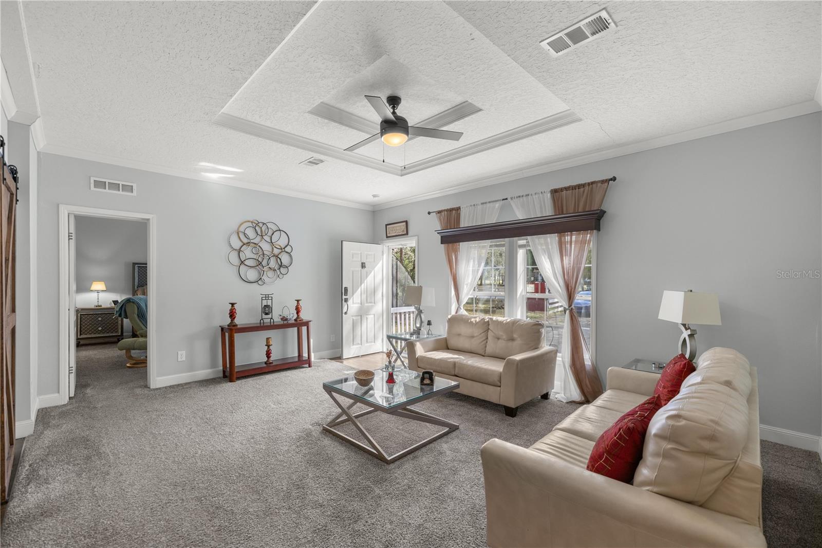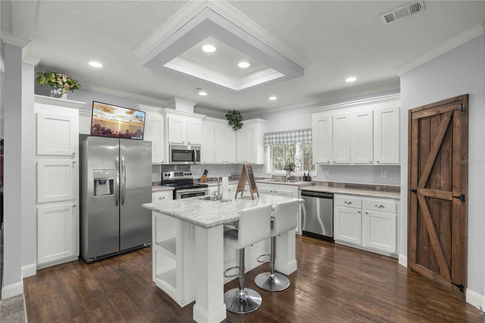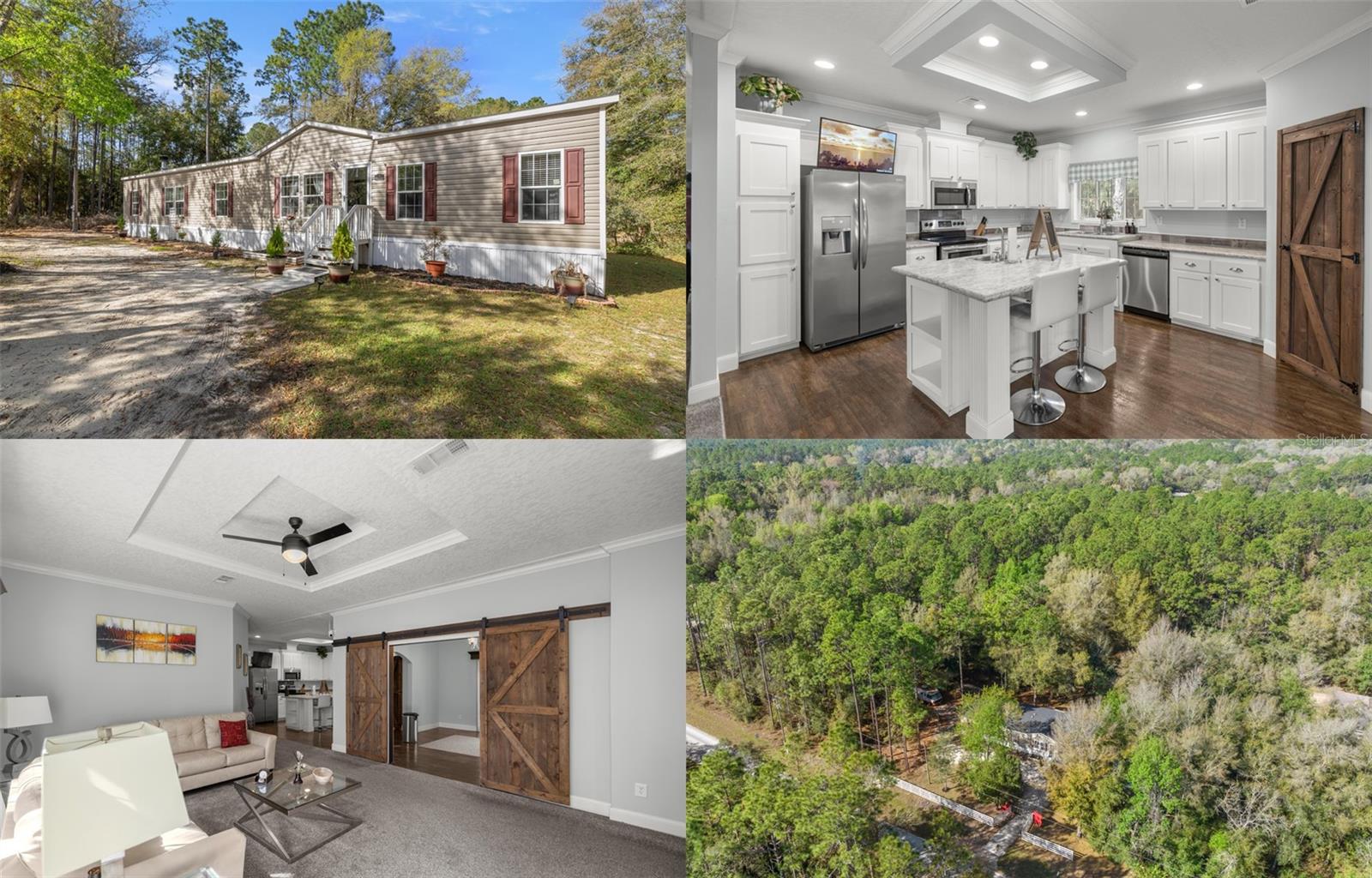 Nestled on a spacious one-acre corner lot with no HOA restrictions and zoned for agriculture, this stunning home offers over 2,400 sq. ft. of beautifully designed living space. Featuring four spacious bedrooms, two versatile living areas, beautiful 9 foot ceilings, this home provides ample room for relaxation and entertaining. The oversized kitchen is a chef’s dream, boasting generous counter space and storage, while the adjacent dining room/flex room, complete with custom barn doors, offers endless possibilities. The master suite is a true retreat, featuring a large walk-in closet, a luxurious soaking tub, and a walk-in shower. Cozy up in the family room by the built-in wood-burning fireplace, perfect for those chilly evenings. With plenty of space inside and out, this property is ideal for those seeking comfort, privacy, and the freedom of agricultural zoning. The workshop is a great area to create, or even convert to a tiny home! Don’t miss this incredible opportunity to enjoy country living with modern amenities! Just a short drive to Rainbow River tubing, state park and many more activities!