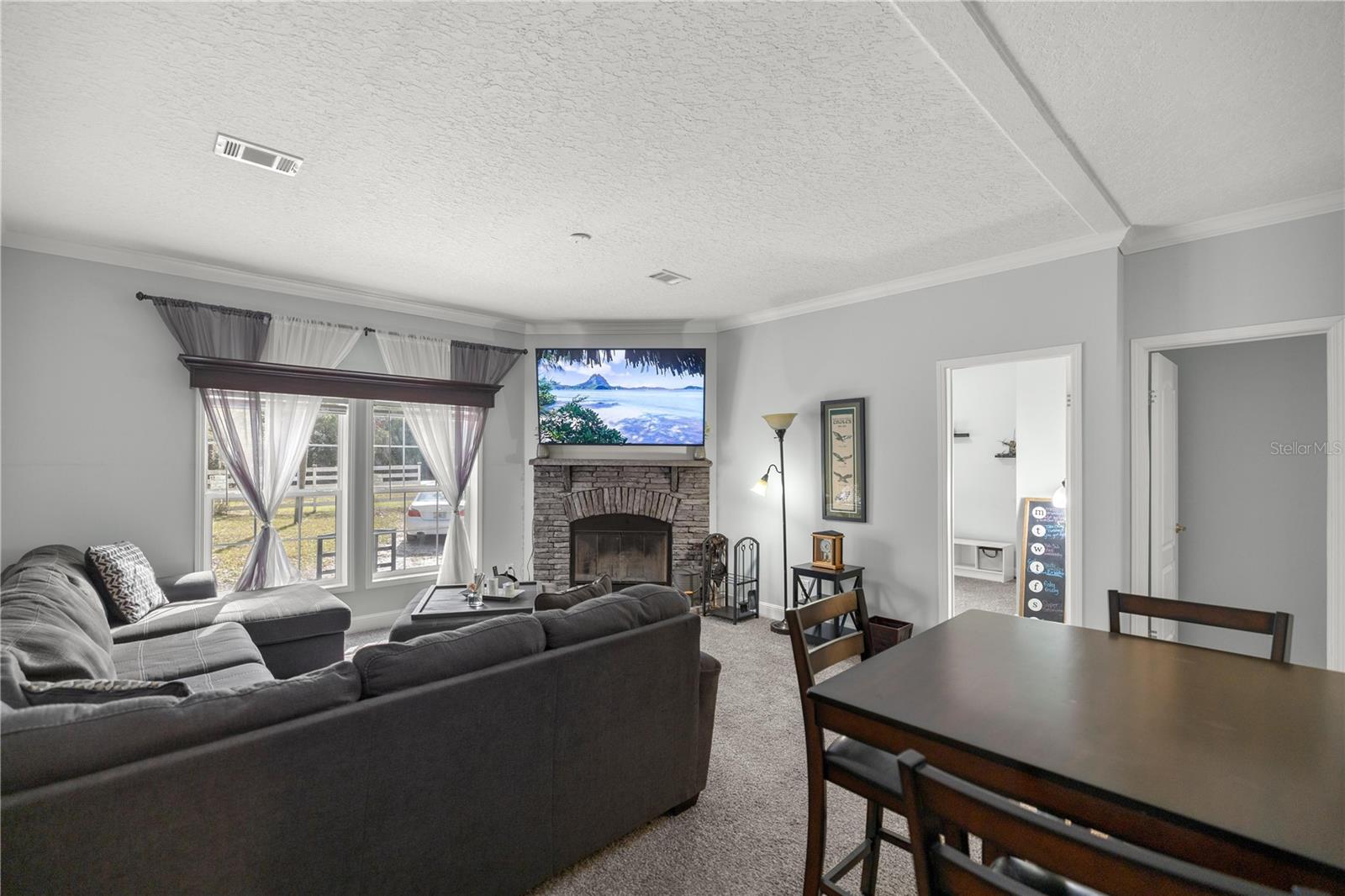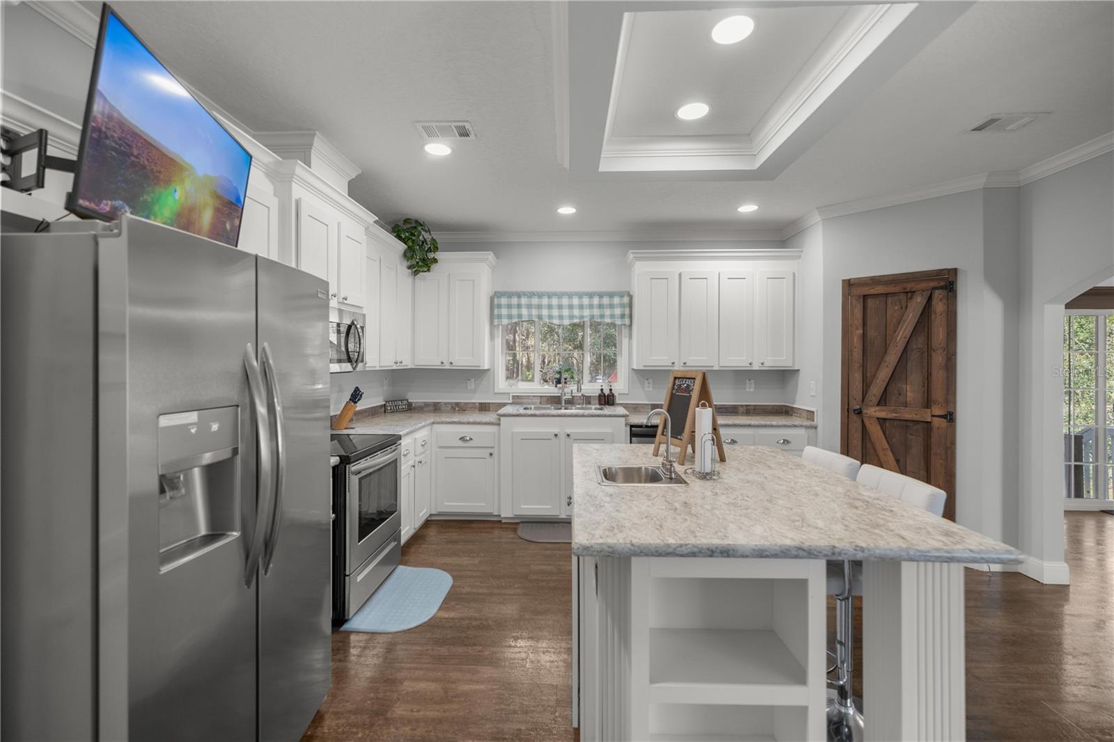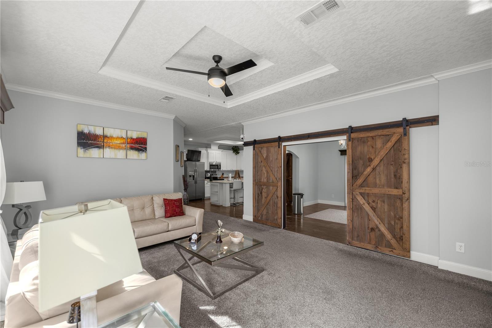 Nestled on a spacious one-acre corner lot with no HOA restrictions and zoned for agriculture, this stunning home offers over 2,400 sq. ft. of beautifully designed living space. Featuring four spacious bedrooms, two versatile living areas, beautiful 9 foot ceilings, this home provides ample room for relaxation and entertaining. The oversized kitchen is a chef’s dream, boasting generous counter space and storage, while the adjacent dining room/flex room, complete with custom barn doors, offers endless possibilities. The master suite is a true retreat, featuring a large walk-in closet, a luxurious soaking tub, and a walk-in shower. Cozy up in the family room by the built-in wood-burning fireplace, perfect for those chilly evenings. With plenty of space inside and out, this property is ideal for those seeking comfort, privacy, and the freedom of agricultural zoning. The workshop is a great area to create, or even convert to a tiny home! Don’t miss this incredible opportunity to enjoy country living with modern amenities! Just a short drive to Rainbow River tubing, state park and many more activities!