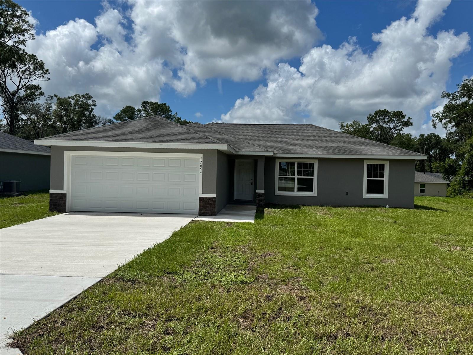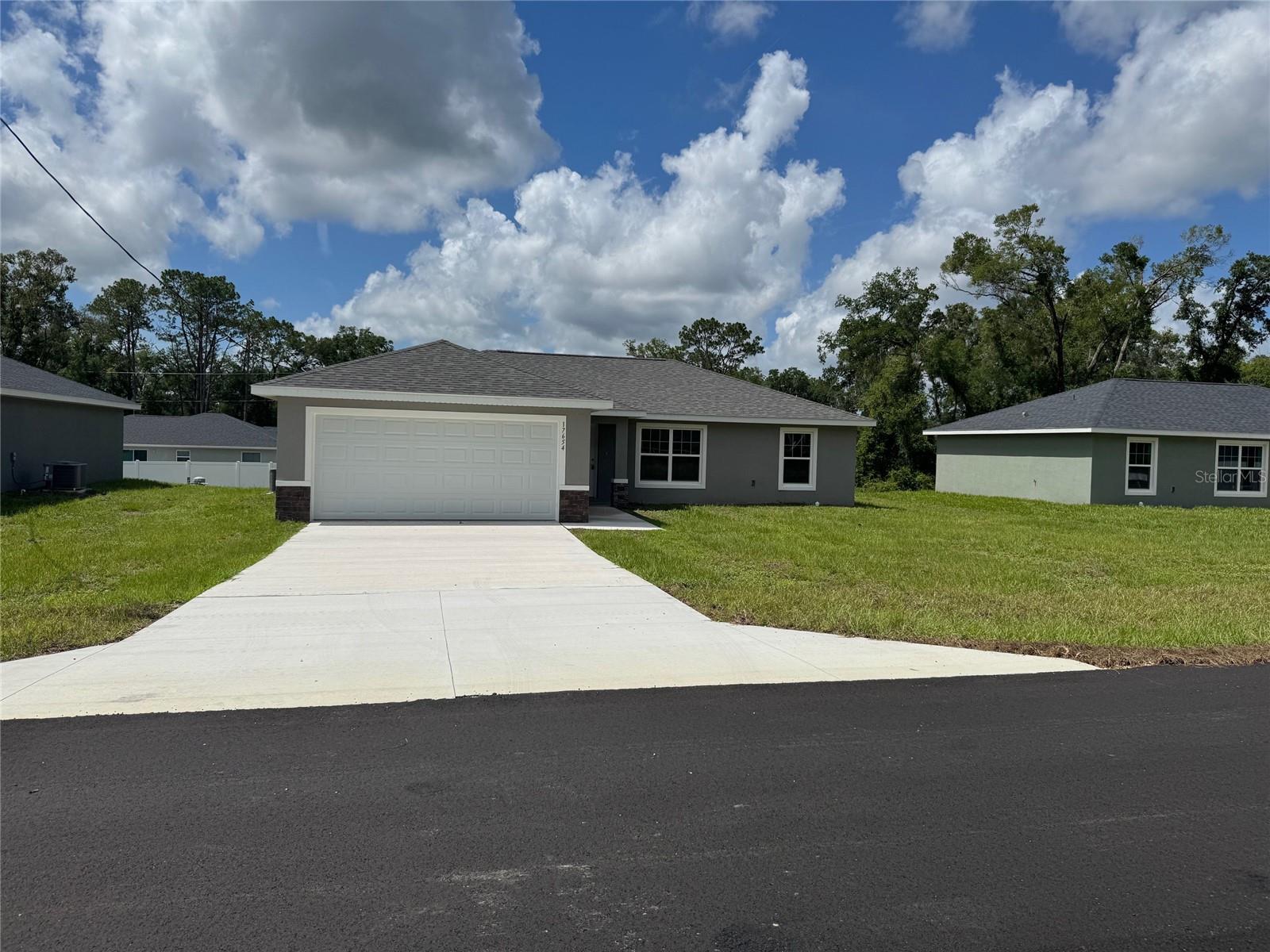 One or more photo(s) has been virtually staged. MOVE IN READY!!! Dunnellon Oaks Neighborhood just got BRAND NEW PAVED ASPHALT ROADS! Beautiful new construction home! Luxury Plank Vinyl flooring throughout all living and common areas, tile in bathrooms, and carpet in the bedrooms. Open floor plan with dining area and eat-in kitchen, all done in neutral, pleasing colors. Inside laundry with W & D hook-ups. Walk-in closet in Master bedroom. Stainless steel appliance package in the kitchen. Cabinets are white shaker-style with Peacock dark granite countertops. Please see attached documents from Builder (Builders Contract Addendum & Warranty) Great neighborhood, no HOA, location is minutes away for SW Ocala and Downtown Dunnellon. Rainbow River public access nearby, boat ramps, walking and bike trails, all just a minute drive down the road. Actual photos and model home staged photos attached for reference. ***Inquire about our preferred lender deals! Builder offering to contribute to buyer’s closing costs or help with rate buy downs! We can be flexible to help our buyers get into a beautiful home! ***