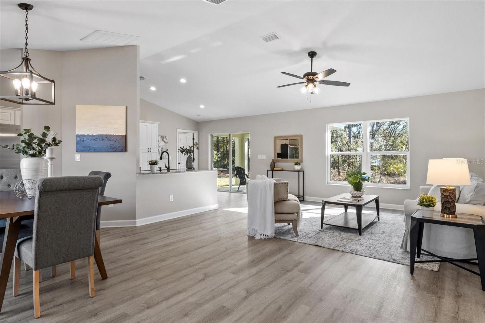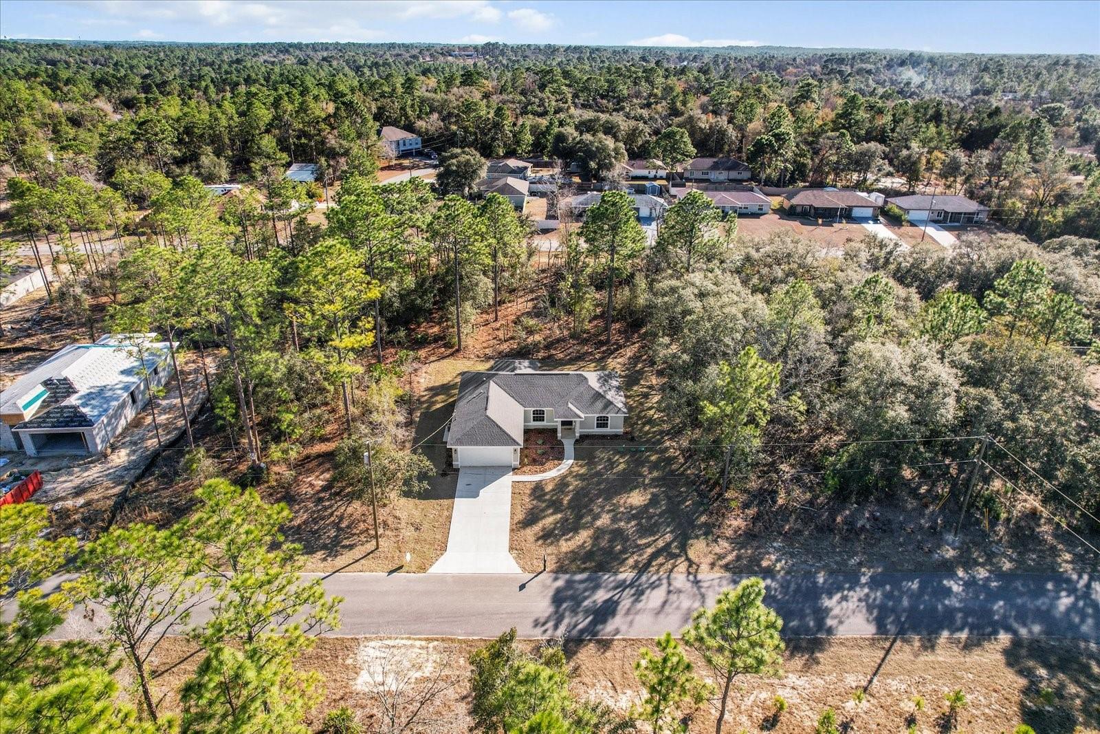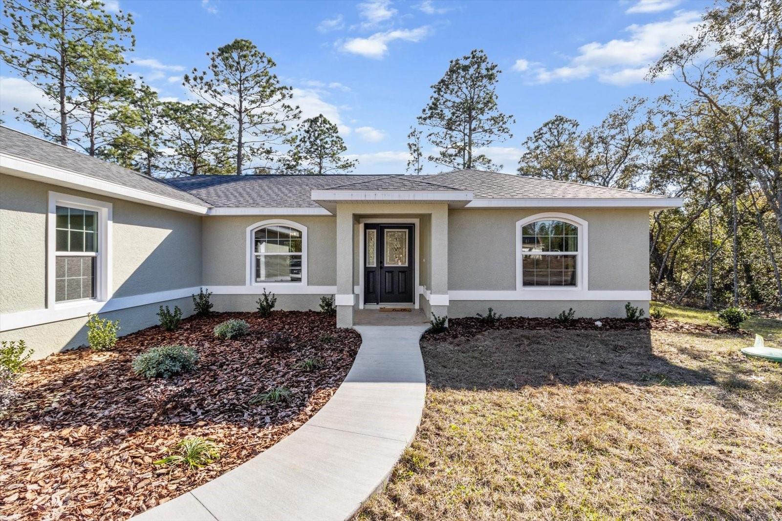 SELLER OFFERING CLOSING COST INCENTIVES! This brand-new, MOVE-IN-READY construction in the heart of Citrus Springs is waiting for you. Built by a trusted local builder known for exceptional craftsmanship, this stunning home offers 1,513 sq. ft. of living space and 2,137 sq. ft. under roof, including inviting front and back porches—ideal for soaking up the Florida lifestyle. Situated on a FLAT, fully usable lot, this property offers added privacy with no neighbors currently on either side or behind. Additionally, AN EXTRA 0.22-ACRE LOT NEXT DOOR IS AVAILABLE FOR PURCHASE, giving you the opportunity to expand your space or enhance your privacy. The beautifully landscaped yard with fresh sod enhances the home’s curb appeal. Designed with a thoughtful split floor plan, this home features three bedrooms, two bathrooms, a spacious two-car garage, and an indoor laundry room. The primary suite boasts a master bath with a double vanity sink, combining both style and functionality. High-end finishes include granite countertops throughout, luxury vinyl plank flooring, stainless steel appliances, and energy-efficient LED lighting. For added peace of mind, the home includes a 10-YEAR STRUCTURAL WARRANTY. Conveniently located less than a mile from Pine Ridge Estates and near the new Shoppes of Black Diamond, you'll enjoy easy access to Target, Walmart, Aldi, Starbucks, and more. Outdoor lovers will appreciate the close proximity to Rainbow River, the Gulf of America, and the Withlacoochee Paved Bike Trail. Plus, with Tampa and Orlando just an hour away, you get the perfect blend of quality, convenience, and charm. Don't miss this rare opportunity to own a high-quality, newly built home in an unbeatable location. Schedule your showing today!