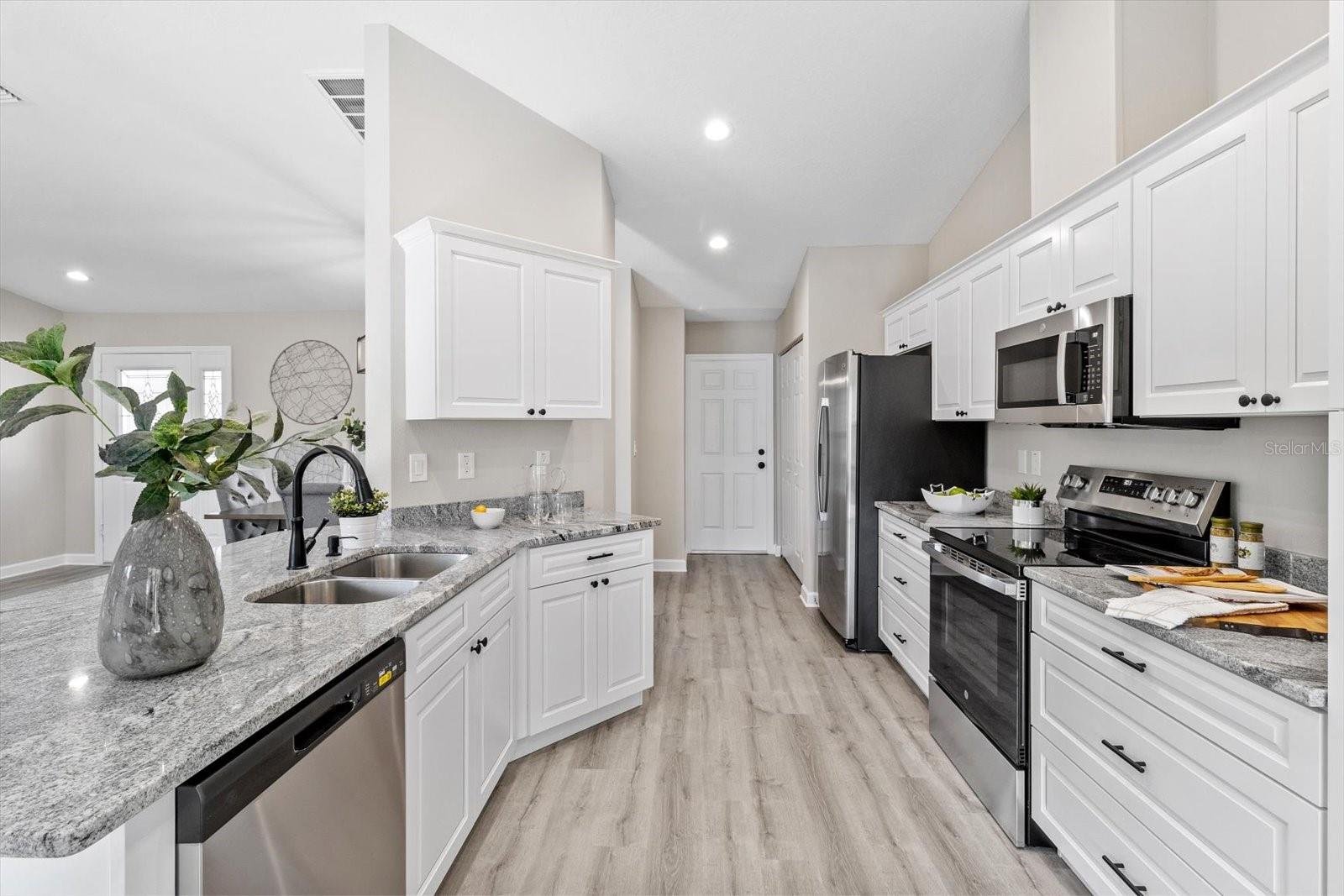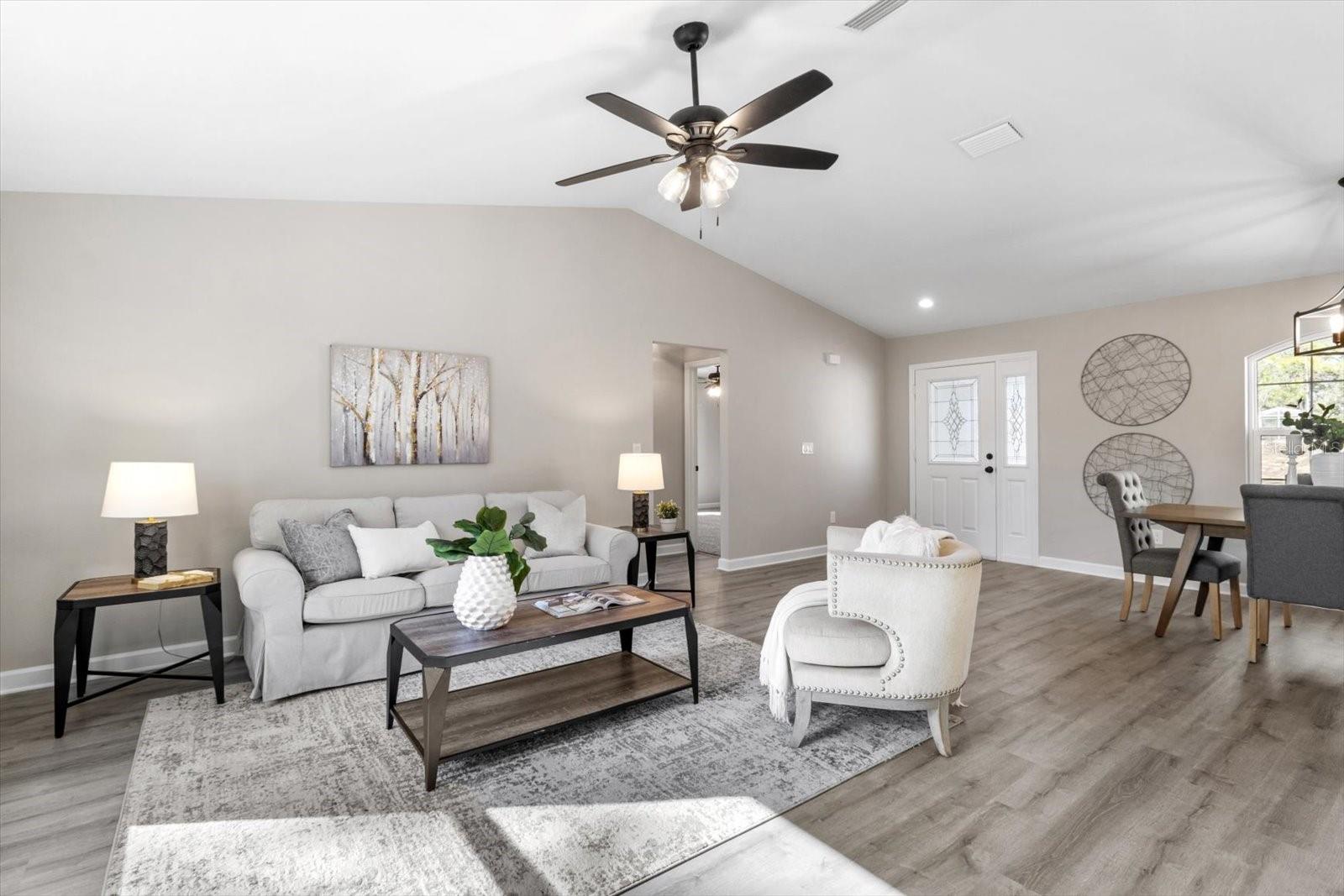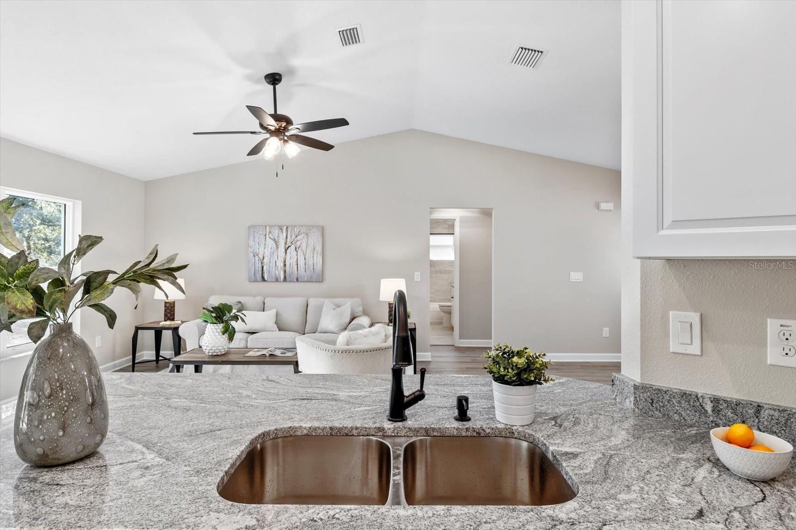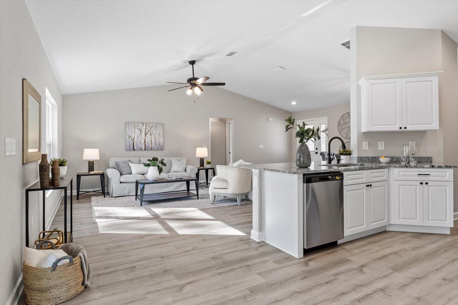 SELLER OFFERING CLOSING COST INCENTIVES! This brand-new, MOVE-IN-READY construction in the heart of Citrus Springs is waiting for you. Built by a trusted local builder known for exceptional craftsmanship, this stunning home offers 1,513 sq. ft. of living space and 2,137 sq. ft. under roof, including inviting front and back porches—ideal for soaking up the Florida lifestyle. Situated on a FLAT, fully usable lot, this property offers added privacy with no neighbors currently on either side or behind. Additionally, AN EXTRA 0.22-ACRE LOT NEXT DOOR IS AVAILABLE FOR PURCHASE, giving you the opportunity to expand your space or enhance your privacy. The beautifully landscaped yard with fresh sod enhances the home’s curb appeal. Designed with a thoughtful split floor plan, this home features three bedrooms, two bathrooms, a spacious two-car garage, and an indoor laundry room. The primary suite boasts a master bath with a double vanity sink, combining both style and functionality. High-end finishes include granite countertops throughout, luxury vinyl plank flooring, stainless steel appliances, and energy-efficient LED lighting. For added peace of mind, the home includes a 10-YEAR STRUCTURAL WARRANTY. Conveniently located less than a mile from Pine Ridge Estates and near the new Shoppes of Black Diamond, you'll enjoy easy access to Target, Walmart, Aldi, Starbucks, and more. Outdoor lovers will appreciate the close proximity to Rainbow River, the Gulf of America, and the Withlacoochee Paved Bike Trail. Plus, with Tampa and Orlando just an hour away, you get the perfect blend of quality, convenience, and charm. Don't miss this rare opportunity to own a high-quality, newly built home in an unbeatable location. Schedule your showing today!