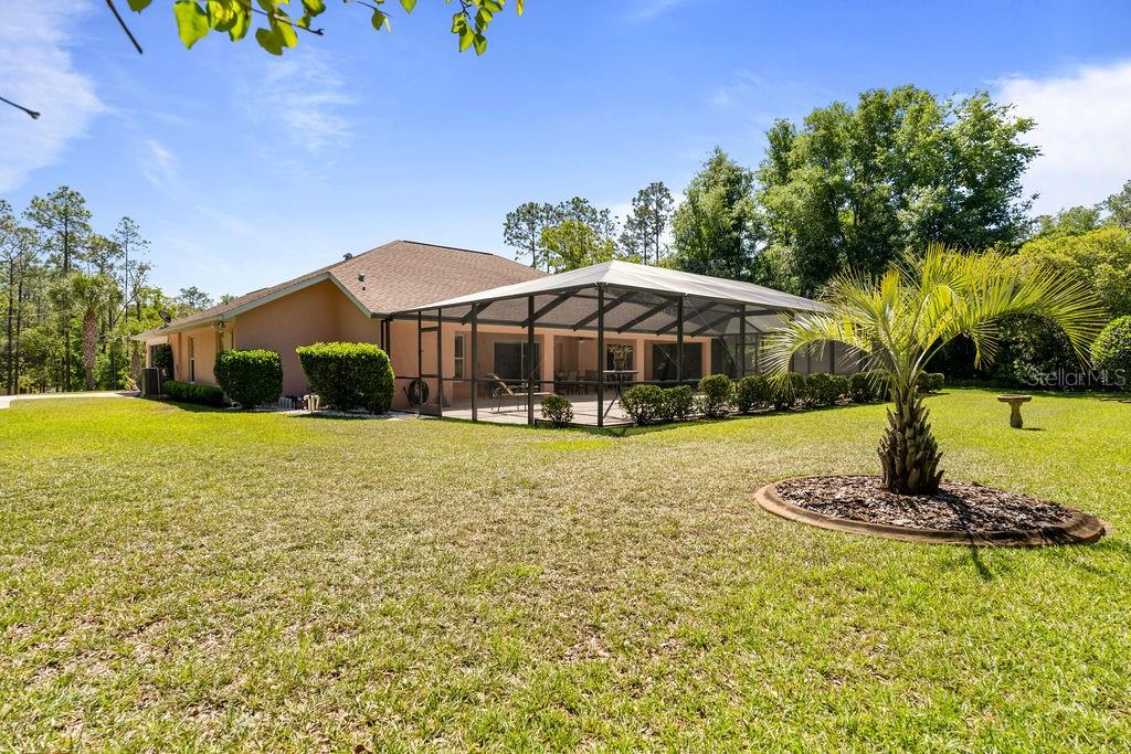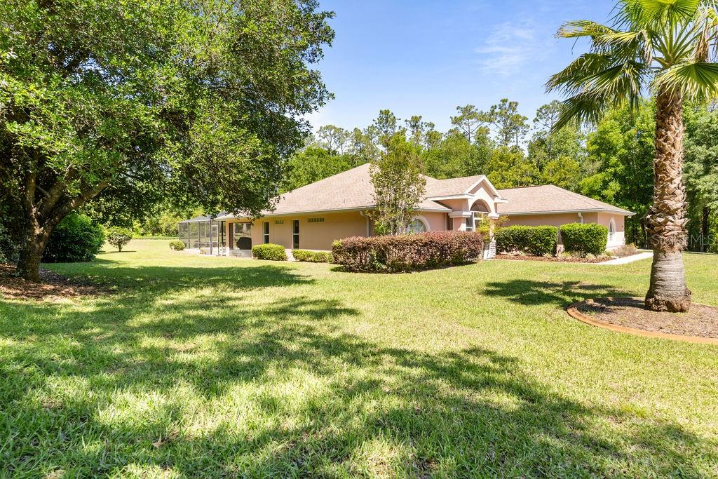 Welcome to your private oasis! This beautifully maintained 3-bedroom, 2-bath home features an open floor plan and is nestled on over an acre of land with stunning palm trees in the front yard. Enjoy the Florida lifestyle year-round with a screen-enclosed swimming pool, spacious 2-car garage, and ample room for gardening, RV/boat parking, or future additions. As part of a desirable community, you'll have private access to the crystal-clear Rainbow River through an exclusive owners' park. The clubhouse offers a top-notch restaurant, fitness center, billiards room, arts & crafts studio, plus a community pool, basketball, and tennis courts. Comfort, privacy, and resort-style amenities—this home has it all!