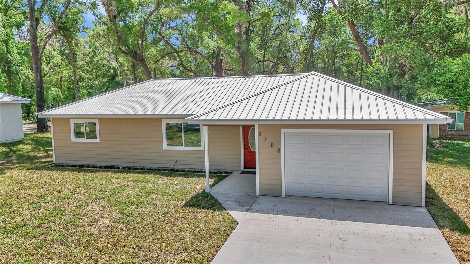 One or more photo(s) has been virtually staged. New Quality Built 3 Bedroom, 2 Bath Home W/Open Concept, Split Bedroom Plan. The Home Is Nestled On A Mature Treed 1/4 Acre Lot W/Room For A Pool Or Exterior Outbuilding. The Experienced Family-Owned Builder Only Builds A Few Homes & Takes Pride In Their Design & Work. The Home Boast Real Wood Floors, Tile Floors In Bthrms, Neutral Color Pallet, Upgraded Hardware & Light Fixtures. The Open Concept Living Area Is Light & Bright That Has French Doors That Open To A True Covered Back Porch For Extra Space For Relaxing Or Entertaining. The Kitchen Has Solid Wood Cabinets, Granite Countertops & A Breakfast Bar. Great Memories Will Be Made In This Ample Sized Kitchen. Dining Area Off Kitchen Incorporates Glass French Doors W/Internal Blinds. The Living Area Will Definitely Hold A Large TV If That's A Feature Your Looking For. The Primary Bedroom Host a Walk In Closet, Ensuite W/Tiled Walk Up Shower. A Nice Feature Of The Primary Bedrm, Is The Glass Door That Leads Out To The Covered Patio. The Relaxed Feel Of The Home Is Seen When You Drive Up W/The Ship Lack Style Exterior & Galvalume Metal Roof. The Home Builder Made Sure That The Home Is Energy Efficient W/R-19 Insulation in The Walls, R-30 Cathedral Ceiling, Energy Star Windows, Protective Water Barrier on Exterior Walls & Siding is LP Smart Siding w/a 50 Year Warranty. The Area Around The Home Has A Laid Back Feel, Lake Russeau Access That Joins The Withlacoochee River Both Known For Bass Fishing, Kayaking, Boating. Even Take A Boat Ride Up To Rainbow River That Stays 72 degrees Year-Round. Area Has Walking/Biking Trails On The Rainbow, Withlacoochee River Plus The Trails Lead All The Way To Tampa. Convenience To Downtown Historic Dunnellon, Shopping, Doctors Is Only 7 Minute Drive. Easy Access To Crystal River or Inverness Is 20 Minutes Away & Tampa, Orlando Are Convenient To Access Less Than 2 Hour Drive. This Home Is New And Ready To Welcome You & Yours.