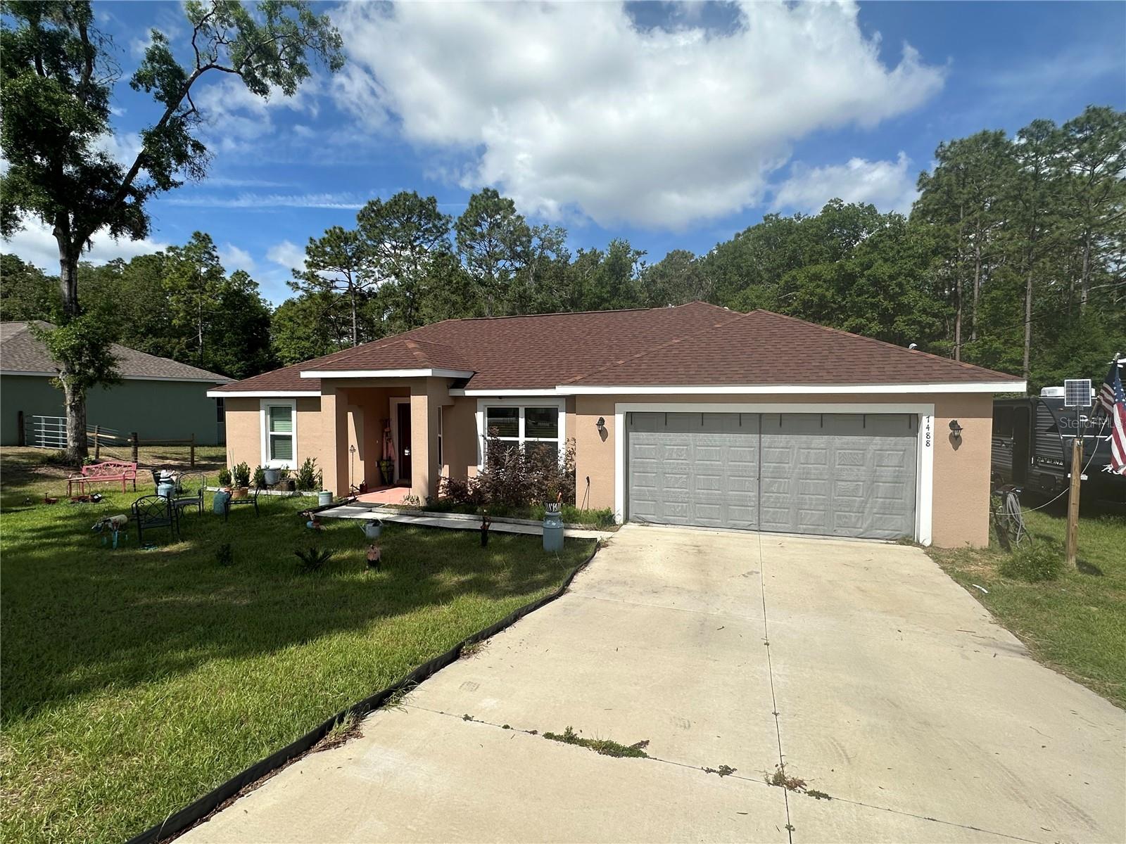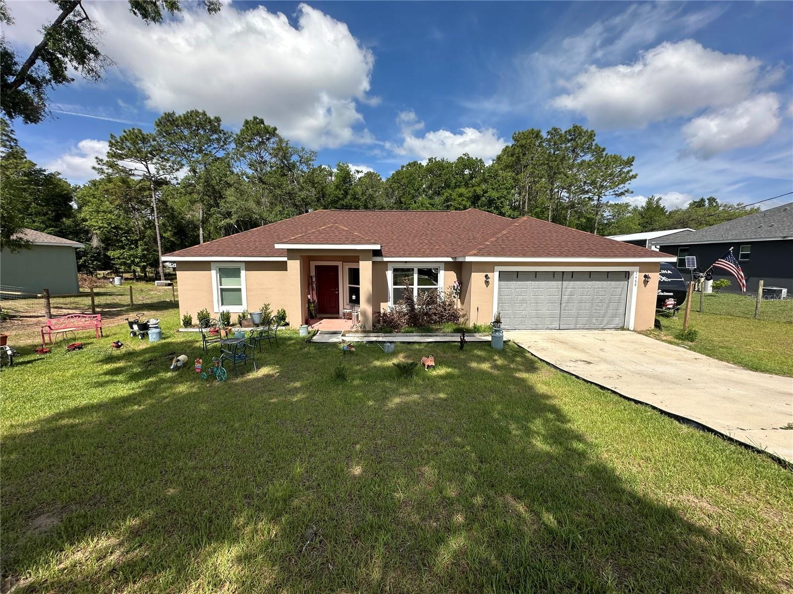 "Like New" in RAINBOW ACRES! This popular 2023 "Bella" Alamo model sits on an oversized lot (1.03 acres). Three bedrooms, two bathrooms with an open-split floor plan. Solid counter-tops, luxury vinyl flooring, and a breath-taking backyard view of nicely shaded woods. A few short minutes to the Rainbow River, where you can enjoy swimming, fishing, boating, canoeing, and camping. Schedule to see this inviting, comfortable home.