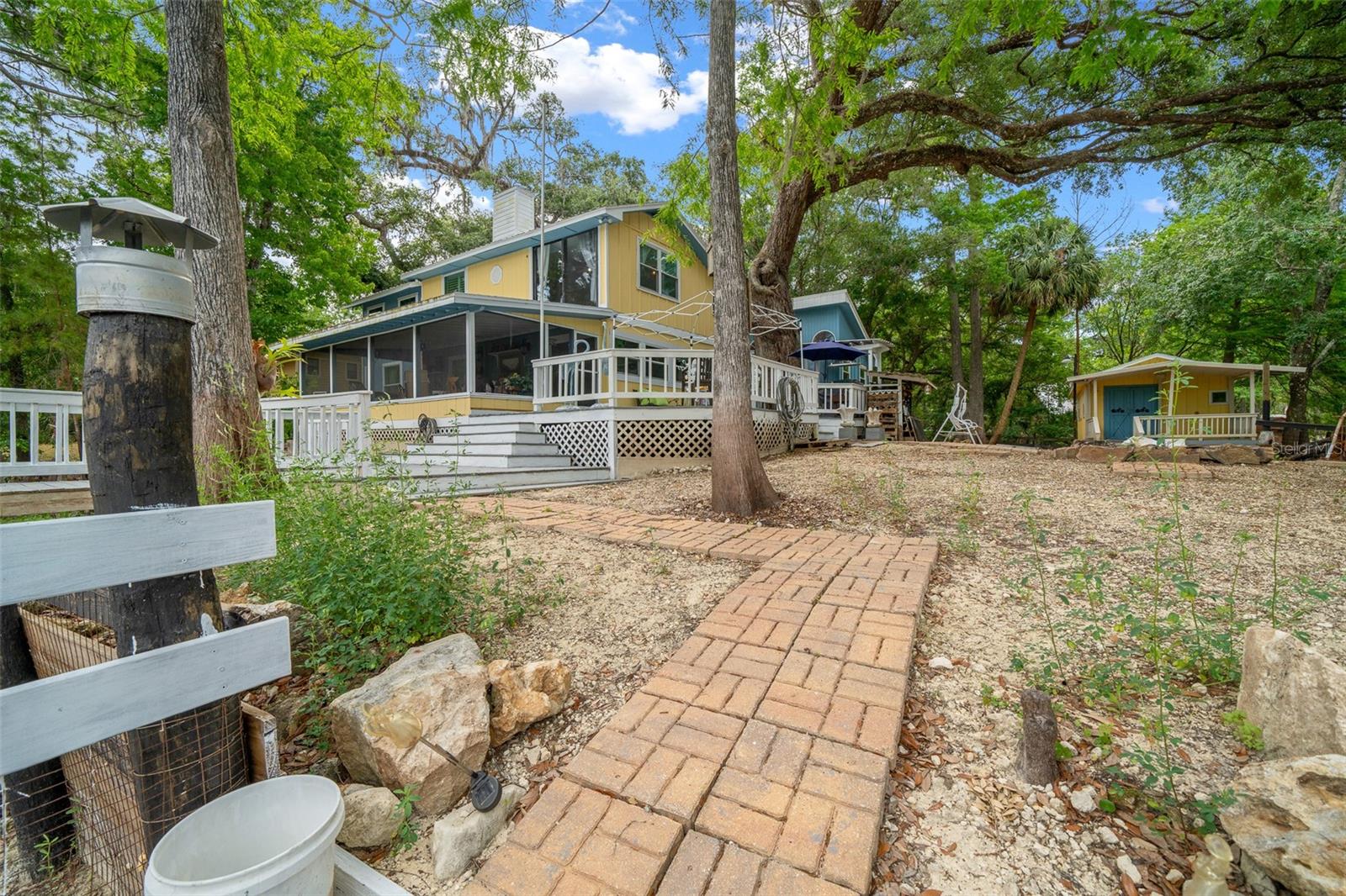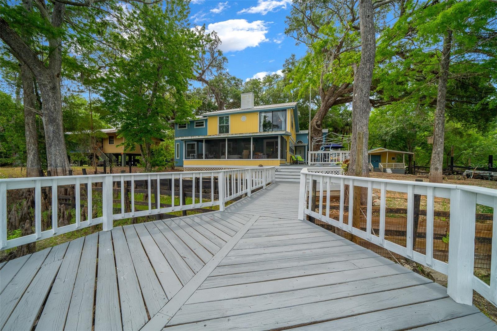 Waterfront Paradise on the Withlacoochee River – 3503 E Westcove Court. Welcome to your private riverfront retreat at the end of a quiet street! Tucked behind a gated entrance, this stunning 3-bedroom, 2.5-bath home offers nearly 360° water views and direct access to the Withlacoochee River on three sides—making it the ultimate getaway, vacation rental, Airbnb investment, or primary residence. Inside, every room captures breathtaking river or canal views, from the well-appointed kitchen overlooking the water to the cozy living room with 180° panoramic vistas and a charming fireplace. The main level includes two guest bedrooms and a full bath, while the upstairs features a spacious primary suite with unparalleled views, plus a large bonus room currently used as a fourth bedroom with a private entrance—ideal for guests or rental flexibility. Step outside and experience the true essence of Florida living: enjoy mornings on the screened-in porch, launch kayaks from your private ramp, tie up at the boat dock, cast a line from the fishing pier, or unwind on the expansive back patio with friends and family. There's even a rope swing for added fun, plus a large shed for all your outdoor gear. This one-of-a-kind property is packed with features and surrounded by natural beauty—schedule your private showing today and experience the magic of riverfront living!
