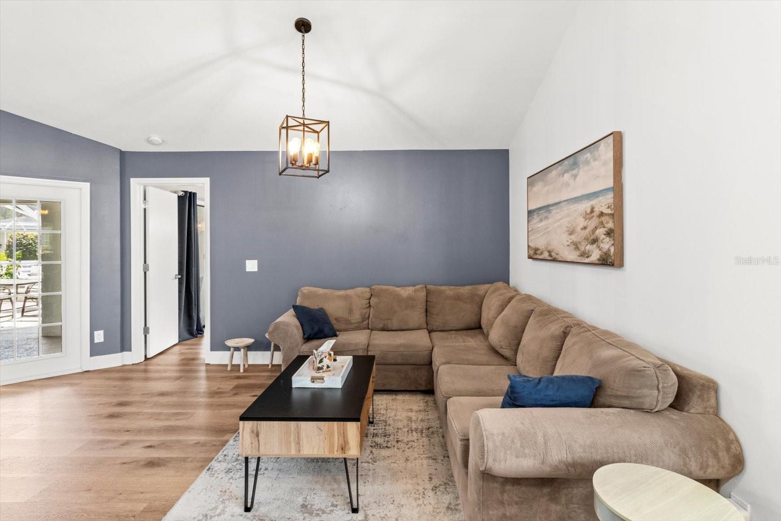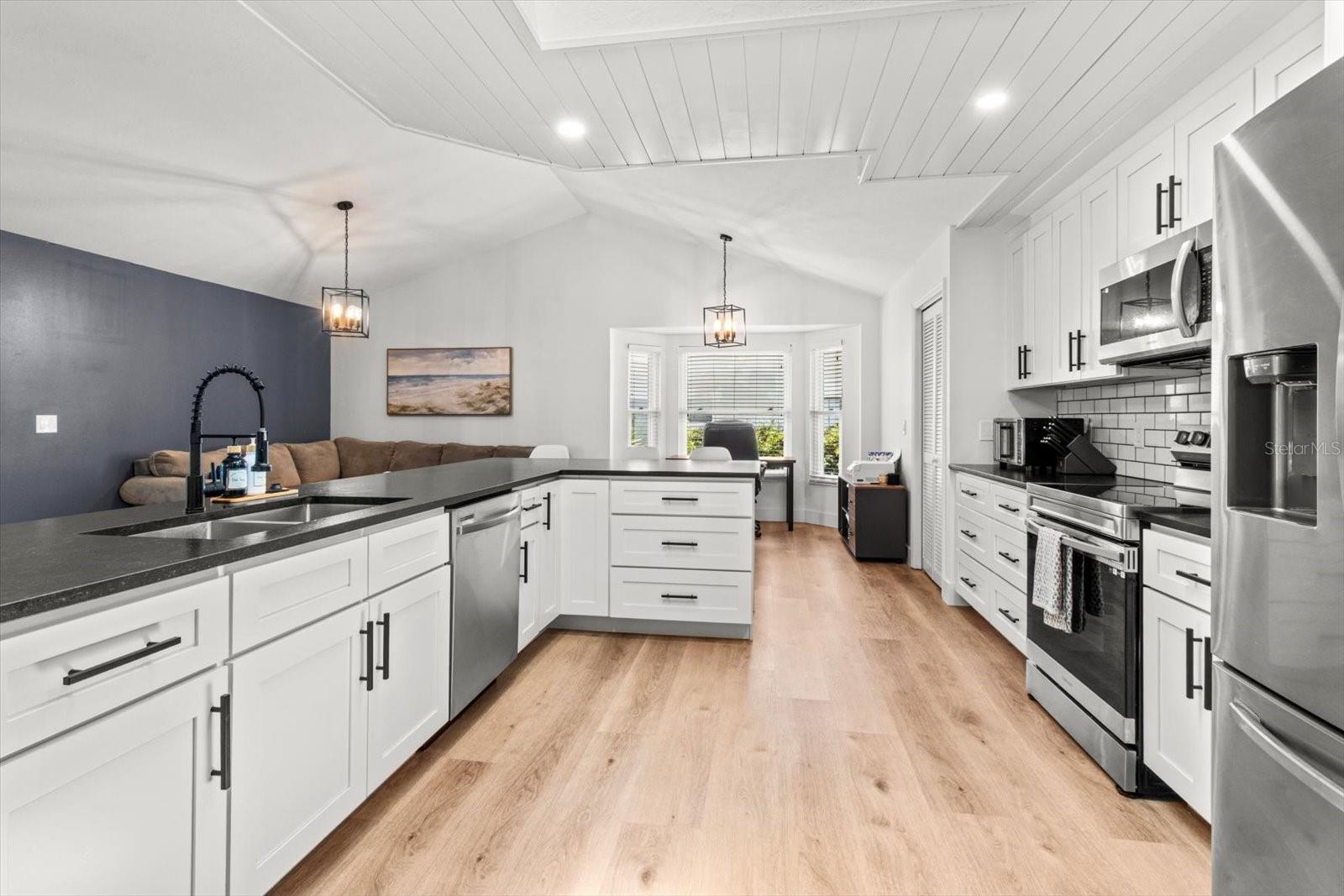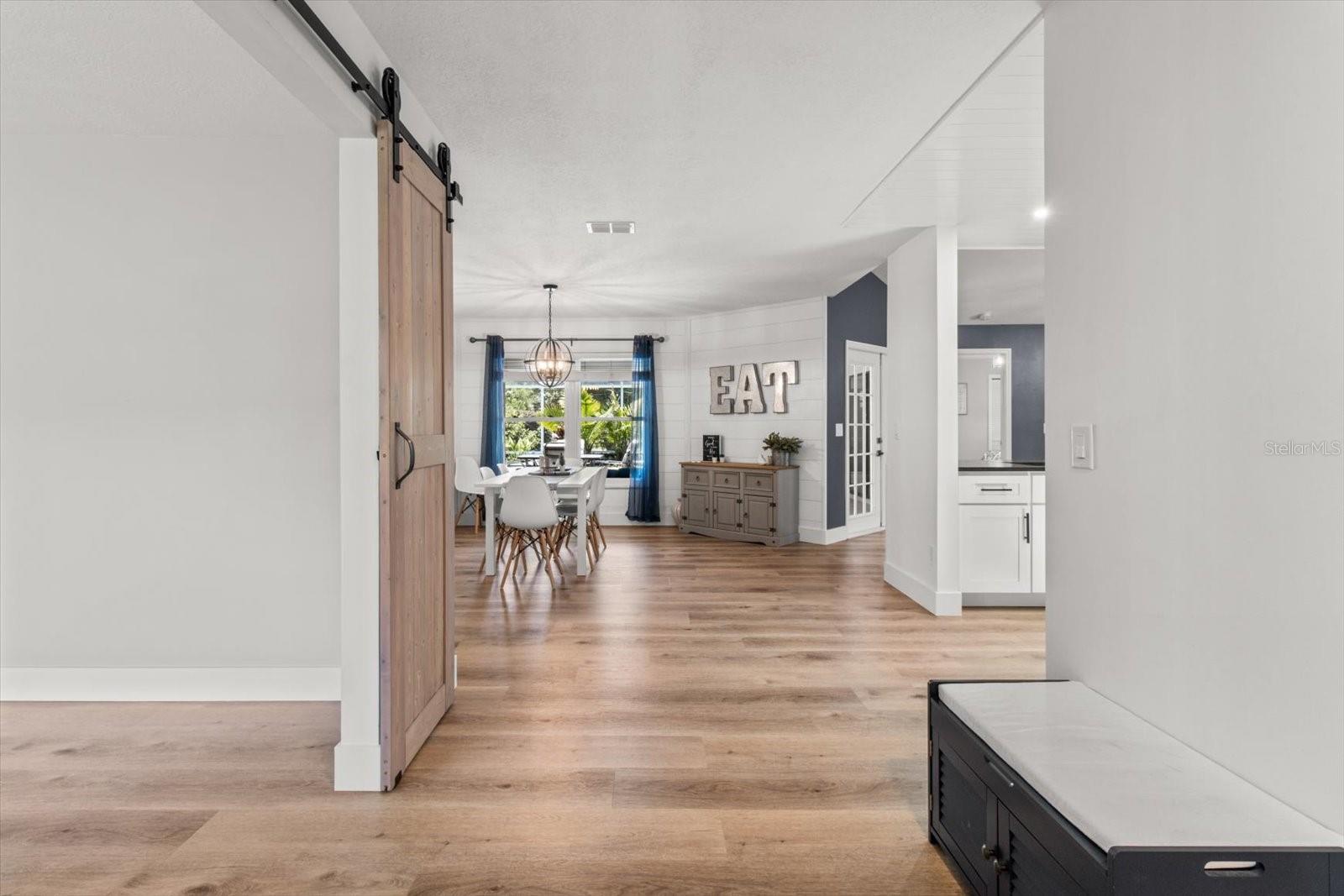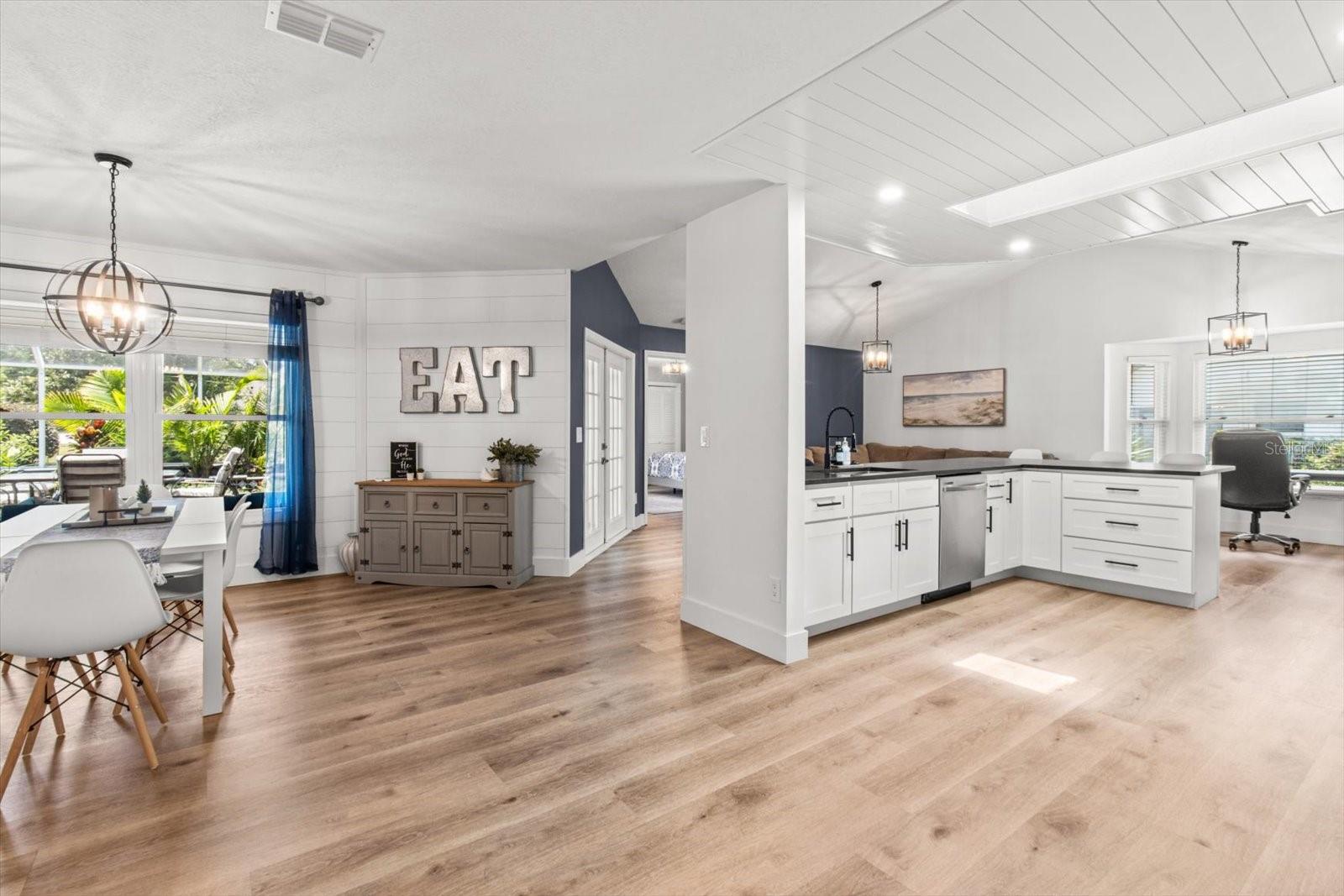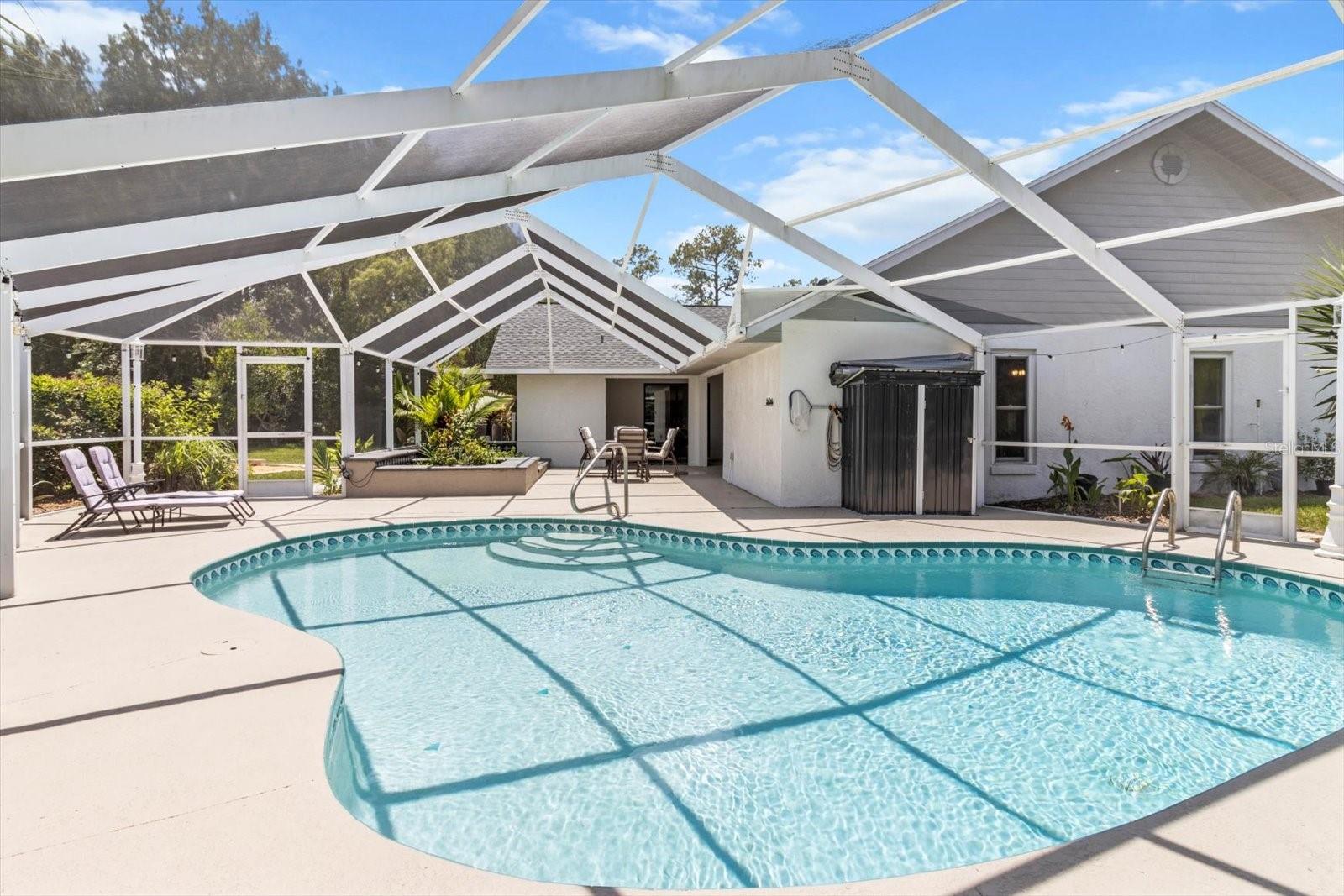 Welcome to this thoughtfully updated residence located in the highly sought-after community of Rainbow Springs Country Club. Offering over 1,900 square feet of living space, this split floor plan features two spacious primary suites, each with an ensuite bathroom and direct access to the screened-in pool and patio area. At the heart of the home is a modern, centrally located kitchen featuring a skylight, white shaker cabinetry, black fixtures, leathered granite countertops, shiplap wall paneling, and a breakfast bar, ideal for casual dining or entertaining. Durable vinyl flooring runs throughout, offering easy maintenance and a cohesive, contemporary aesthetic. A versatile bonus room adds flexibility, perfect for a home office, recreation space, gaming area, or any other use to suit your lifestyle. Step outside to enjoy Florida living at its finest—whether lounging by the screened-in pool, relaxing under the covered patio, or gathering with friends around the outdoor fire pit, there’s space for everyone to unwind and enjoy. Major updates include a New Roof, A/C system, electric water heater and appliances in 2023, as well as a full renovation completed the same year. The home also includes a timed irrigation system connected to a private well for added efficiency. Rainbow Springs Country Club residents enjoy access to a private beach on the Rainbow River, along with a community center offering an outdoor pool, tennis courts, pickleball, and more.