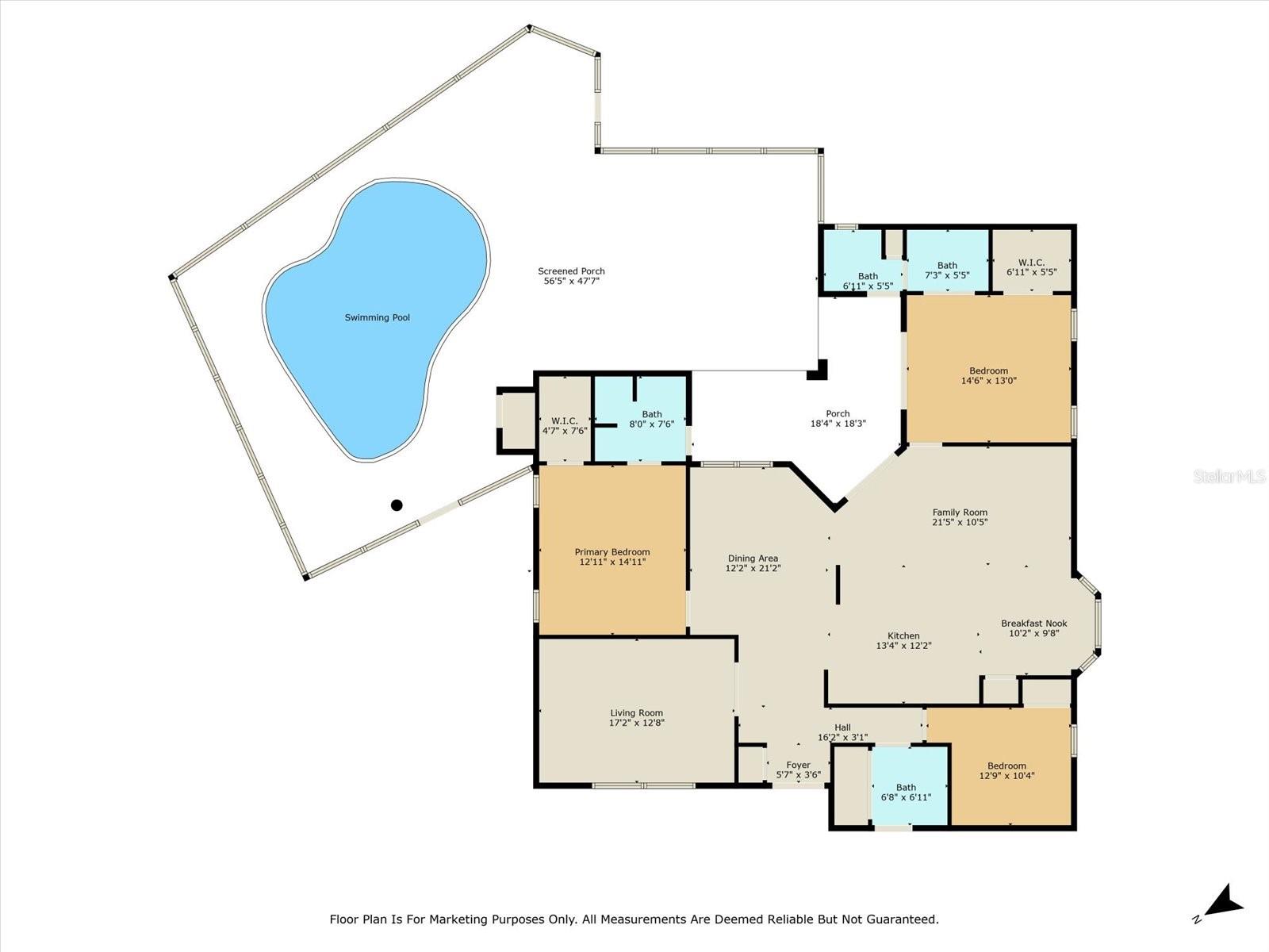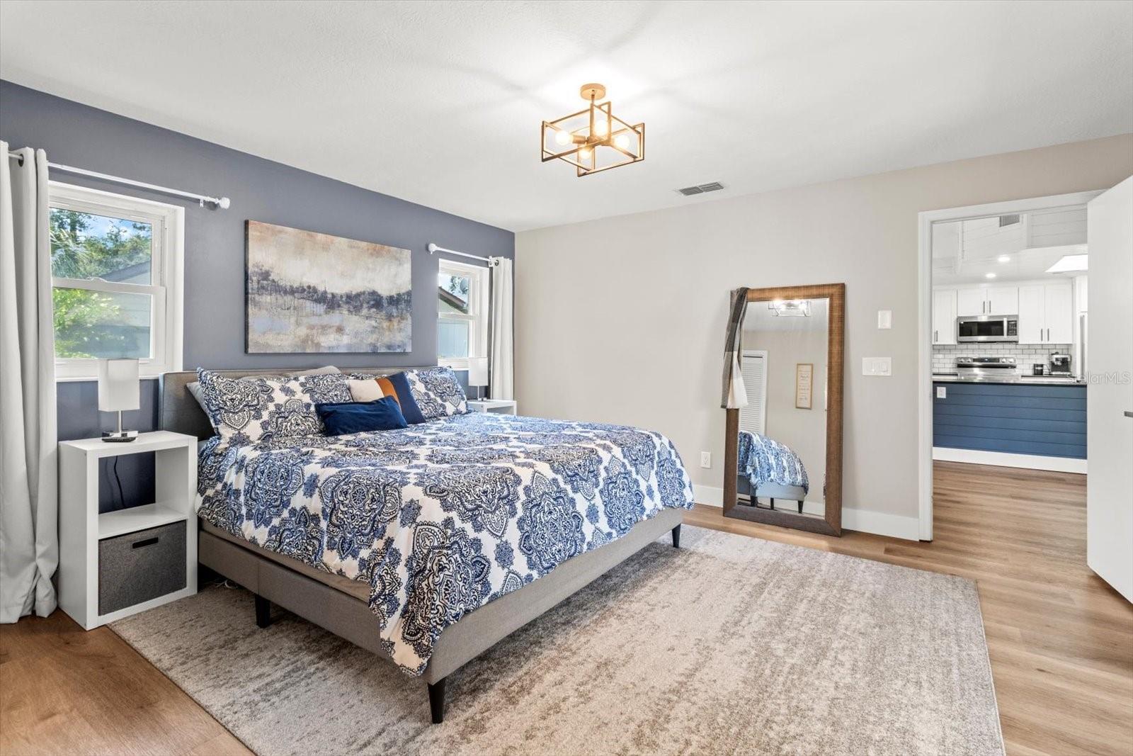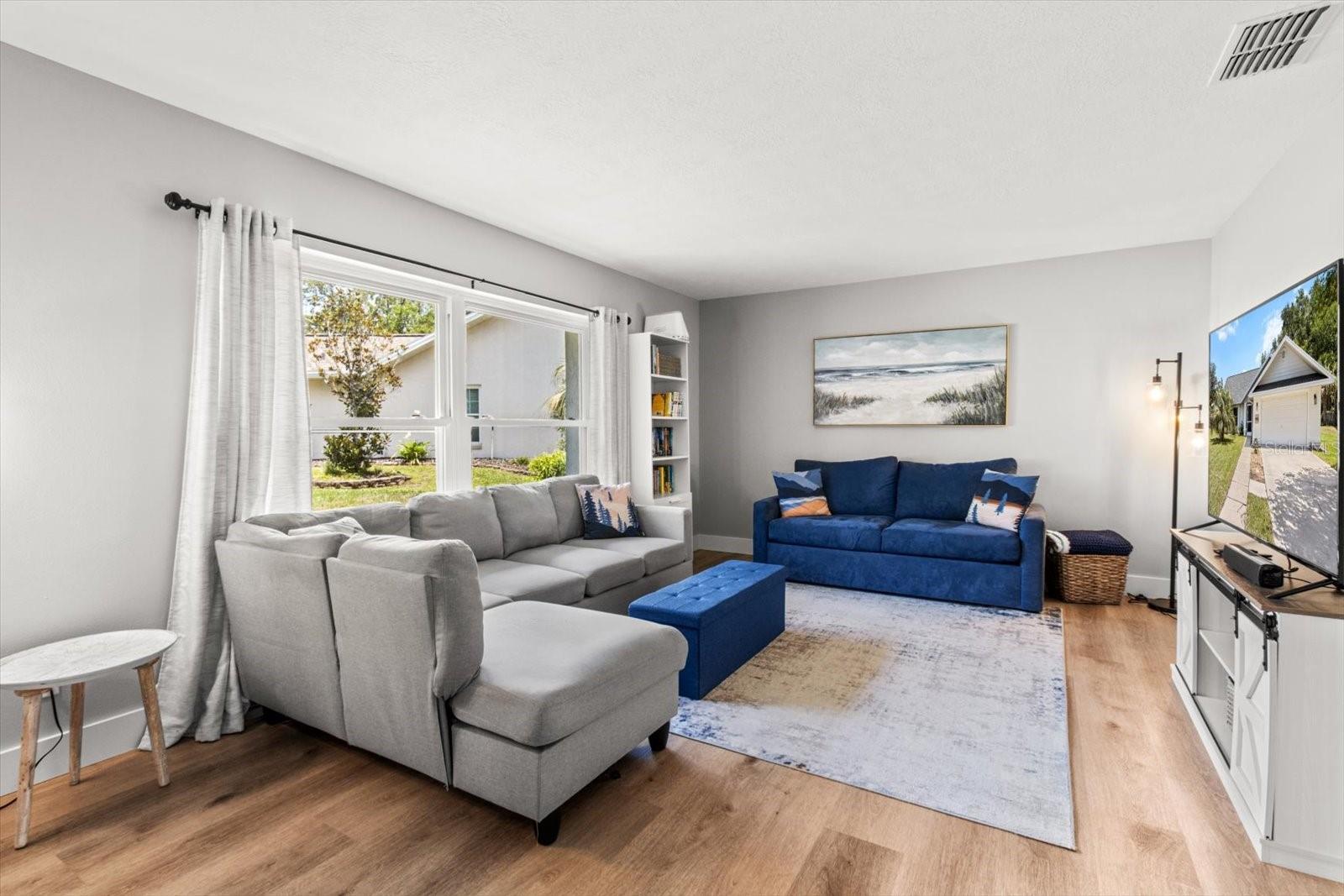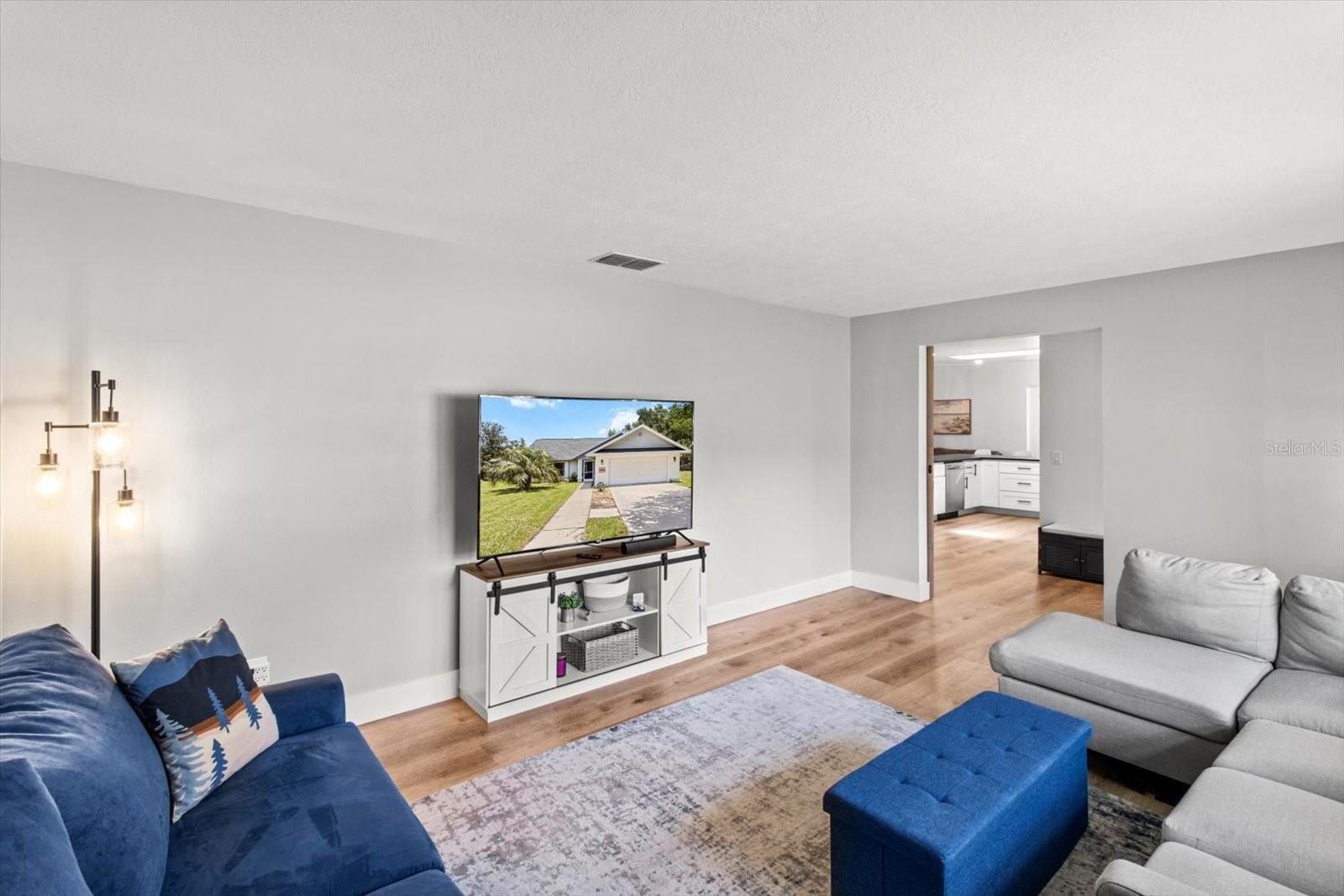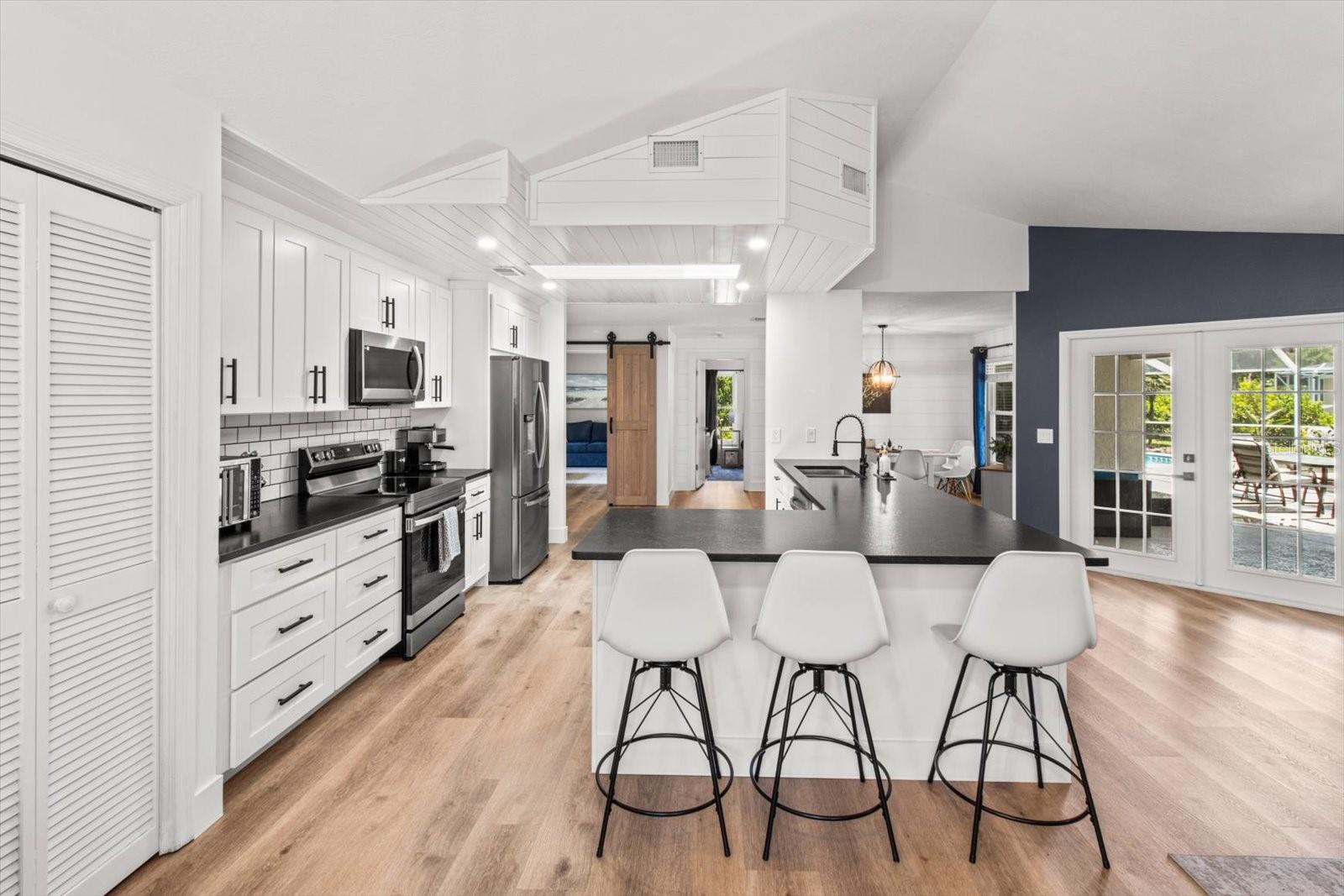 Welcome to this thoughtfully updated residence located in the highly sought-after community of Rainbow Springs Country Club. Offering over 1,900 square feet of living space, this split floor plan features two spacious primary suites, each with an ensuite bathroom and direct access to the screened-in pool and patio area. At the heart of the home is a modern, centrally located kitchen featuring a skylight, white shaker cabinetry, black fixtures, leathered granite countertops, shiplap wall paneling, and a breakfast bar, ideal for casual dining or entertaining. Durable vinyl flooring runs throughout, offering easy maintenance and a cohesive, contemporary aesthetic. A versatile bonus room adds flexibility, perfect for a home office, recreation space, gaming area, or any other use to suit your lifestyle. Step outside to enjoy Florida living at its finest—whether lounging by the screened-in pool, relaxing under the covered patio, or gathering with friends around the outdoor fire pit, there’s space for everyone to unwind and enjoy. Major updates include a New Roof, A/C system, electric water heater and appliances in 2023, as well as a full renovation completed the same year. The home also includes a timed irrigation system connected to a private well for added efficiency. Rainbow Springs Country Club residents enjoy access to a private beach on the Rainbow River, along with a community center offering an outdoor pool, tennis courts, pickleball, and more.
