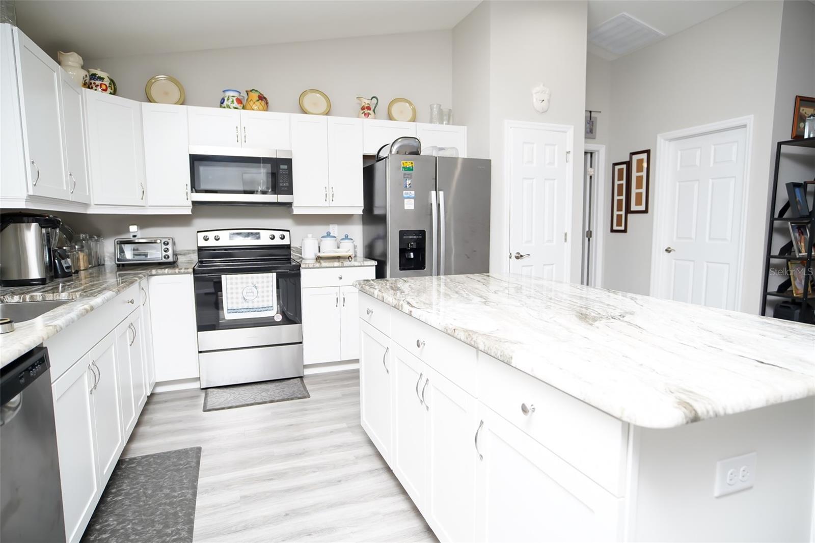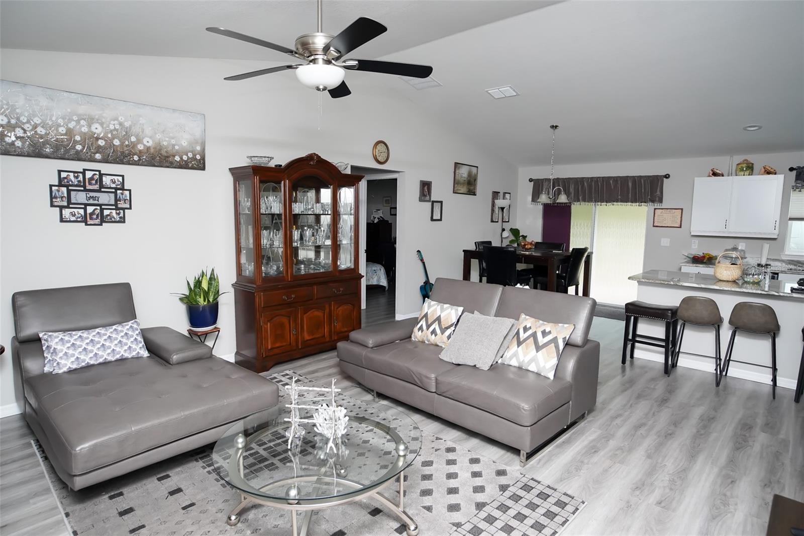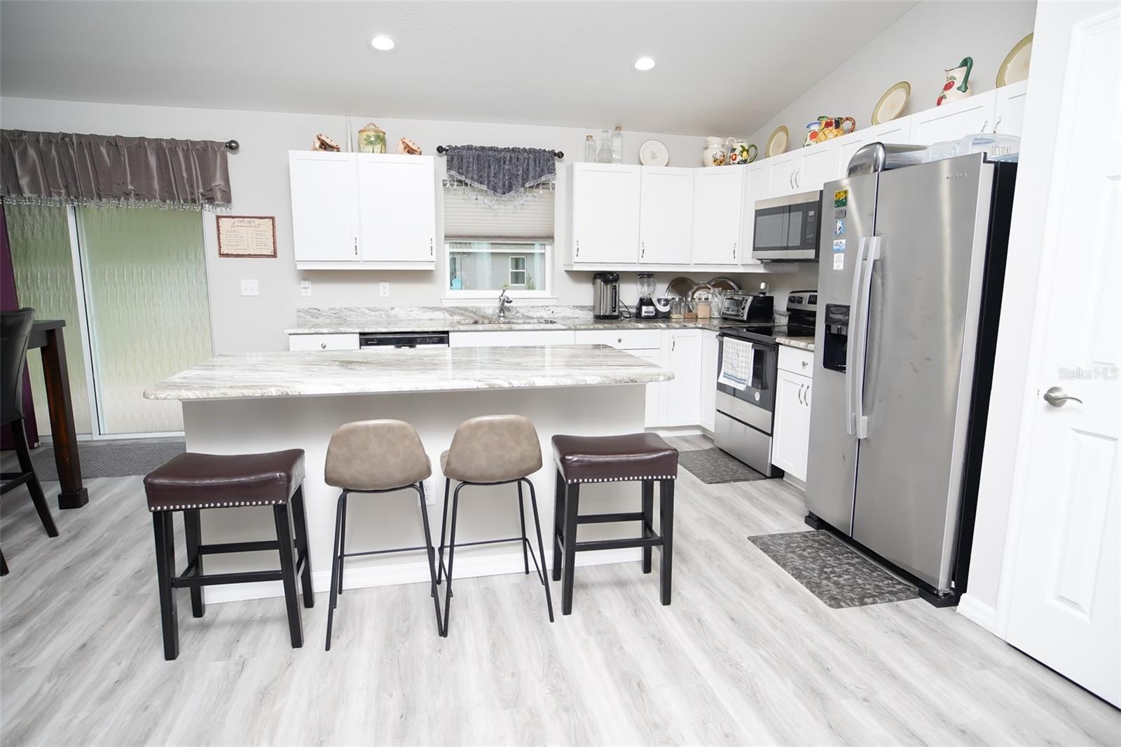 Welcome to this stunning 3-bedroom, 2-bath home featuring a spacious and thoughtfully designed open floorplan. The main living areas and bedrooms are finished with durable and stylish luxury vinyl plank (LVP) flooring, while the bathrooms showcase elegant tile for a clean and polished look. The heart of the home is the gourmet kitchen, complete with wood shaker cabinets, sleek granite countertops, stainless steel appliances, and a large island perfect for meal prep or casual dining. Whether you're hosting guests or enjoying a quiet night in, the open layout seamlessly connects the kitchen to the living and dining areas, creating a warm and inviting atmosphere. Additional highlights include a 2-car garage, a water softener system for added comfort, and modern finishes throughout. This move-in-ready home offers the perfect blend of function and style—ideal for families, entertainers, or anyone seeking a low-maintenance lifestyle in a beautifully appointed space.