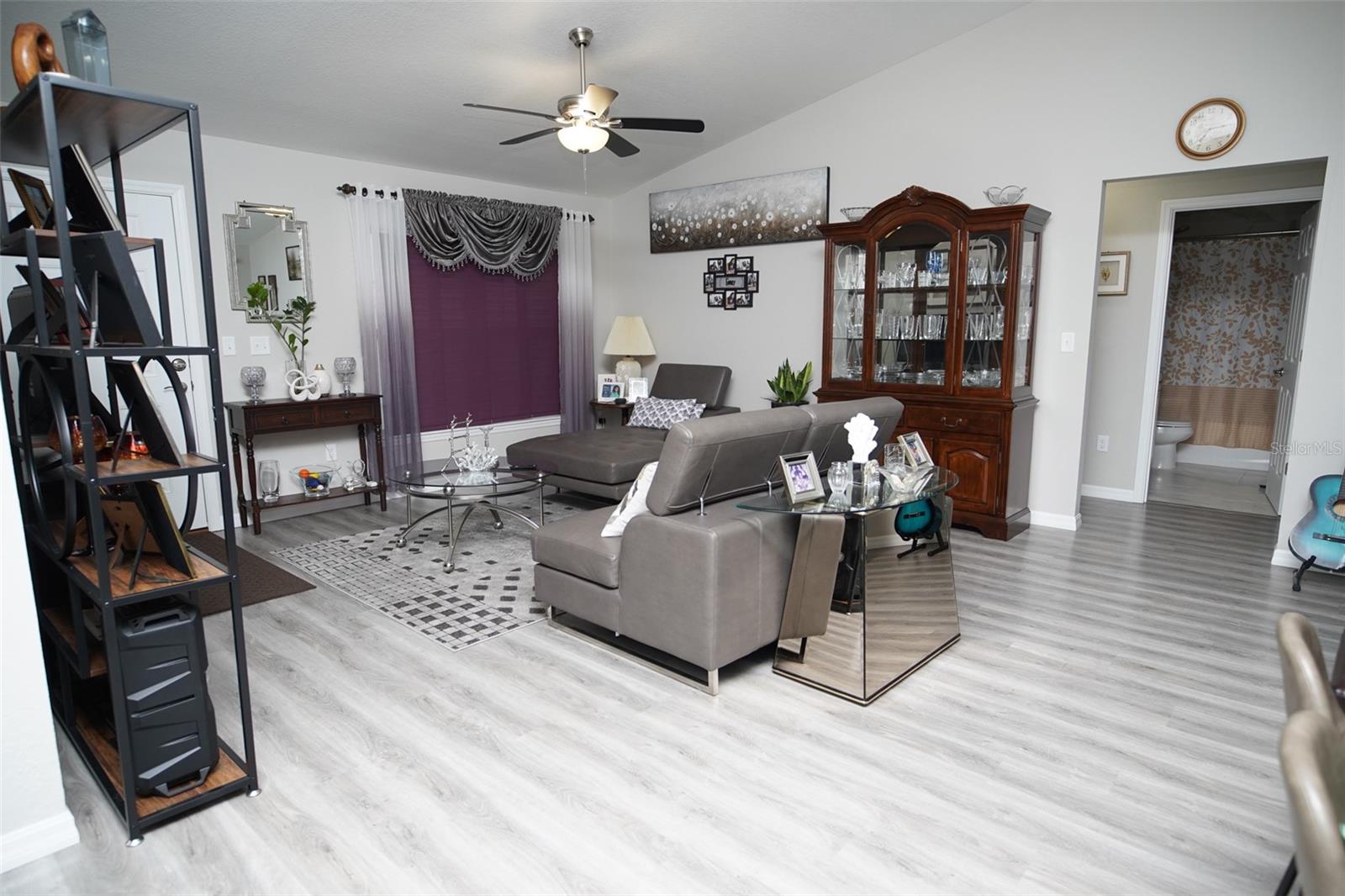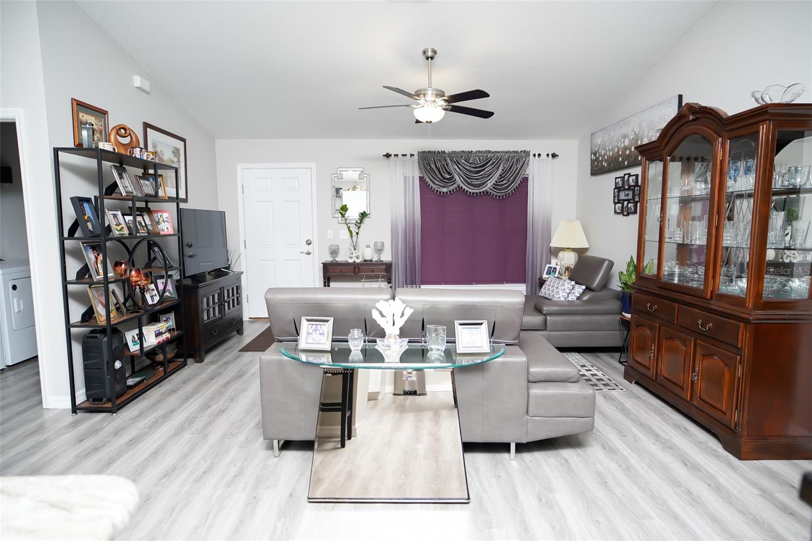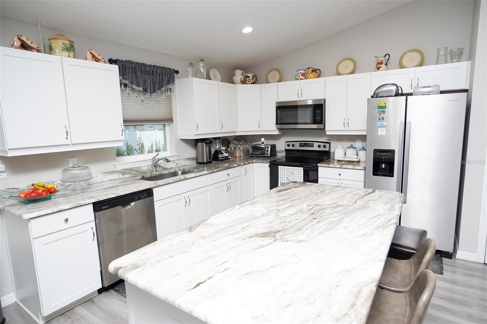 Welcome to this stunning 3-bedroom, 2-bath home featuring a spacious and thoughtfully designed open floorplan. The main living areas and bedrooms are finished with durable and stylish luxury vinyl plank (LVP) flooring, while the bathrooms showcase elegant tile for a clean and polished look. The heart of the home is the gourmet kitchen, complete with wood shaker cabinets, sleek granite countertops, stainless steel appliances, and a large island perfect for meal prep or casual dining. Whether you're hosting guests or enjoying a quiet night in, the open layout seamlessly connects the kitchen to the living and dining areas, creating a warm and inviting atmosphere. Additional highlights include a 2-car garage, a water softener system for added comfort, and modern finishes throughout. This move-in-ready home offers the perfect blend of function and style—ideal for families, entertainers, or anyone seeking a low-maintenance lifestyle in a beautifully appointed space.
