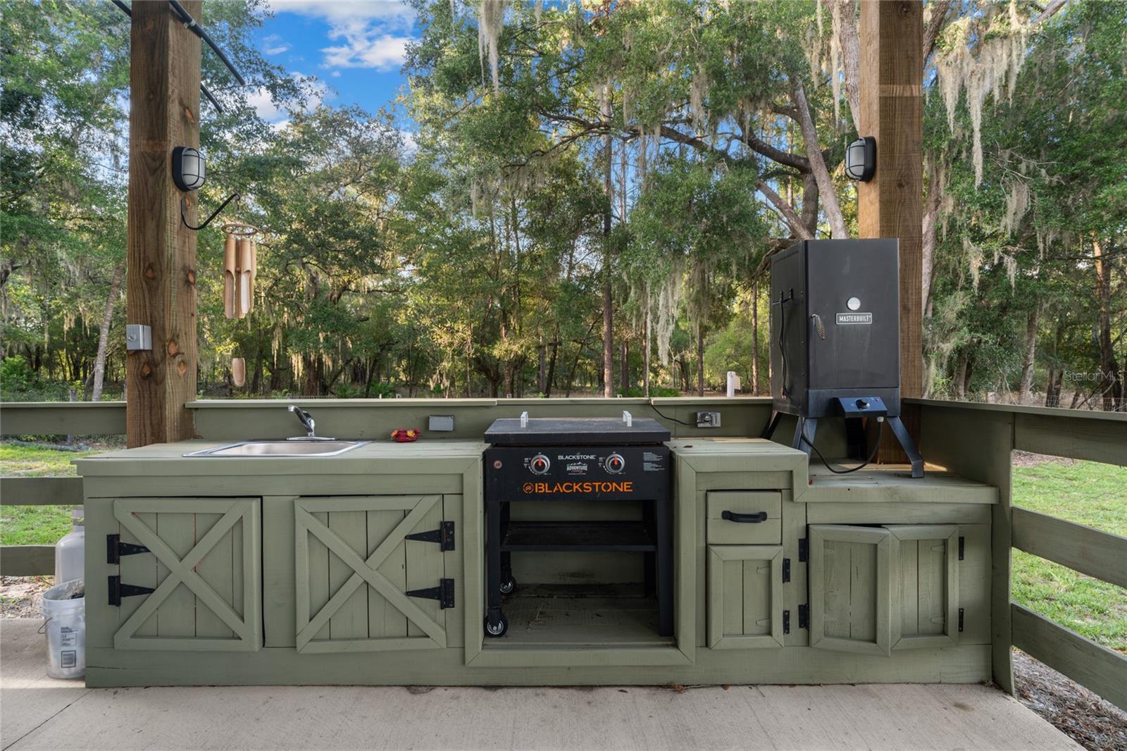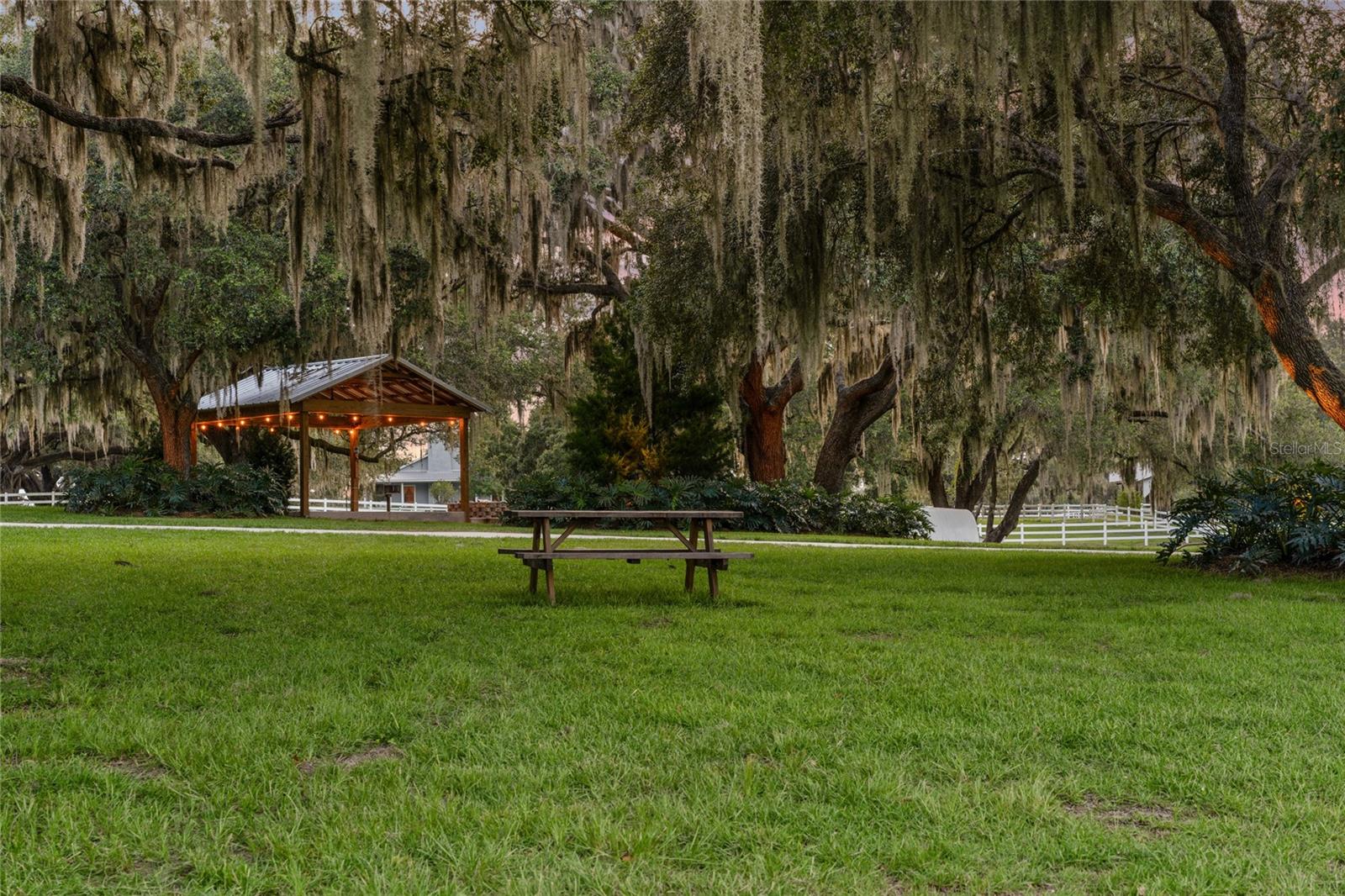 Wind down the gated entrance lined with stately columns and arrive at a property where comfort, charm, and thoughtful details await in this gorgeous 3 bedroom 2 1/2 baths. Surrounded by the natural vinyl fencing, the grounds are beautifully maintained with lush landscaping and up lighting that creates a warm, welcoming glow. From the wide front porch, you can relax on a swing or rocking chair while taking in long-range views of the pasture and watching the deer and turkey that often wander by at dusk. Inside, the kitchen is designed for both everyday living and entertaining. A spacious island offers the perfect gathering spot, while the walk-in pantry keeps everything organized and within reach. The living area is anchored by a cozy gas fireplace, creating an inviting atmosphere year-round. Enjoy the flex/bonus or use it as an additional bedroom if needed. Outdoors, the home is equally suited for entertaining and unwinding. A pavilion with a wood-burning fire pit (plus electric and water access) sets the stage for cozy evenings, while the 15x15 gas fire pit invites gatherings under the stars. Multiple custom-built sheds, a 20x30 Carolina carport, and pole barns with electric, fans, and rock columns blend style with function. And for the ultimate hosting experience, a 30x60 structure with electric, water, septic, an outdoor kitchen, and soaring 14' eaves is ready for your largest celebrations. As a bonus, the property also includes a 2023 36' park model home— perfect as a guest house, in-law suite, or private retreat.