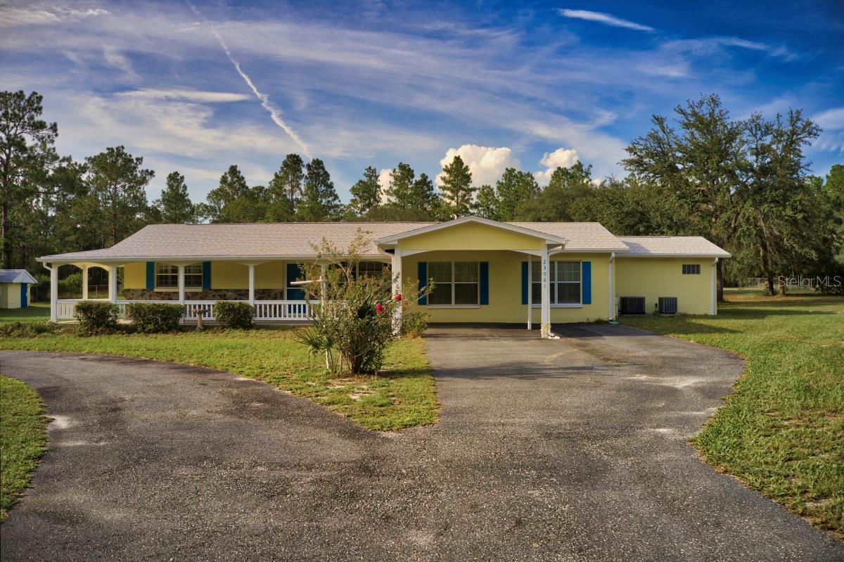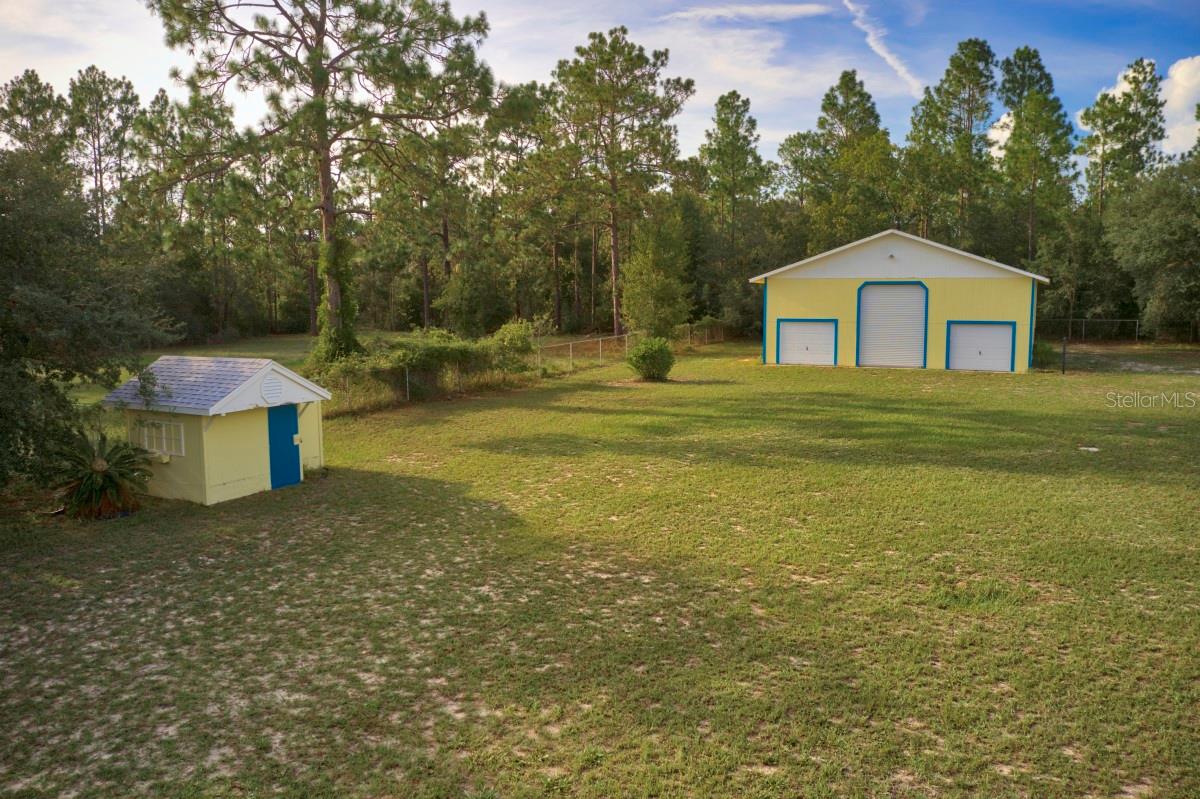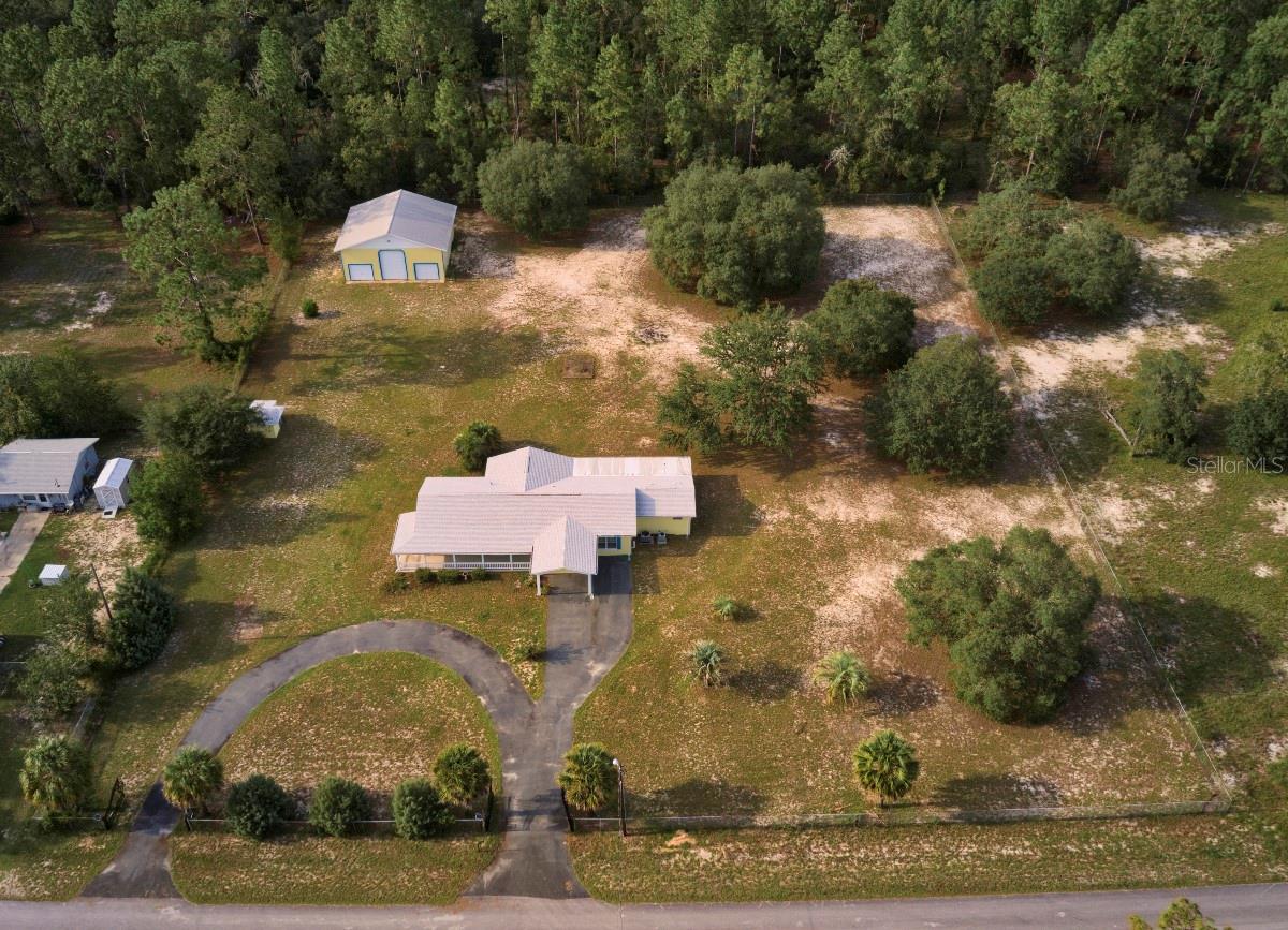 NEW PRICE + FINANCING INCENTIVE Seller has adjusted the price and may provide a seller credit up to $10,000 to be applied toward a temporary rate buydown or buyer’s allowable closing costs, subject to lender approval. This credit can significantly reduce monthly payments in the early years of the loan. Ask for details Discover the perfect blend of privacy, comfort, and outdoor living in this beautifully maintained 4 bedroom, 2 bathroom home with 1,853 sq. ft. of living space on just under 7 acres. The home features a new roof (2024), fresh exterior paint, dual-zone A/C with two units, upgraded windows, and plantation shutters throughout. Inside, you’ll find a thoughtfully designed layout with no carpet—low-maintenance flooring and abundant storage, including a large laundry room and double walk-in closets in the master suite. The primary bathroom offers a large jetted garden tub, double vanity, and separate walk-in shower for a true retreat. Outdoor living shines here, starting with a welcoming circular driveway, large front porch, mature landscaping with palms, crepe myrtles, and evergreens, plus well water—no water bill to worry about. The spacious enclosed back patio with double ceiling fans overlooks the sprawling natural acreage, perfect for enjoying morning coffee or evening sunsets. No neighbors on three sides of the property. The property sits on two fully fenced and cleared acres, secured with an automatic solar-powered double gate, plus five additional natural acres for a total of nearly 7 acres. Wildlife enthusiasts will love the deer, fox squirrels, gopher tortoises, and birds that frequent the property. A highlight is the massive 40' x 60' detached workshop/garage/RV barn with three bays and a large upstairs loft—ideal for hobbies, storage, or business needs. Located in Rainbow Lakes Estates, residents enjoy access to two lakes in the neighborhood, a fitness center, community center, playgrounds, and parks. Just 5 miles from the beautiful Rainbow River, with the Gulf of Mexico and Goethe State Forest nearby, endless outdoor recreation awaits. If you’ve been searching for room to roam, peaceful surroundings, and space for all your hobbies and toys, this property is a must-see!