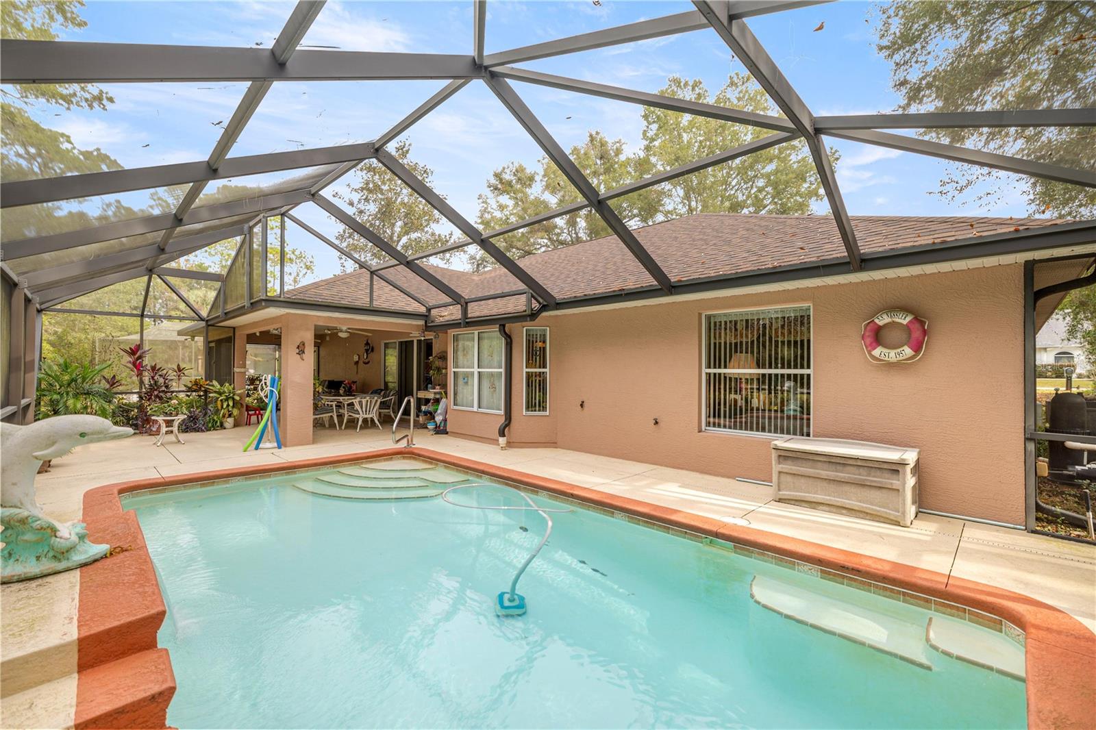 Welcome to this custom-built Triple Crown home located in the highly coveted Rainbow Springs Country Club Estates. Offering 2,335 sq. ft. of living space, this spacious residence features an impressive open-concept design, a formal dining room, and a large kitchen equipped with wood cabinetry and granite countertops. A versatile bonus room provides additional space for an office, den, or hobby room, and the split floor plan ensures privacy for the owner’s suite. Step outside to enjoy your own private oasis, complete with a pool and large covered and screened lanai, perfect for year-round outdoor living and entertaining. The property backs up to peaceful greenspace, and the vacant lot next door adds an extra level of privacy. Recent updates include a 2025 roof, new A/C in 2017, LVP flooring added in 2022, and an irrigation well for added convenience and cost savings. As a resident, you'll enjoy a wealth of amenities and low HOA fee. Located just minutes from world-class golf at Juliette Falls Country Club, this home places you in the heart of small-town living, yet conveniently close to Ocala, Gainesville, and major attractions in Tampa and Orlando. This is a great opportunity to own a beautiful home in an unbeatable location. Schedule your showing today and make this dream home yours!