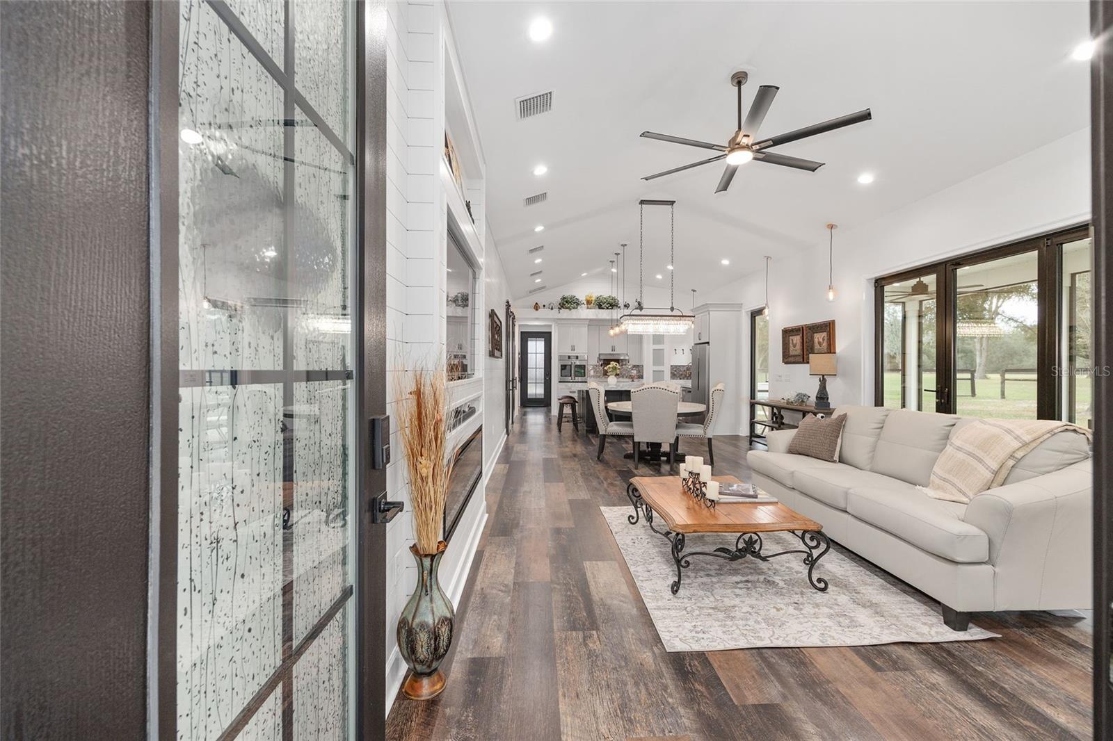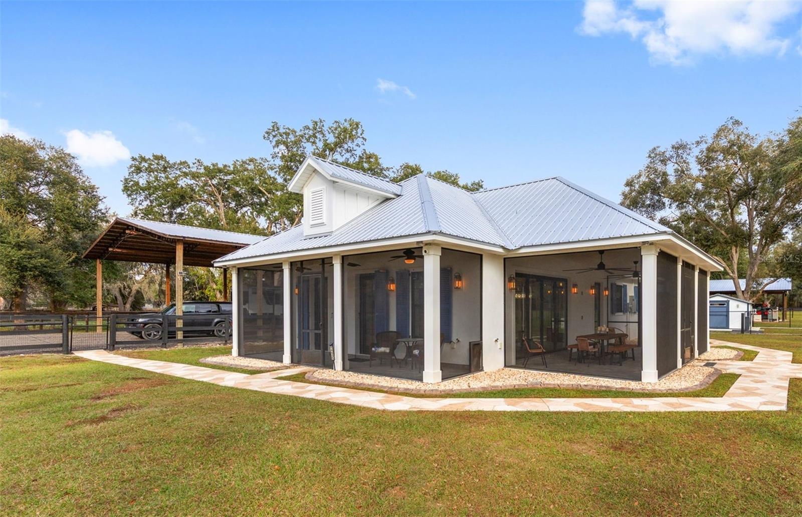 Exceptional 20+ acre luxury farm estate offered as two separately deeded 10.118-acre AG1 Code 8 parcels sold togeher, providing rare flexibility to build up to three additional residences. Ideal for a luxury equestrian estate, training facility, a multigenerational compound, AirB&B, SniffSpot, investment opportunity, or future resale of one parcel. No HOA and no deed restrictions (all details to be verified by buyer with Marion County). Privately tucked beneath a professionally maintained oak canopy, the property features direct gated access to Ross Prairie State Forest, with miles of protected, non-motorized horseback riding trails connecting directly to the Marjorie Harris Carr Greenway-an unmatched location for equestrians and outdoor enthusiasts. The 2023 custom Southern Living-style concrete block residence showcases timeless design and high-end finishes throughout, including 10-14 ft. ceilings, 8 ft. doors, custom cabinetry leathered double thickness chiseled edge dolomite counters, Cafe' appliances, and luxury LVP flooring. A 12 ft. Nanawall bi-fold door opens the living space to one of three tiled, fanned, screened porches, creating seamless indoor/outdoor living. The primary suite offers a spa-like bath with soaking tub, full-body shower jets, and glass block windows. The second bath also includes full-body shower jets, custom cabinety and glass block windows. Energy efficiency is enhanced by an ultra-quiet Trane mega-split HVAC system with whole-house electrostatic air cleaner. Equestrian amenities include a 40 x 80 concrete block barn with three stalls, automatic waterers, hot/cold wash, insect misters, high-volume fans, sand runs, and a climate-controlled 40 x 12 foot tack room with a utility sink and washer/dryer hookups. Two full 50A RV hookups and two partial hookups under the 40 x 60 foot, 14' high RV/car/boat cover make recreation easy. A fifth power/water RV hookup is nestled behind the barn. A 20 x 12 foot workshop/storage shed and a 40' high cube storage container - both with electrical power - provide ample storage and workshop capacity. Full perimeter fencing, underground utilities, whole property water treatment, a reverse osmosis system and two independent 26k W generator back up systems with an owned 1,000 gallon propane tank complete this truly exceptional offering. All information/measurements pulled from County records.
