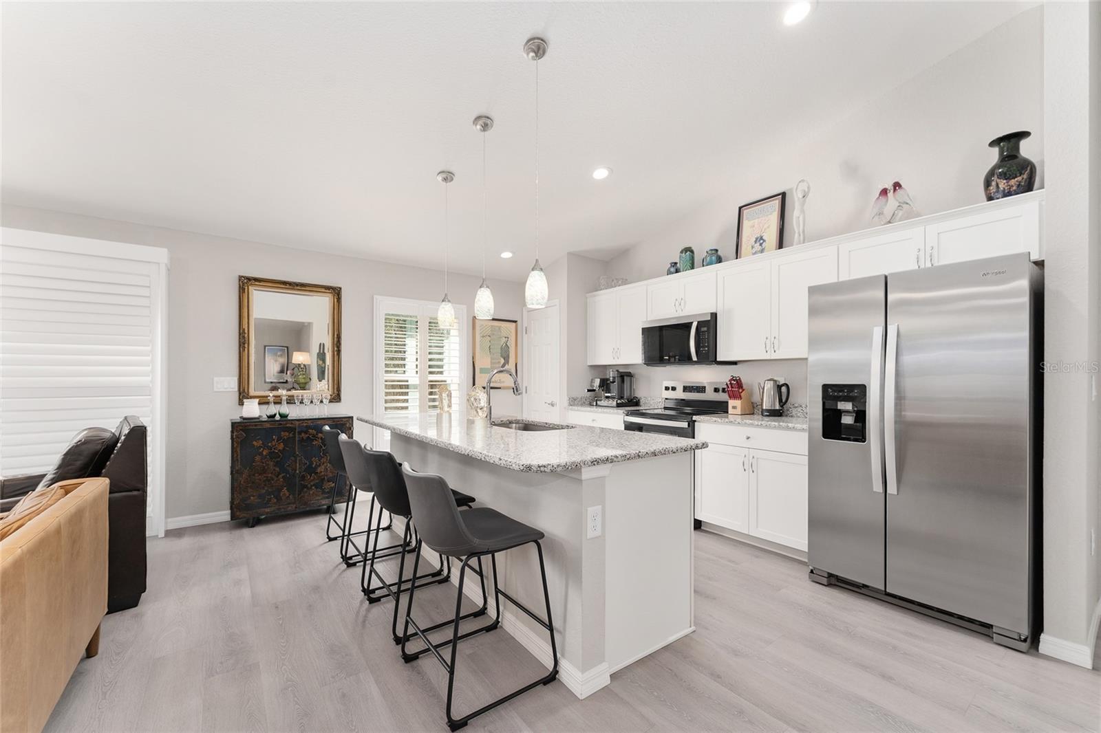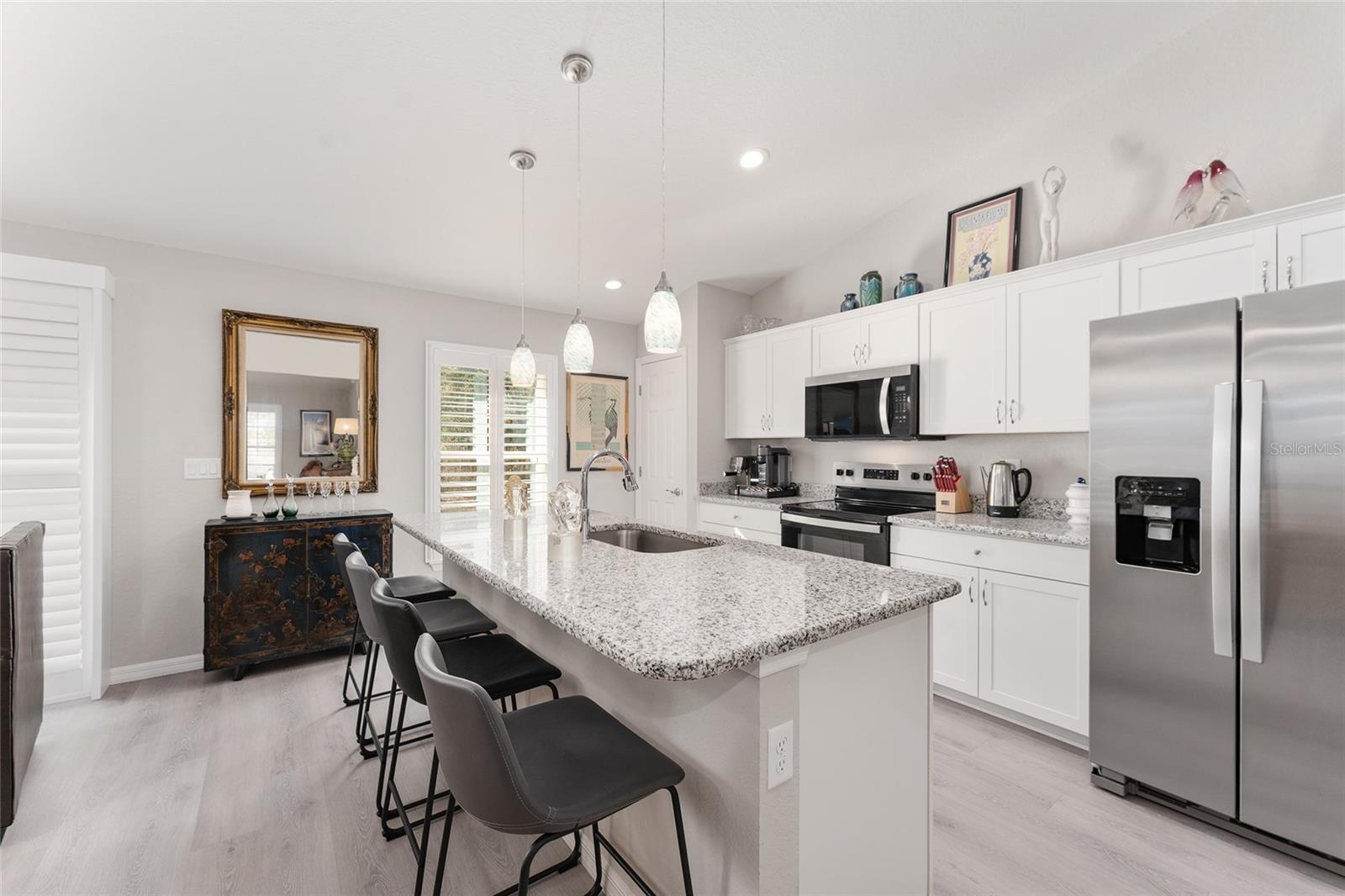 Welcome to this lovely home, where modern elegance meets open space and the comforts of Florida living. This Aldana, Marie model (2025) sits gracefully on a full acre, offering the rare luxury of privacy, room to breathe, and the beauty of a thoughtfully designed, nearly brand-new home. From the moment you arrive, the pavered front patio sets a warm, inviting tone—perfect for morning coffee, sunset conversations, or simply soaking in the peaceful surroundings. Step inside and you’re greeted by 1,667 square feet of beautifully upgraded living space, where luxury vinyl plank flooring flows throughout, creating a seamless, stylish backdrop for everyday life. The heart of the home is the kitchen, where granite countertops add both sophistication and durability, ideal for everything from casual meals to entertaining. Plantation shutters throughout the main living areas bring timeless charm while filtering in soft natural light, enhancing the home’s bright and airy feel. Each bedroom is generously sized, offering comfort, flexibility, and the perfect retreat at the end of the day. Whether you envision a serene primary suite, guest rooms, or a home office, this layout adapts beautifully to your lifestyle. Outdoors, the expansive one-acre lot invites endless possibilities—gardens, gatherings, play, or future additions—all framed by the quiet freedom that only this much land can provide. New, refined, and move-in ready, this home is a fresh beginning wrapped in modern upgrades, open space, and understated luxury. A place where life unfolds beautifully, one peaceful moment at a time. Location truly completes the picture. Just minutes away, Bonable Lake Park offers a playground, a peaceful lake for fishing, and a community library, making it a wonderful spot for outdoor enjoyment and neighborhood connection. Everyday conveniences are close at hand, with grocery stores, local shops, and restaurants in Dunnellon only a short drive away. Add in nearby Rainbow Springs State Park, offering access to the Rainbow River, trails, and outdoor recreation, and you have the perfect blend of tranquility and accessibility. For those who love to explore, you’re conveniently situated near Ocala and Crystal River, home to shopping, medical facilities, and entertainment. Also within easy reach is the renowned World Equestrian Center. Gainesville is also just 45 minutes to the north, where one can enjoy theaters, city amenities, dining, healthcare, and football games at the University of Florida. This is a lifestyle of comfort, convenience, and classic Florida living, ready to welcome you home.