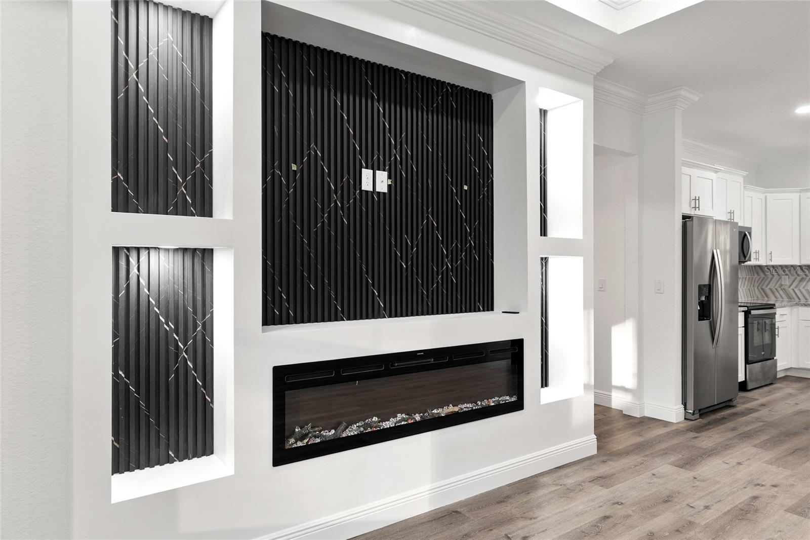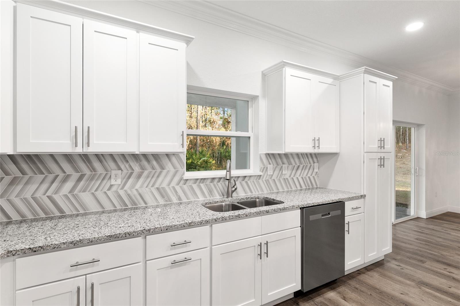 WELCOME TO THE LIFESTYLE YOU'VE BEEN WAITING FOR...This stunning 4-bedroom, 3-bath home offers a highly sought after split floor plan and an open-concept design made for both entertaining and everyday comfort. Tall ceilings, tray ceilings, crown molding, and ceiling fans elevate the main living spaces with style and sophistication. The open dining area flows effortlessly into the chef-inspired kitchen, where a large quartz-topped island provides seating for quick breakfasts, late-night bites, and lively gatherings. Soft-close cabinetry, stainless steel appliances, and sleek finishes make this kitchen as functional as it is beautiful. Anchoring the home is an expansive 20x20 living room, featuring an electric fireplace and a custom built-in entertainment center—your new favorite place to relax or host. Unwind in the private primary suite, complete with a generous walk-in closet and a spa-like en-suite bath showcasing dual vanities and a tiled walk-in shower. Guests will appreciate the upscale secondary bath highlighted by a luxurious tiled shower with rain-head fixtures. A spacious interior laundry room with wash tub adds everyday convenience. Step outside to the covered rear lanai with ceiling fans and enjoy a spacious, private backyard—perfect for morning coffee, weekend barbecues, or winding down in the evenings. Ideally located between Ocala and Dunnellon, just minutes from the World Equestrian Center and the crystal-clear waters of Rainbow River, this home places you close to the best of Florida living. Space. Style. Location. This is Florida living done right.