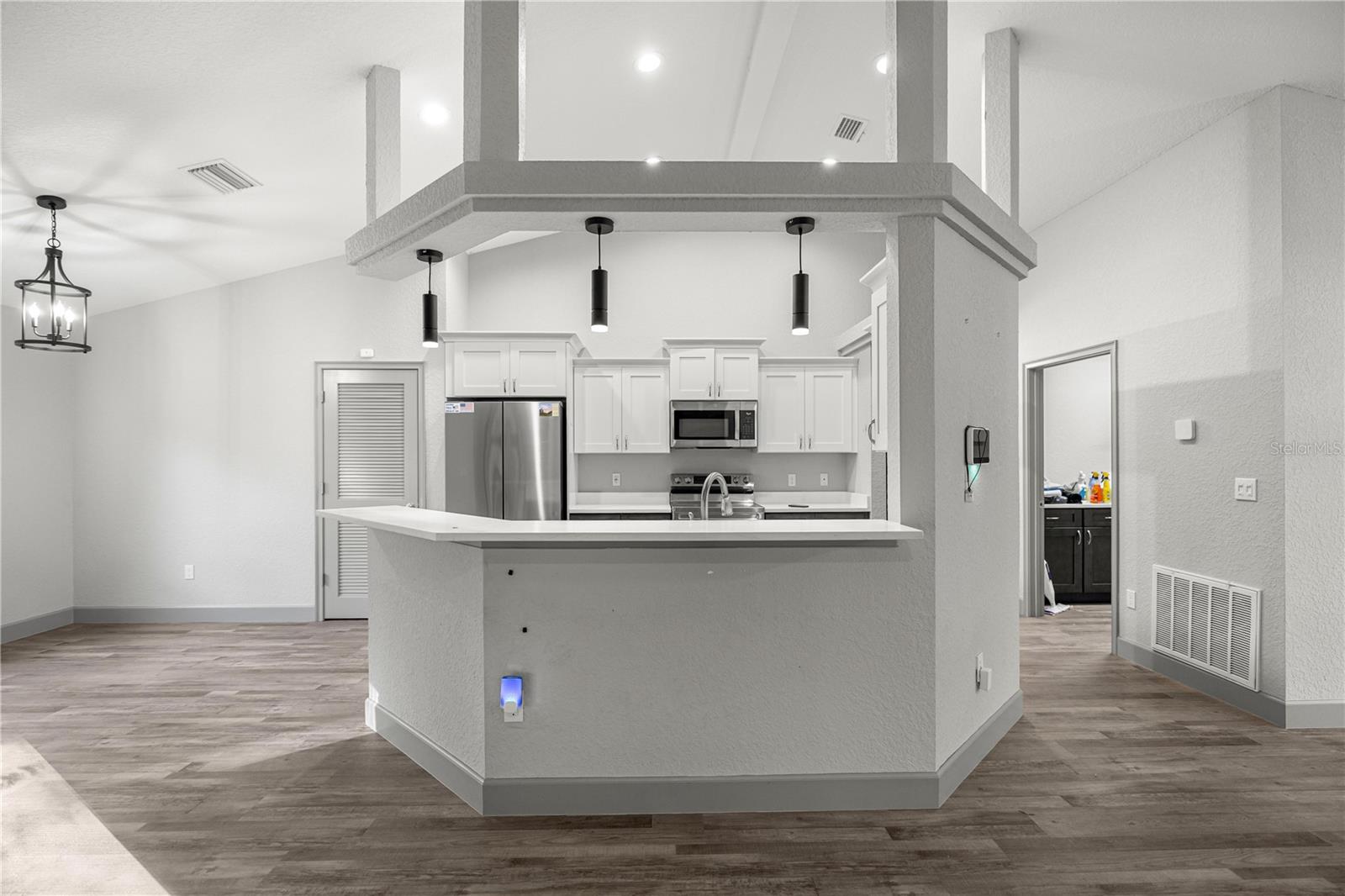 Welcome to luxury waterfront living on the infamous Rainbow River. This stunning concrete block 2023-built residence offers 105 feet of pristine river frontage, complete with a seawall & existing boathouse, creating the perfect setting for boating, kayaking, and enjoying Florida’s natural beauty. Situated on 2.18 acres outside of a flood zone, this thoughtfully designed split-bedroom home features soaring cathedral ceilings, luxury vinyl plank flooring, and abundant natural light throughout. The open-concept layout includes a separate dining area and an eat-in kitchen. The spacious primary suite boasts double vanities and a private retreat feel, while generously sized guest bedrooms share a full guest bath. Additional highlights include an inside laundry room, oversized two-car garage, and a massive 24x20 covered back porch—perfect for relaxing and taking in breathtaking river views. A rare opportunity to own newer construction on one of Florida’s most sought-after waterways. Schedule your private showing today.