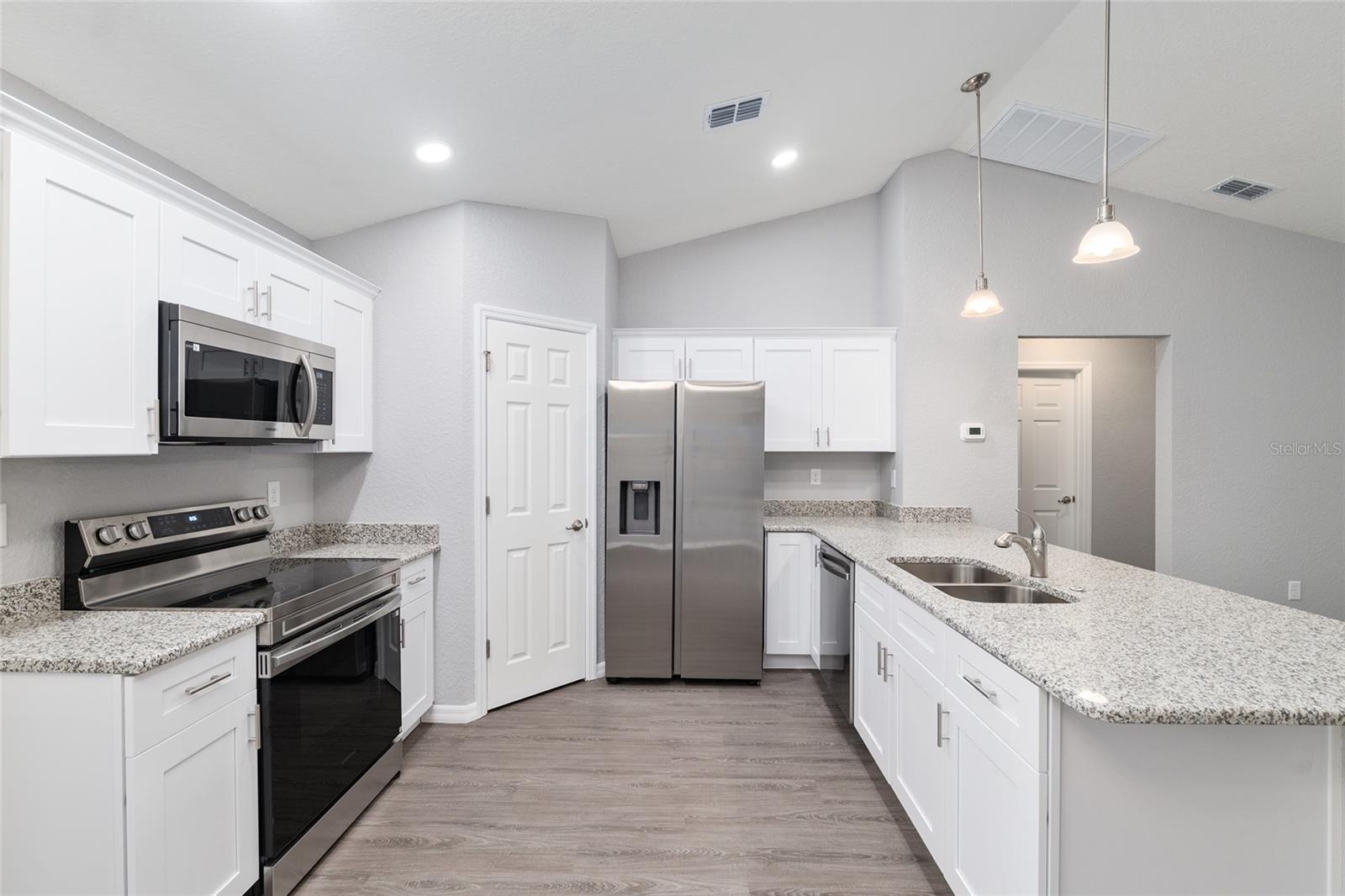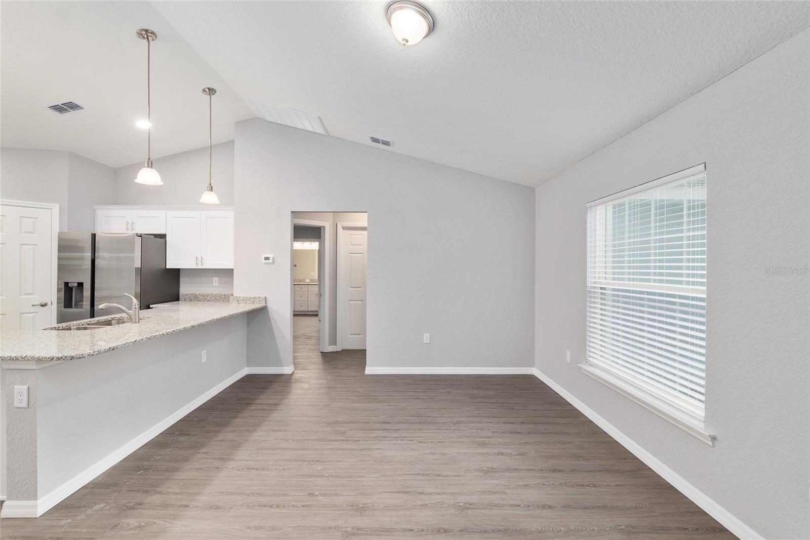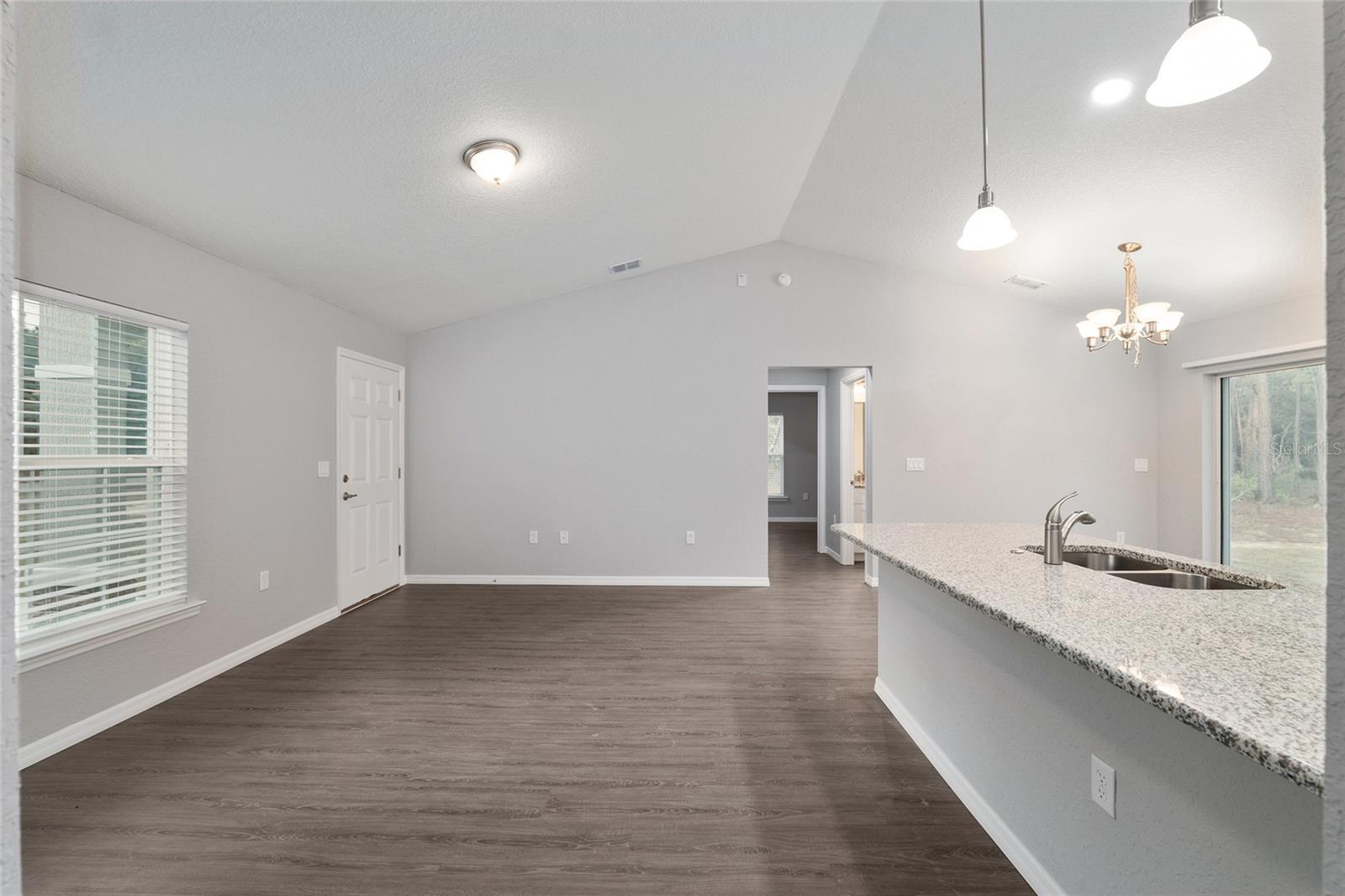 EASILY OBSERVABLE! BETTER VALUE! This new home is fully COMPLETE and fully MOVE IN READY, right down to the WINDOW BLINDS. This Samuel Model in Rainbow Lakes Estates offers 3 bedrooms, 2 bathrooms, and solid craftsmanship from a family-owned builder. The home includes all-wood soft-close cabinets, granite countertops, a full-sized Lazy Susan, stainless steel appliances, and double-paned insulated windows. It also comes equipped with a high efficiency HVAC system, double pane high efficiency windows, and a high efficiency electric hot water heater. Inside, you’ll find an open layout with grey luxury vinyl plank flooring, vaulted ceilings, and great natural light. Outside is a fully sodded Bahia yard, perfect for relaxing or entertaining. Just minutes from shopping, dining, and The Villages. A clean, complete, move-in ready home waiting for its first owner.