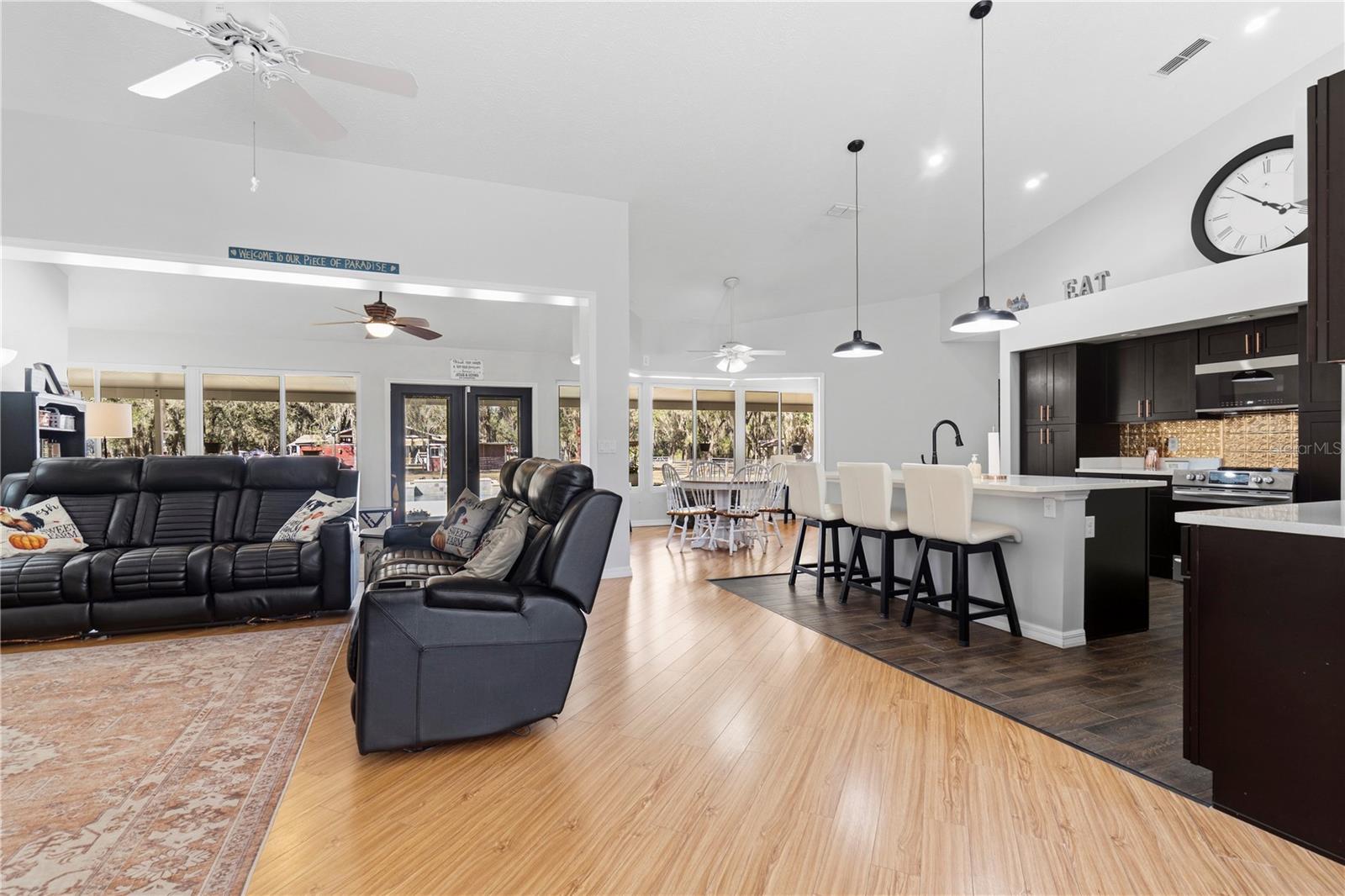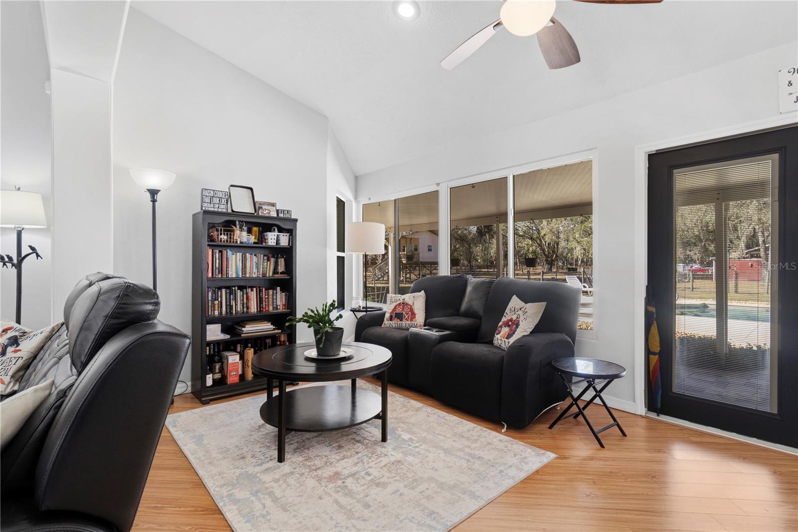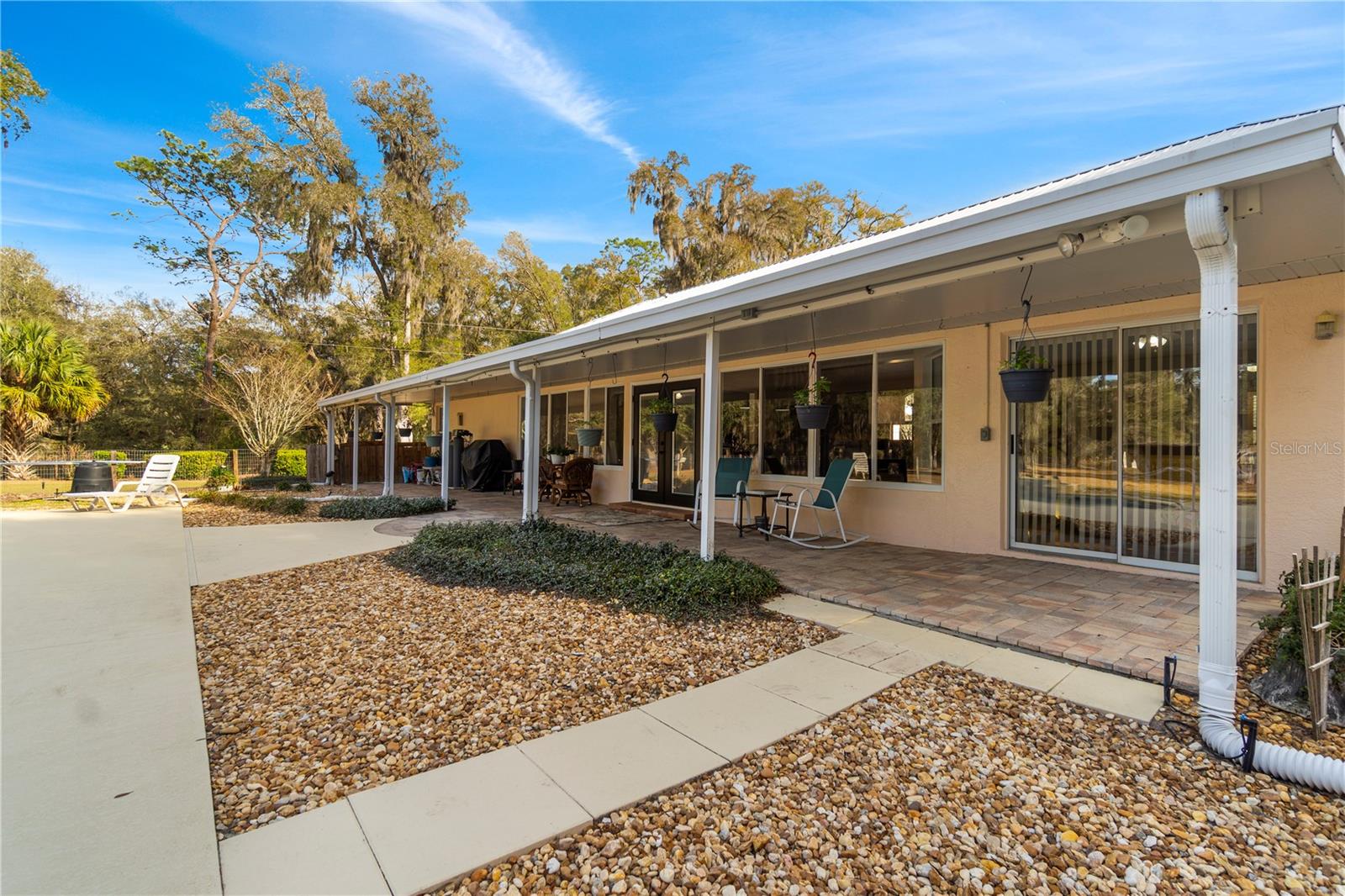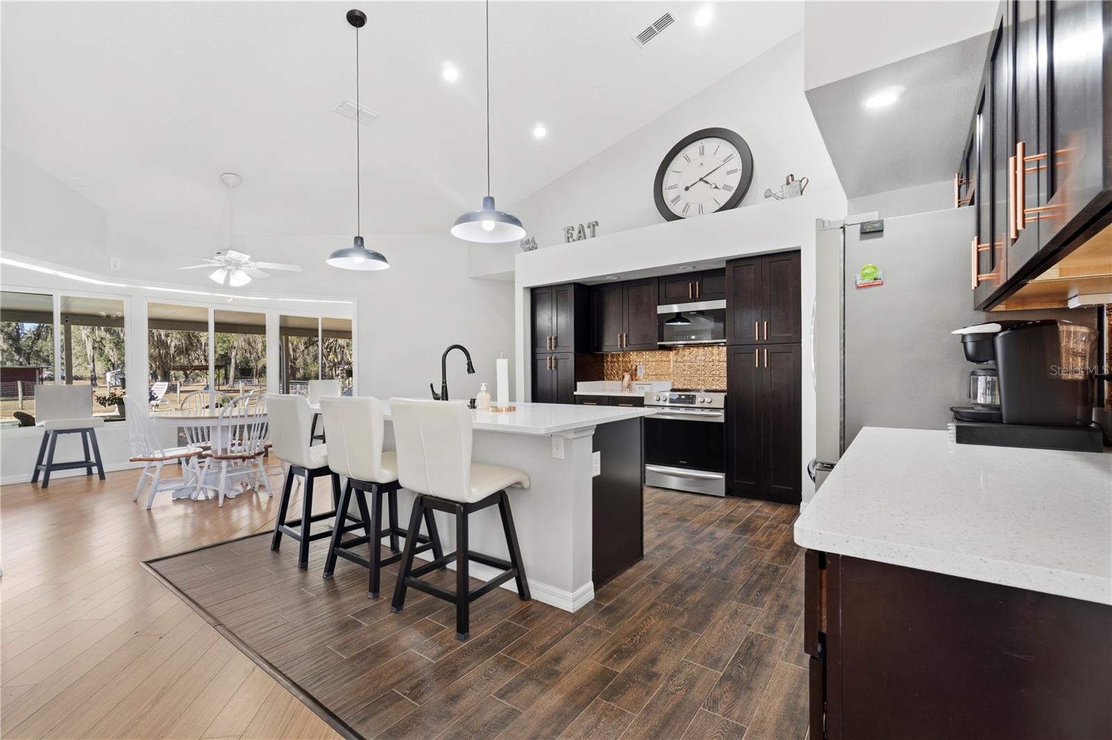 Discover the perfect blend of country charm, modern comfort, and built-in income on this exceptional mini farm just outside Ocala. Situated on just under 8 beautifully maintained acres, this unique property features two residences, equestrian amenities, and outstanding recreational spaces, ideal for multigenerational living, rental income, or a private retreat. The primary residence offers 3 bedrooms, 2 bathrooms, and a flexible office space, all thoughtfully updated. The fully renovated kitchen shines with quartz countertops, brand-new stainless steel appliances, custom cabinetry with copper hardware, a designer backsplash, and a large center island. The open living area flows seamlessly to an expansive covered lanai overlooking a private resort-style pool with a waterfall, perfect for entertaining or relaxing in total privacy. Major upgrades include a 2023 HVAC, 2021 water heater, 2-year-old well pump, and a durable metal roof (2009). Additional features include an RV port, a carport, and three storage sheds, two have electricity, and one has water. Equestrian and outdoor enthusiasts will appreciate the 4-stall center-aisle barn complete with tack room, feed room, and fenced pastures, and a truly spectacular custom treehouse. The second residence is a 2016 manufactured home offering 4 bedrooms, 2 bathrooms, and 2,280 sq ft of stylish living space. Featuring luxury vinyl plank flooring, tray ceilings, an open floor plan, and a massive front porch, this home is currently tenant-occupied with a long-term lease, providing immediate passive income. It also has its own private driveway for added privacy. Conveniently located near shopping, dining, hospitals, and outdoor recreation and just 20 minutes from the renowned World Equestrian Center, this one-of-a-kind property offers lifestyle, location, and income potential all in one. A rare opportunity you don’t want to miss!