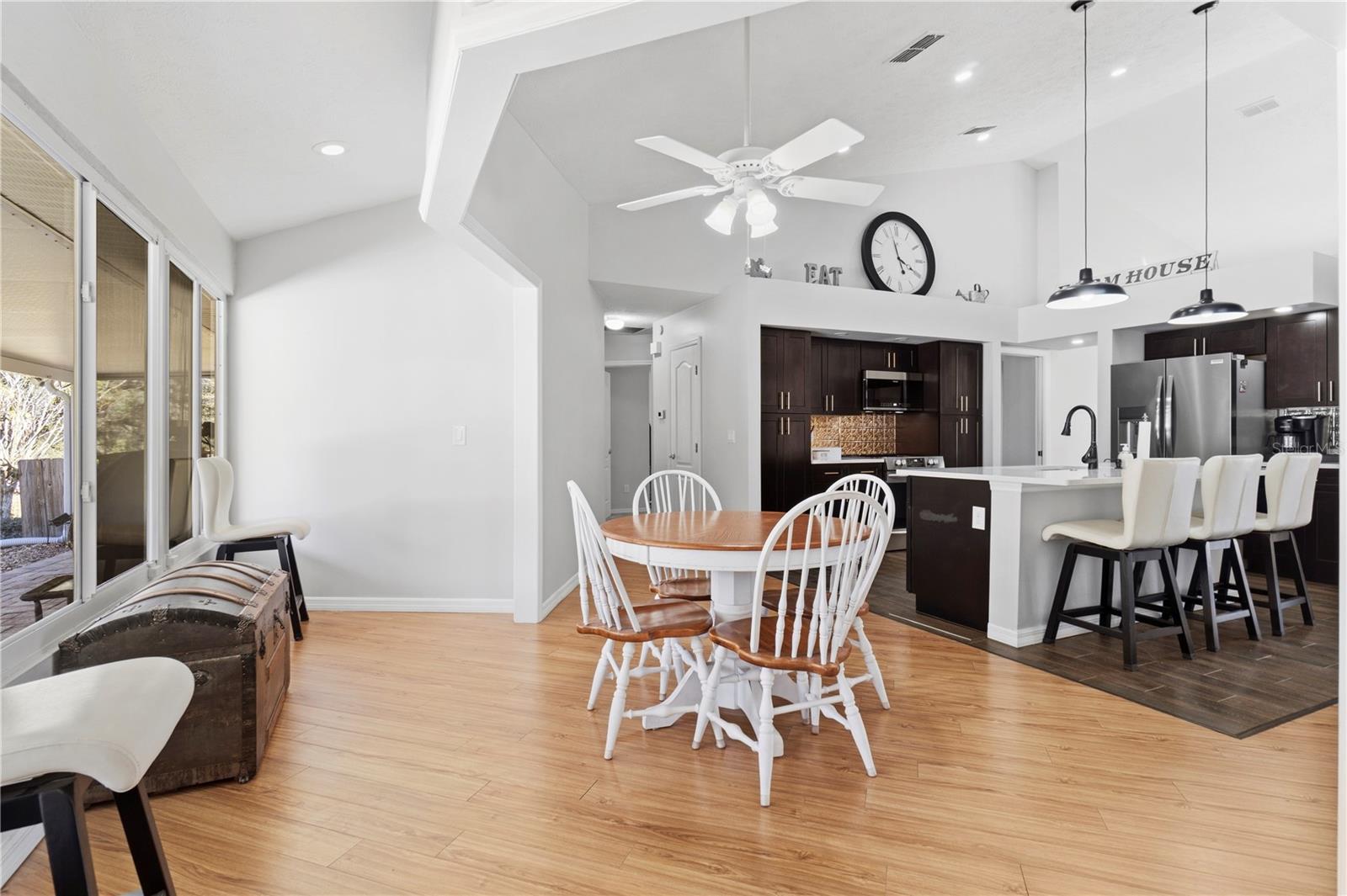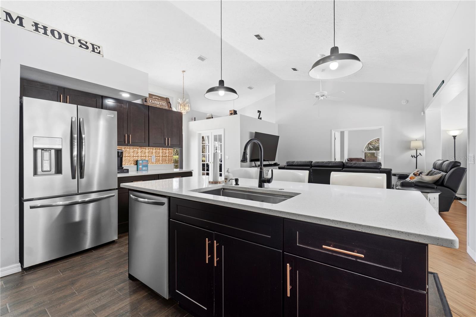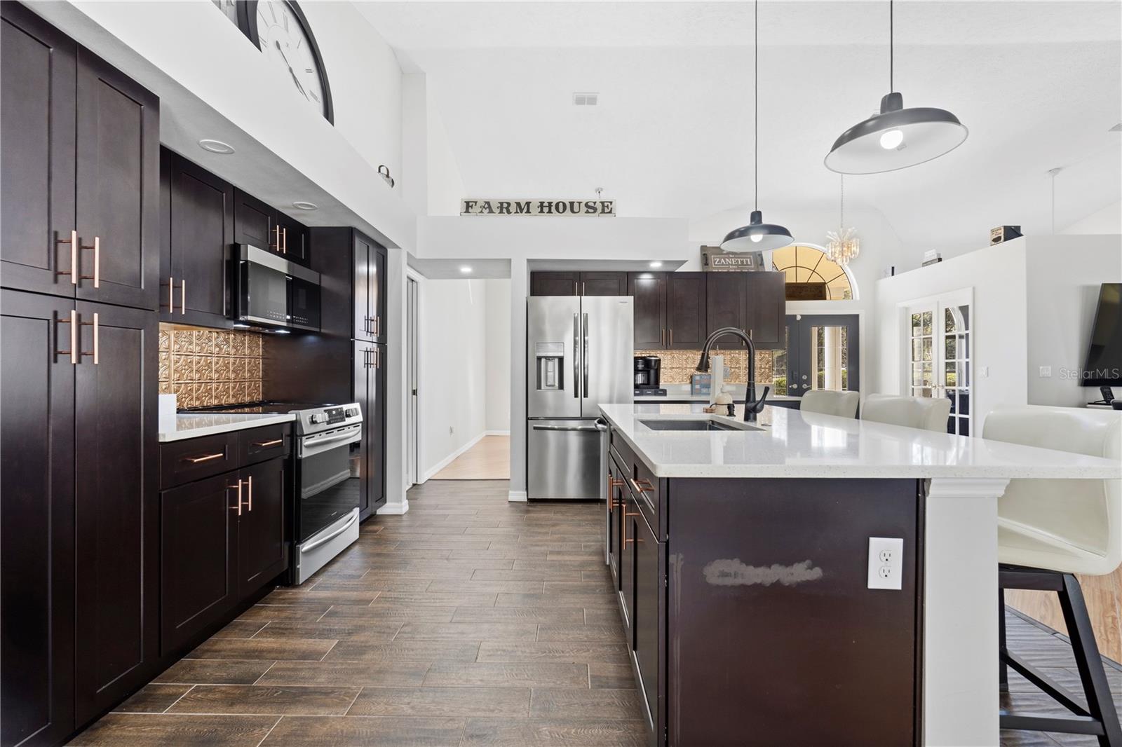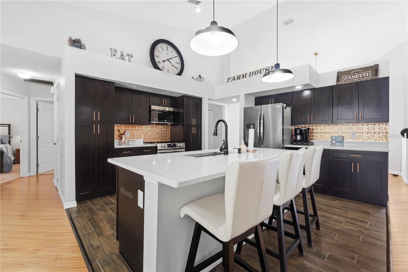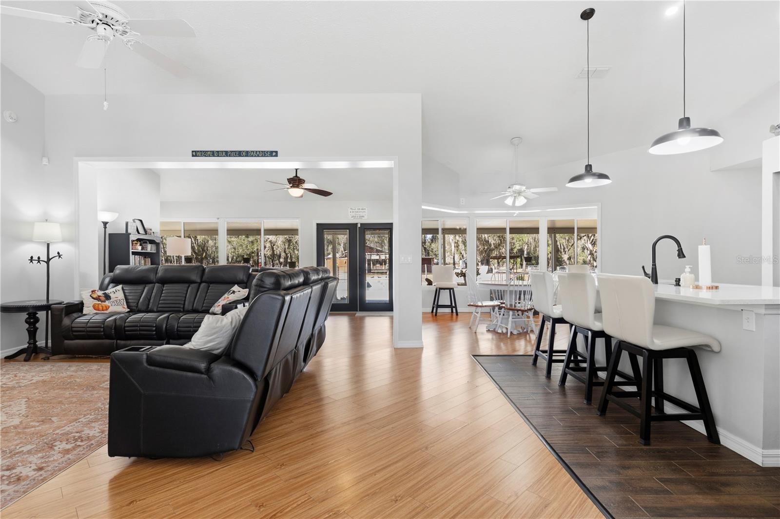 Discover the perfect blend of country charm, modern comfort, and built-in income on this exceptional mini farm just outside Ocala. Situated on just under 8 beautifully maintained acres, this unique property features two residences, equestrian amenities, and outstanding recreational spaces, ideal for multigenerational living, rental income, or a private retreat. The primary residence offers 3 bedrooms, 2 bathrooms, and a flexible office space, all thoughtfully updated. The fully renovated kitchen shines with quartz countertops, brand-new stainless steel appliances, custom cabinetry with copper hardware, a designer backsplash, and a large center island. The open living area flows seamlessly to an expansive covered lanai overlooking a private resort-style pool with a waterfall, perfect for entertaining or relaxing in total privacy. Major upgrades include a 2023 HVAC, 2021 water heater, 2-year-old well pump, and a durable metal roof (2009). Additional features include an RV port, a carport, and three storage sheds, two have electricity, and one has water. Equestrian and outdoor enthusiasts will appreciate the 4-stall center-aisle barn complete with tack room, feed room, and fenced pastures, and a truly spectacular custom treehouse. The second residence is a 2016 manufactured home offering 4 bedrooms, 2 bathrooms, and 2,280 sq ft of stylish living space. Featuring luxury vinyl plank flooring, tray ceilings, an open floor plan, and a massive front porch, this home is currently tenant-occupied with a long-term lease, providing immediate passive income. It also has its own private driveway for added privacy. Conveniently located near shopping, dining, hospitals, and outdoor recreation and just 20 minutes from the renowned World Equestrian Center, this one-of-a-kind property offers lifestyle, location, and income potential all in one. A rare opportunity you don’t want to miss!