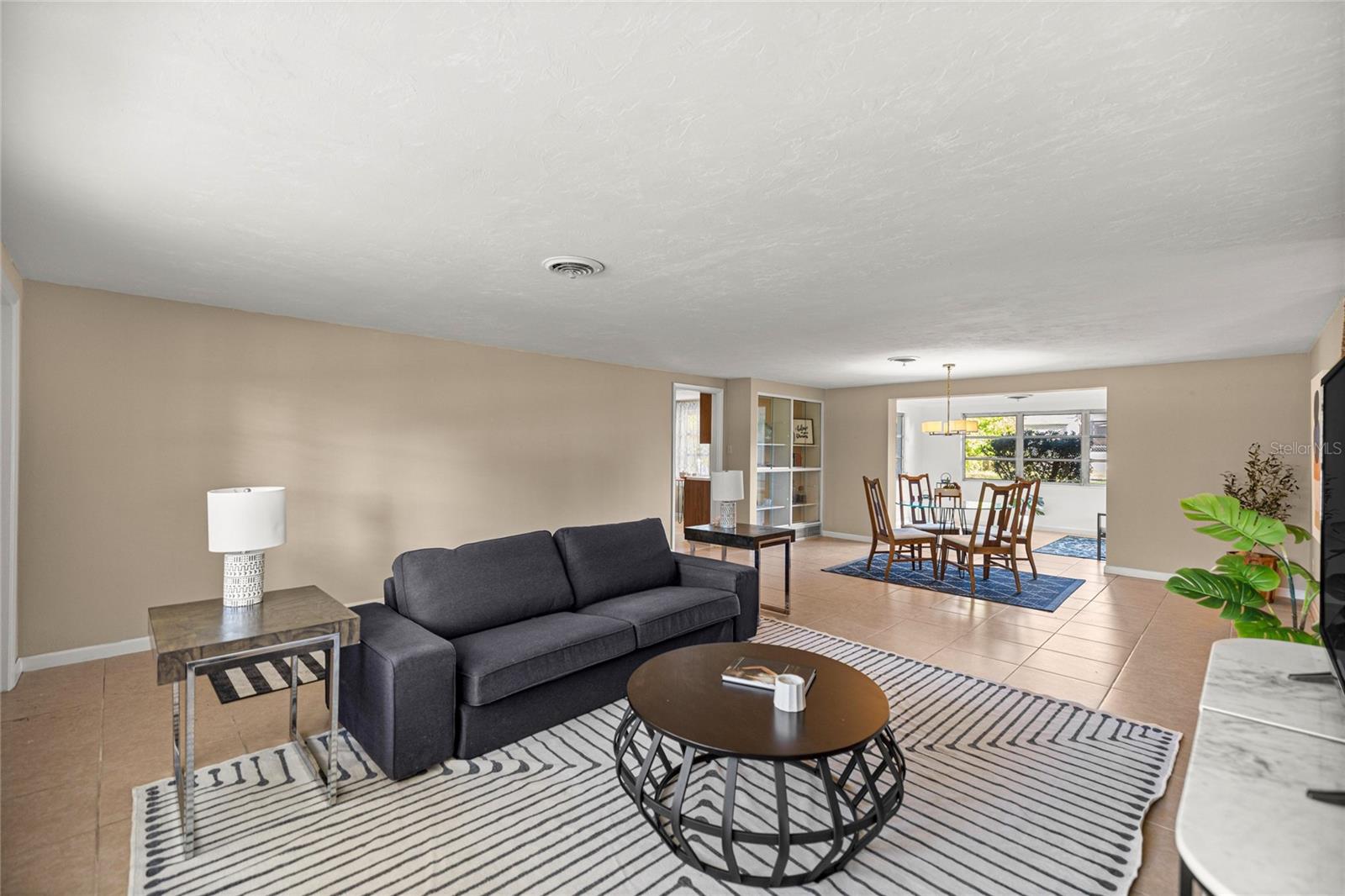 Step into a thoughtfully preserved mid-century ranch in Dunnellon’s Rainbow Acres, where original design elements and modern updates come together seamlessly. Recently refreshed with new interior and exterior paint and a brand-new roof, this home offers a clean, move-in-ready canvas while honoring its architectural roots. Beneath the current flooring lies original terrazzo, a hallmark of mid-century Florida construction, offering the opportunity to restore one of the home’s most desirable features or enjoy the existing finishes as-is. Inside, the home showcases a design-driven approach to comfort and livability, including an integrated HVAC system with round, concentric ceiling diffusers—a classic mid-century feature designed for quiet, even air distribution while maintaining clean ceiling lines. Complementing this is a central return air system built directly into the structure, with return chases running beneath the slab and within lower wall sections to pull air efficiently from multiple areas of the home. These returns are discreetly incorporated into architectural elements, including built-ins in the dining area, preserving both function and visual continuity—an uncommon level of planning rarely seen in today’s construction. The kitchen features classic cabinetry with subtle curved detailing, along with a double oven setup, offering both character and functionality. Clean lines, natural light, and a practical layout create a space that feels both timeless and comfortable. Set on a spacious lot in a quiet, established neighborhood, this property offers the opportunity to embrace a design-forward mid-century aesthetic or simply enjoy a solid, well-built home with unique architectural touches. A rare blend of mid-century character, thoughtful construction, and modern updates—this is not your typical ranch.
