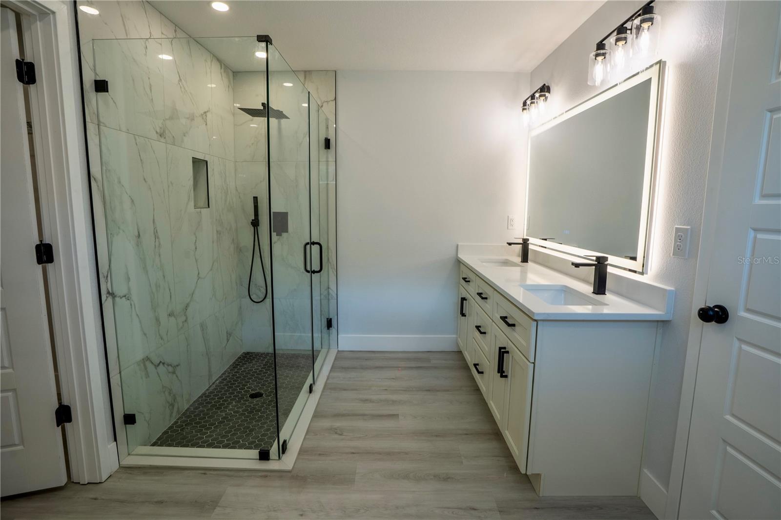 Stunning Band New Home that sits on .22 acre, in a growing subdivision that has no HOA, surrounded of new houses. This home futures 4 bedrooms, 2 bathrooms and 2 car-garage. Beautiful eat-in kitchen with 11ft centered island, the elegancy of the large cabinets and quartz countertops makes this kitchen a lovely place to stay. The master bedroom has walking closet, a gorgeous master bathroom with tile shower and enclosed with glass, double vanity and quartz countertops. The guest bathroom has tile shower with sliding glass door, quartz countertop and double vanity as well. Floors are Vinyl Plank through all the house, ceiling fan in living room and in all the bedrooms, the dinning/living room has a sliding door that takes you to the back porch to enjoy your patio and peaceful nature. Split bedroom plan. Inside laundry room. Garage has a side door for your convenience. You need to come to see and feel in-love with this luxury home.