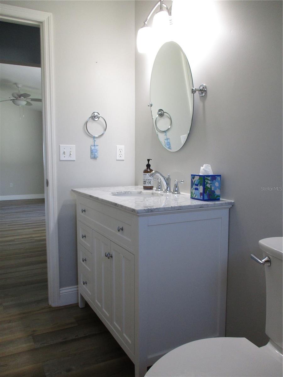 STUNNING HOME WITH NO HOUSES BEHIND ! There is much to love about this beautifully updated 3 bedroom home. Beginning with the attractive stucco exterior and the flowering landscape plantings within concrete curbing and rock for easy maintenance. Interior is light and bright and has luxury vinyl plank flooring flowing room to room with no thresholds, gorgeous updated kitchen with quartz, stainless appliances, tile backsplash and a large center island with breakfast bar. Split bedroom floor plan is a smart set up for guests or live in family , providing space and privacy for all. Primary bath has double sinks with quartz vanity, abundant storage and a large tiled walk in shower with multiple heads. Guest bath has quartz vanity and a relaxing soaker tub/shower. Inside laundry room has wash tub sink and additional storage. The Florida room has updated glass windows and even a doggie door for your puppy to freely romp in the fenced backyard while you are splashing at the community pool or playing a round of golf. You can always appreciate grilling out under the covered patio and enjoy the privacy offered by the lack of homes right behind !! ROOF 2015, HVAC 2016, WATER HEATER 2017, WATER SOFTENER, SURVEY. In the fun friendly active 55+ golf community of SPRUCE CREEK PRESERVE. With great amenities and activities like pool, hot tub, pickleball, tennis, shuffleboard, corn hole bocce ball, fitness center, water aerobics, yoga, exercise classes, cards, crafts, bingo, bunco, potluck dinners, dances, social and travel groups. A peaceful community setting nestled up to Ross Prairie Nature Preserve . While still being just minutes from life's necessities, restaurants and shopping. North Central location is ideal for day trips all across the state and easy access to airports and cruising ports.