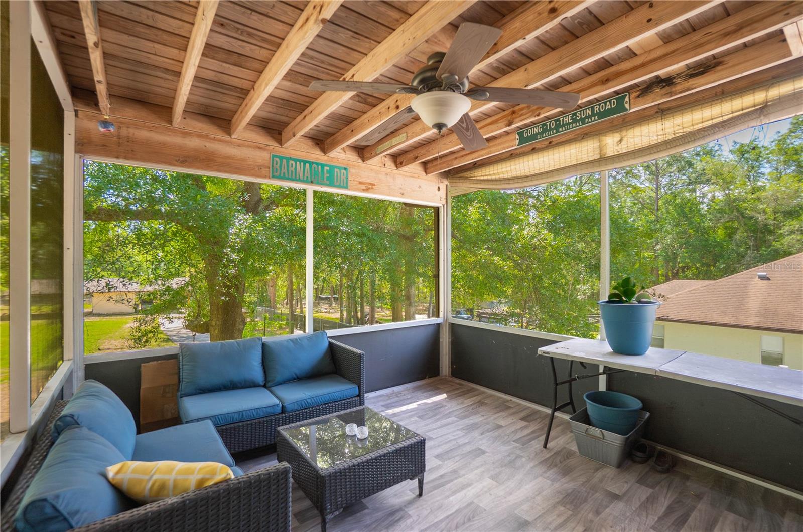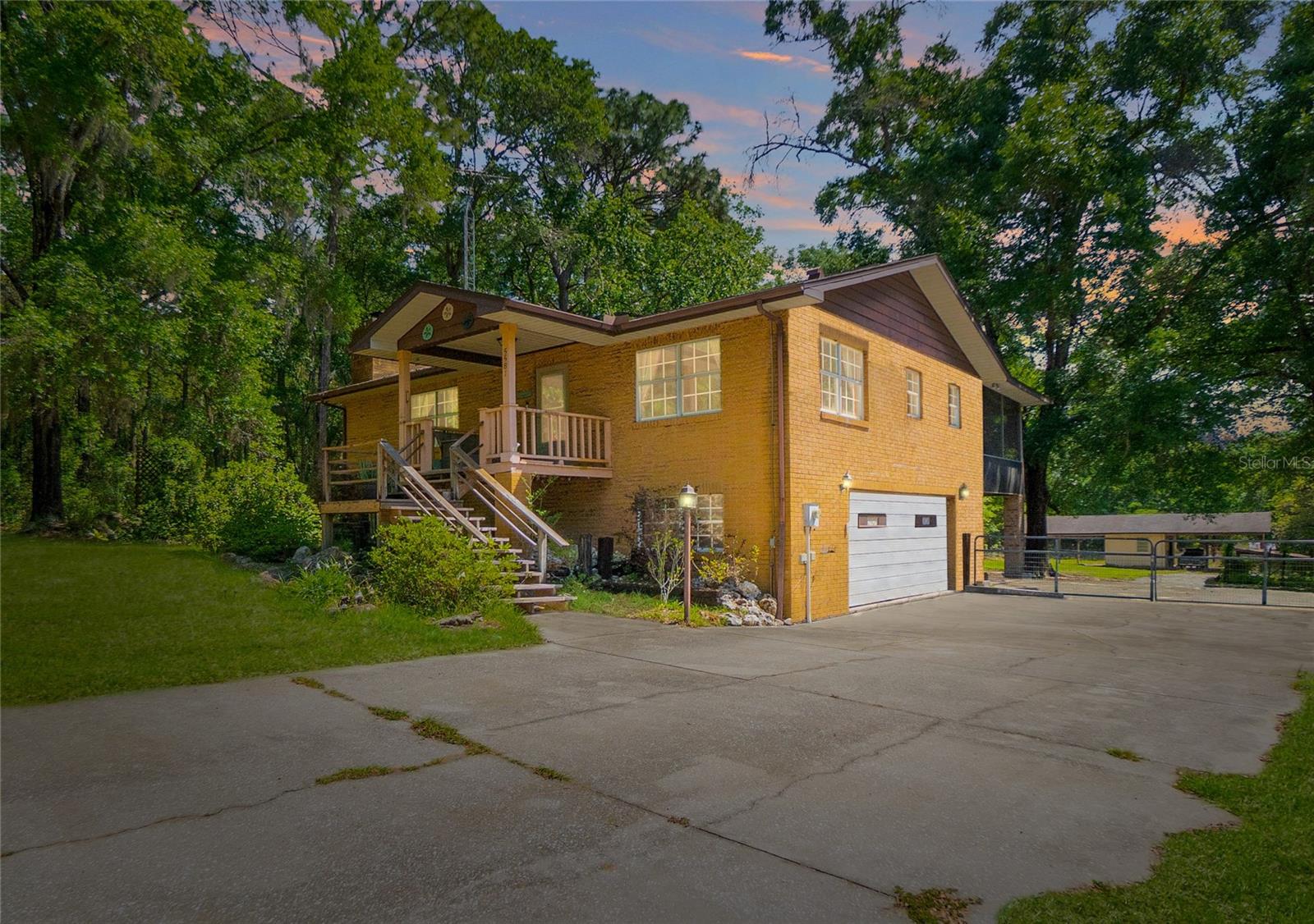 Tucked away on a generous .95-acre parcel, this custom-built 1981 residence offers a blend of space, flexibility, and character—perfectly suited for multigenerational living or those seeking room to grow. With 1,953 square feet of living area, 3 bedrooms, 2 bathrooms, and a side-entry 2-car garage, this property delivers both comfort and functionality in a peaceful setting. The upper level serves as the main living space, featuring a full kitchen equipped with wood cabinetry, stainless steel appliances, and a convenient breakfast bar. The adjoining dining area flows seamlessly into a spacious living room anchored by an expansive stone fireplace, creating a welcoming focal point. Two bedrooms and a full bathroom complete this level, along with an inviting 11x12 screened lanai—ideal for enjoying the outdoors year-round. The lower level provides additional versatility with a private entrance, making it well-suited for extended family or guests. This space includes a flex room highlighted by a second wood-burning fireplace, an additional bedroom, and a full bathroom. Laundry hookups are conveniently located on both levels, enhancing everyday ease. A spiral staircase connects the two floors, adding architectural interest. Outdoors, the property presents a new rood in 2025, a rear fenced yard, a detached workshop with an attached pole barn, and a chicken coop for those seeking a touch of country living. With ample room for gardening, recreation, or the addition of a pool, the possibilities are endless. This unique property combines privacy, practicality, and rustic charm—ready to accommodate a variety of lifestyles.