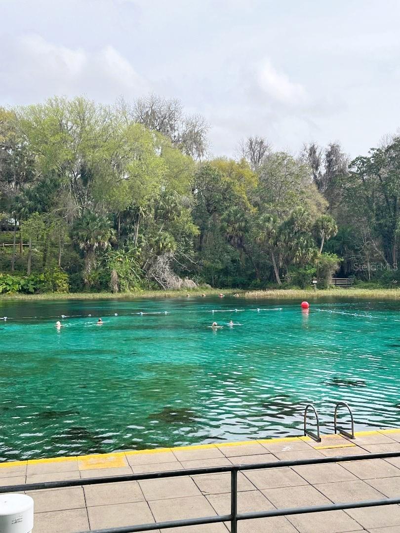 Fox Trace in Rainbow Springs. Very nicely maintained split plan 3 bedroom/2 bath Pool home with a den and a 3 car garage with screen sliders. Enter into the foyer and living room area with engineered hardwood and ceramic tile in kitchen and baths. An open floor plan with the dining area off the kitchen includes a breakfast bar area and walk in pantry. The laundry room with cabinets for storage off of the kitchen. A master bedroom offering an updated tray ceiling design with a door to the screened in patio. An ensuite master bath with separate shower and large tub with dual sinks. This home offers an open floor plan with french doors leading to the large lanai with beautiful views of the wooded area where you can sit and enjoy the sounds of the birds and wildlife. A well on this property is for irrigation and general use. This home is located on a quiet cul de sac street. Included in the Hoa fee is mowing, trimming of the lawn and the community center offers many gathering events, with a restaurant that has bands on most weekends, pool, tennis/pickleball courts and small fitness room and many walking trails to explore. The Rainbow Springs State Park is so close you can walk there. A beautiful park to kayak, swim, picnic and stroll around the park grounds. Come and see this home today!