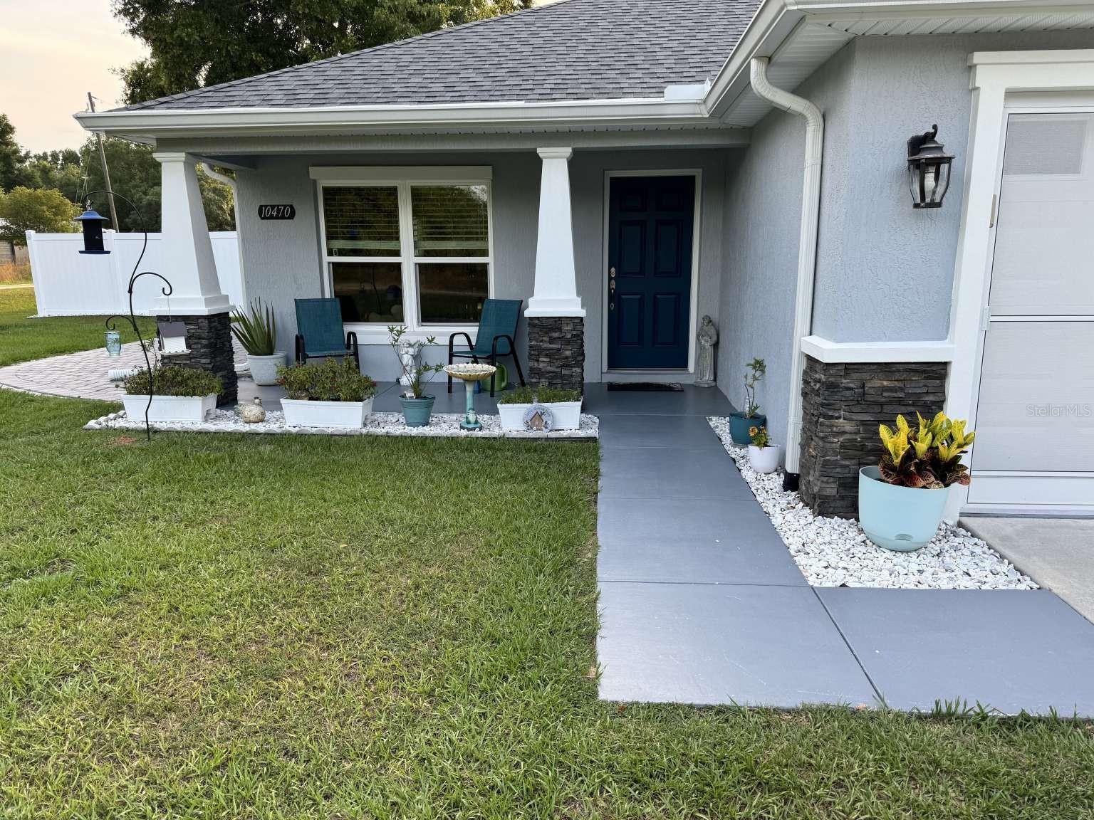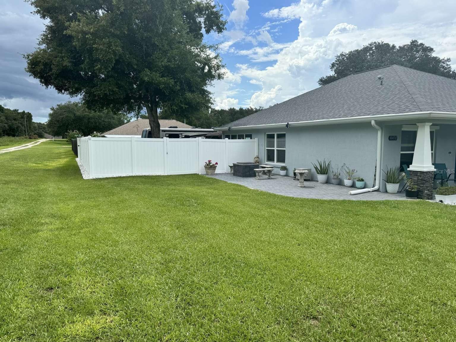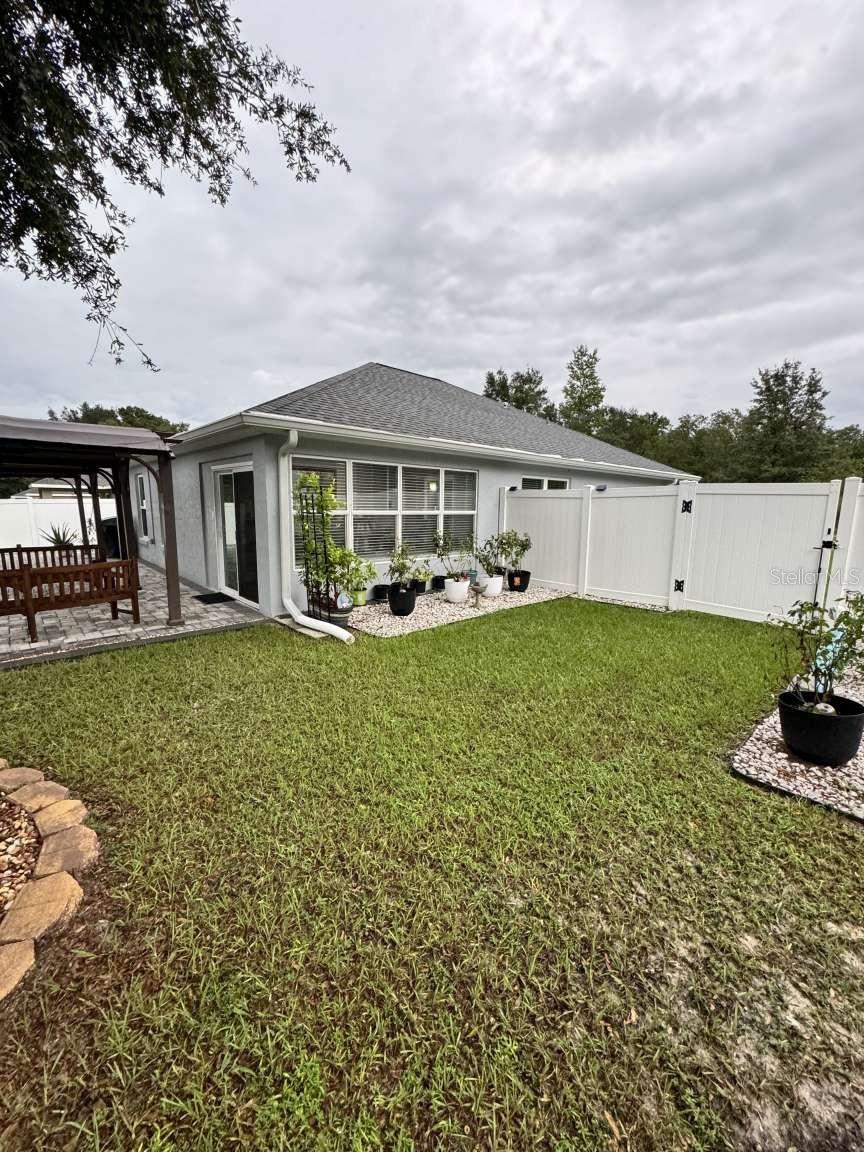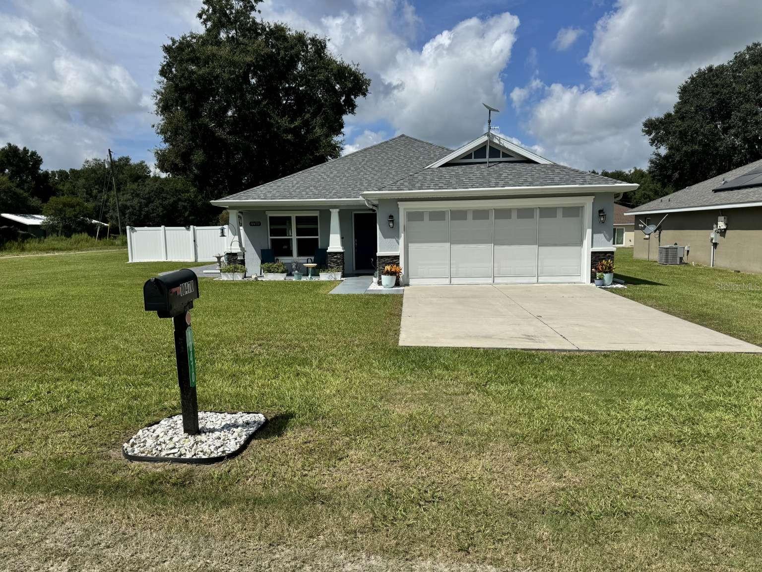 Motivated sellers! Bring your offer today! Immaculate 3/2/2 home built in 2019 in the sought-after Rolling Ranch Estates offers a hassle-free transition with no HOA or CDD fees. The open-concept design features granite countertops in the kitchen and bathrooms, white cabinets with soft-close drawers, and a spacious kitchen island with bar seating for 4. Enjoy ceiling fans in the living room and all bedrooms, luxury vinyl plank flooring throughout the home with carpeted bedrooms, a tiled shower in the principal bathroom, and a tiled wall surrounding the tub in the secondary bathroom, blinds on every window, and a full suite of appliances included. For remote workers or those desiring an office, the home also includes a perfect office space for two with plenty of light and plank ceramic floor tiles. High speed internet service is currently provided by Starlink; however, Spectrum service is now available. The home is located on a corner lot, with outdoor living enhanced by two paver patios, an 11' x 32' side patio with a propane firepit, and a 15' x 35' rear patio adorned with three 10' x 10' pergolas. Privacy is assured in the fenced backyard with a 6' PVC fence and a 12' side entry gate for parking a motorhome or trailer. The property uses a well and septic system, eliminating monthly water or sewer bills, and includes a water softening system. This beautiful home has a VA assumable loan for a qualified veteran. Property is located approximately 25 minutes from the World Equestrian Center and Rainbow Springs State Park.