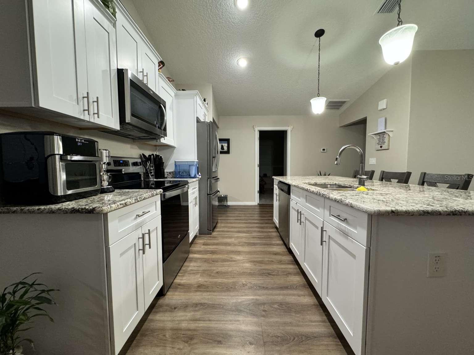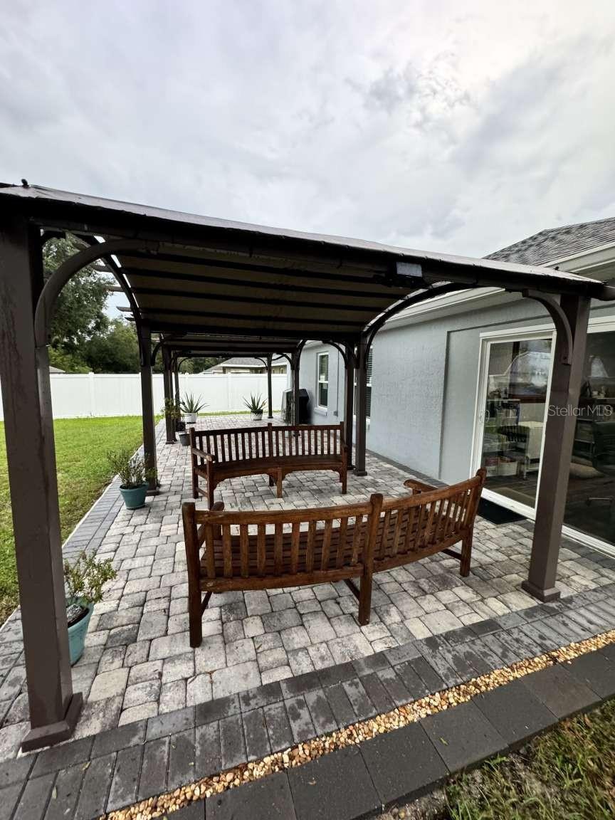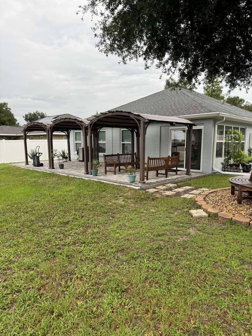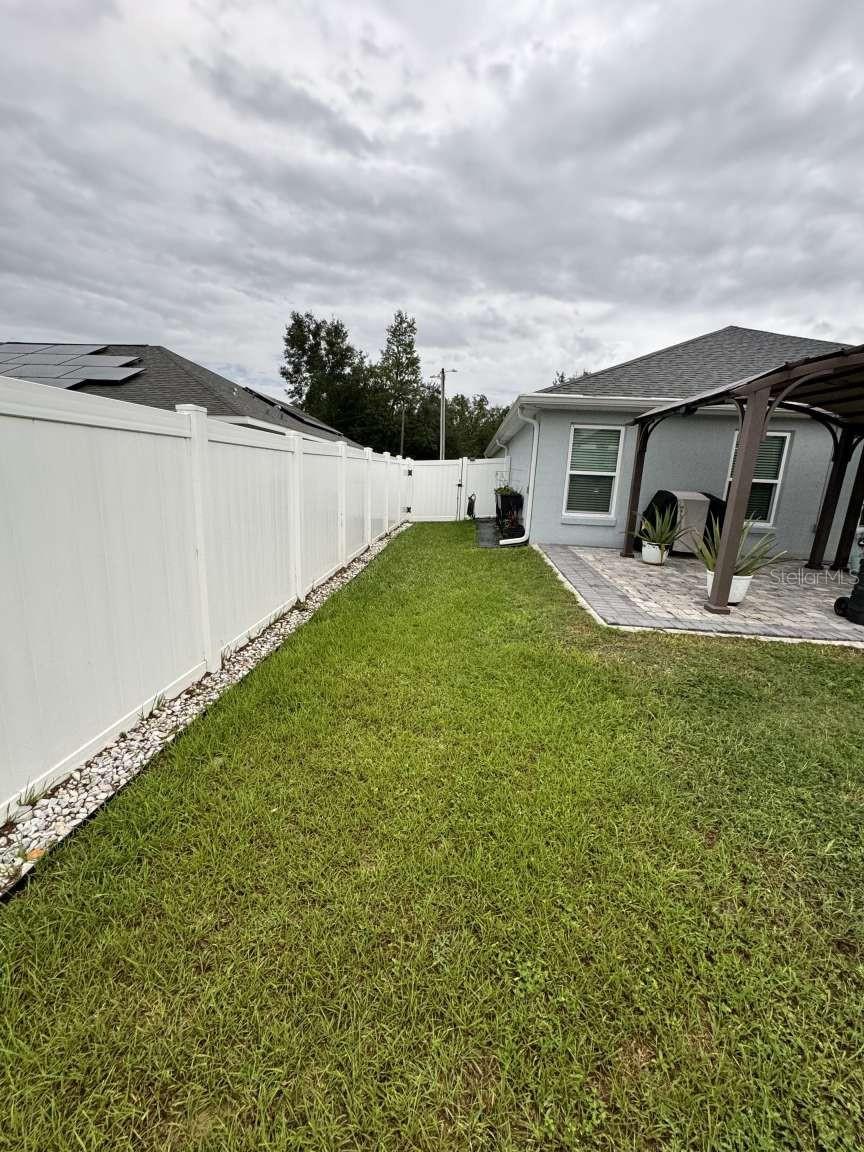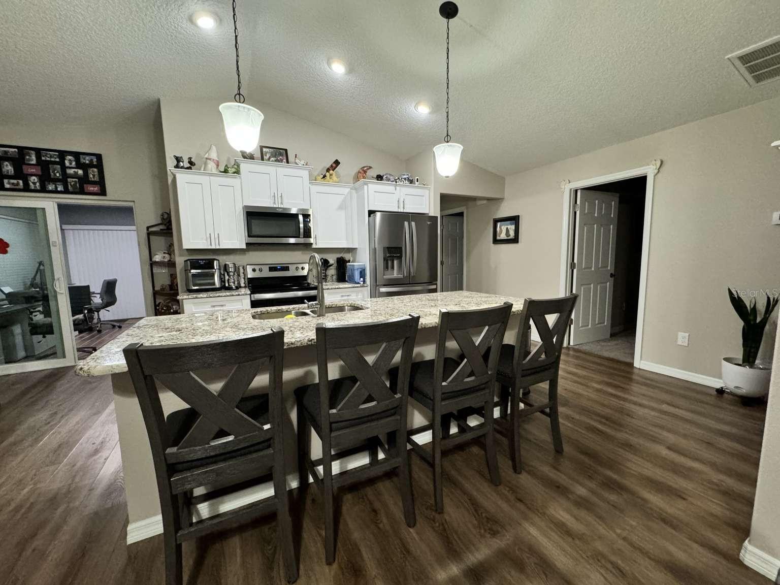 Motivated sellers! Bring your offer today! Immaculate 3/2/2 home built in 2019 in the sought-after Rolling Ranch Estates offers a hassle-free transition with no HOA or CDD fees. The open-concept design features granite countertops in the kitchen and bathrooms, white cabinets with soft-close drawers, and a spacious kitchen island with bar seating for 4. Enjoy ceiling fans in the living room and all bedrooms, luxury vinyl plank flooring throughout the home with carpeted bedrooms, a tiled shower in the principal bathroom, and a tiled wall surrounding the tub in the secondary bathroom, blinds on every window, and a full suite of appliances included. For remote workers or those desiring an office, the home also includes a perfect office space for two with plenty of light and plank ceramic floor tiles. High speed internet service is currently provided by Starlink; however, Spectrum service is now available. The home is located on a corner lot, with outdoor living enhanced by two paver patios, an 11' x 32' side patio with a propane firepit, and a 15' x 35' rear patio adorned with three 10' x 10' pergolas. Privacy is assured in the fenced backyard with a 6' PVC fence and a 12' side entry gate for parking a motorhome or trailer. The property uses a well and septic system, eliminating monthly water or sewer bills, and includes a water softening system. This beautiful home has a VA assumable loan for a qualified veteran. Property is located approximately 25 minutes from the World Equestrian Center and Rainbow Springs State Park.