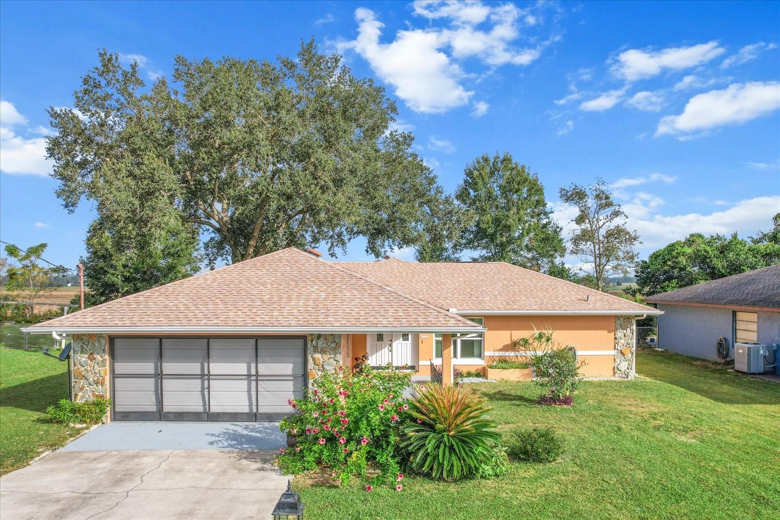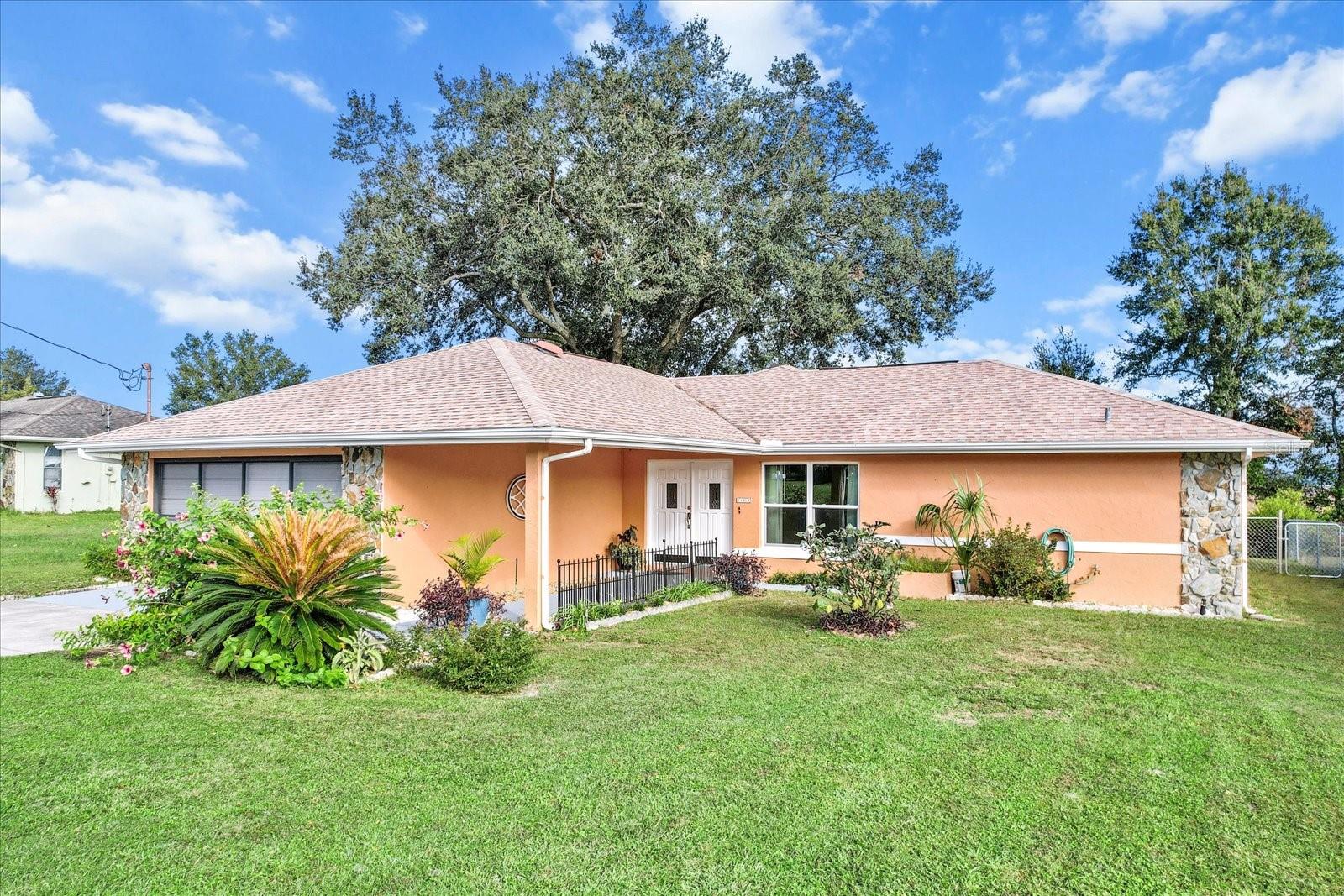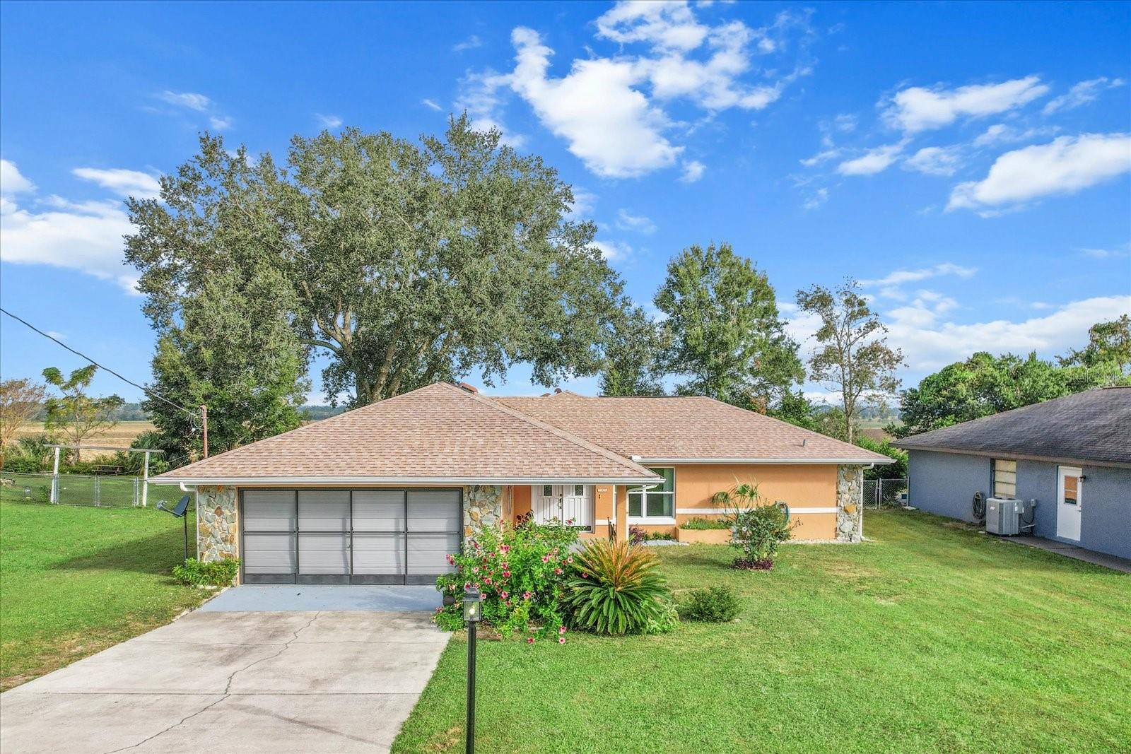 This 3-bedroom, 2-bath home is more than charming. The home was completely renovated in 2024, and it features a 300-square foot enclosed, air conditioned, patio with vinyl window covers that can be removed so you can enjoy the screened windows and cooler weather. Attached to the screened patio is a 120-square foot outdoor patio under the shade of mature trees. The back of this charming home is fenced, and it faces out into an open field as far as the eye can see. Homeowners on this side of Plantation Street call it their 'million dollar view,' and it doesn't disappoint. Featuring a split floorplan, this house is equipped with all new flooring and granite countertops in both bathrooms as well as the kitchen. All three bedrooms are large, and the guest bedroom closets feature an organizational system within. Furthermore, this home features brand-new windows installed in 2024, a new roof as of 2022, and the HVAC was replaced in 2017. The 2-car garage features a sliding screen door as well as both upper and lower cabinetry to make storage both convenient and organized. The laundry room features upper cabinets for storage, and ample space. A door leading out to the back patio is located in the guest bathroom if ever a pool is added to the house. This home is located in Rainbow Lakes Estates and features no HOA fees. The community is equipped with access to the lake. The lake features a boat ramp and a dock, a playground, picnic tables, and a community center. You will also find a community shuffleboard court, all located nearby. Only a 10-minute drive from Dunnellon and the beautiful Rainbow Springs, this home is conveniently located to all that this part of the Florida lifestyle , which includes a 30-minute drive to Ocala, less than 45-minutes to Gainesville, and only 30-minutes to Crystal River’s King’s Bay and Three Sisters Springs. The best part about this house? It is not located in a Flood Zone.