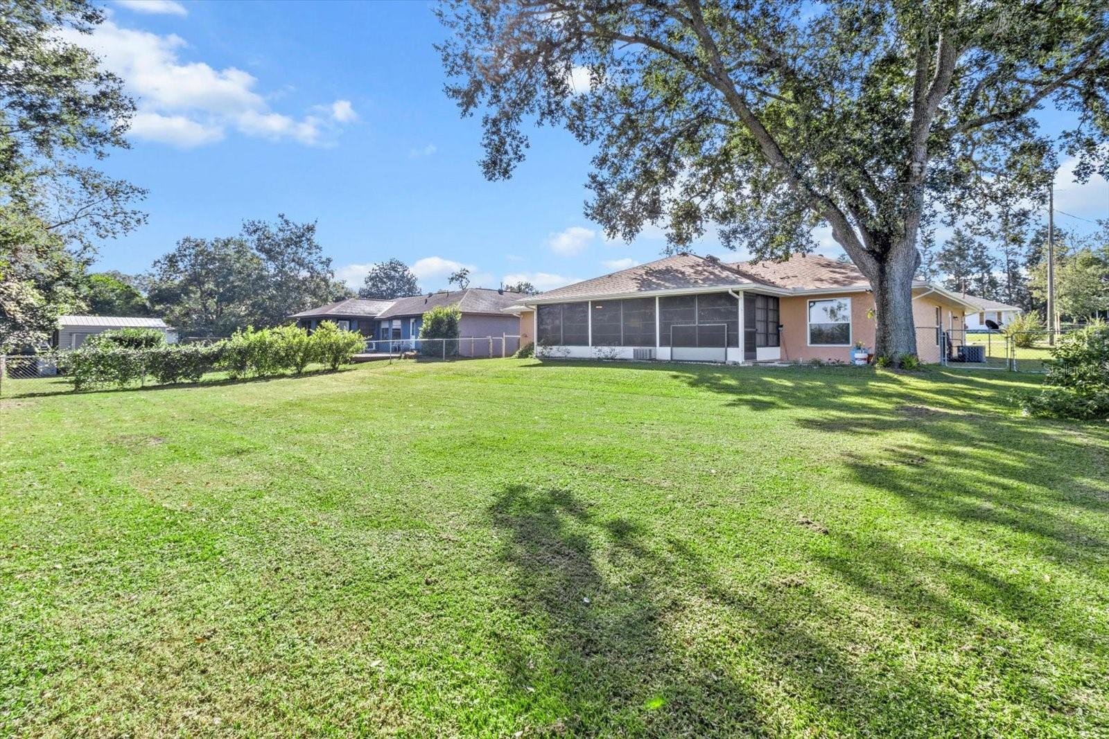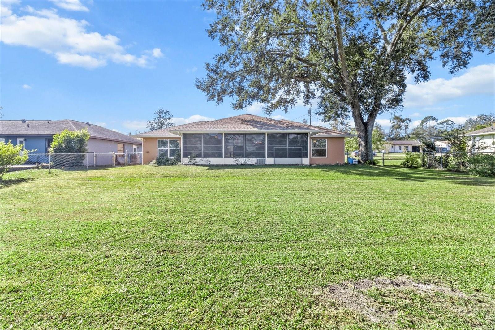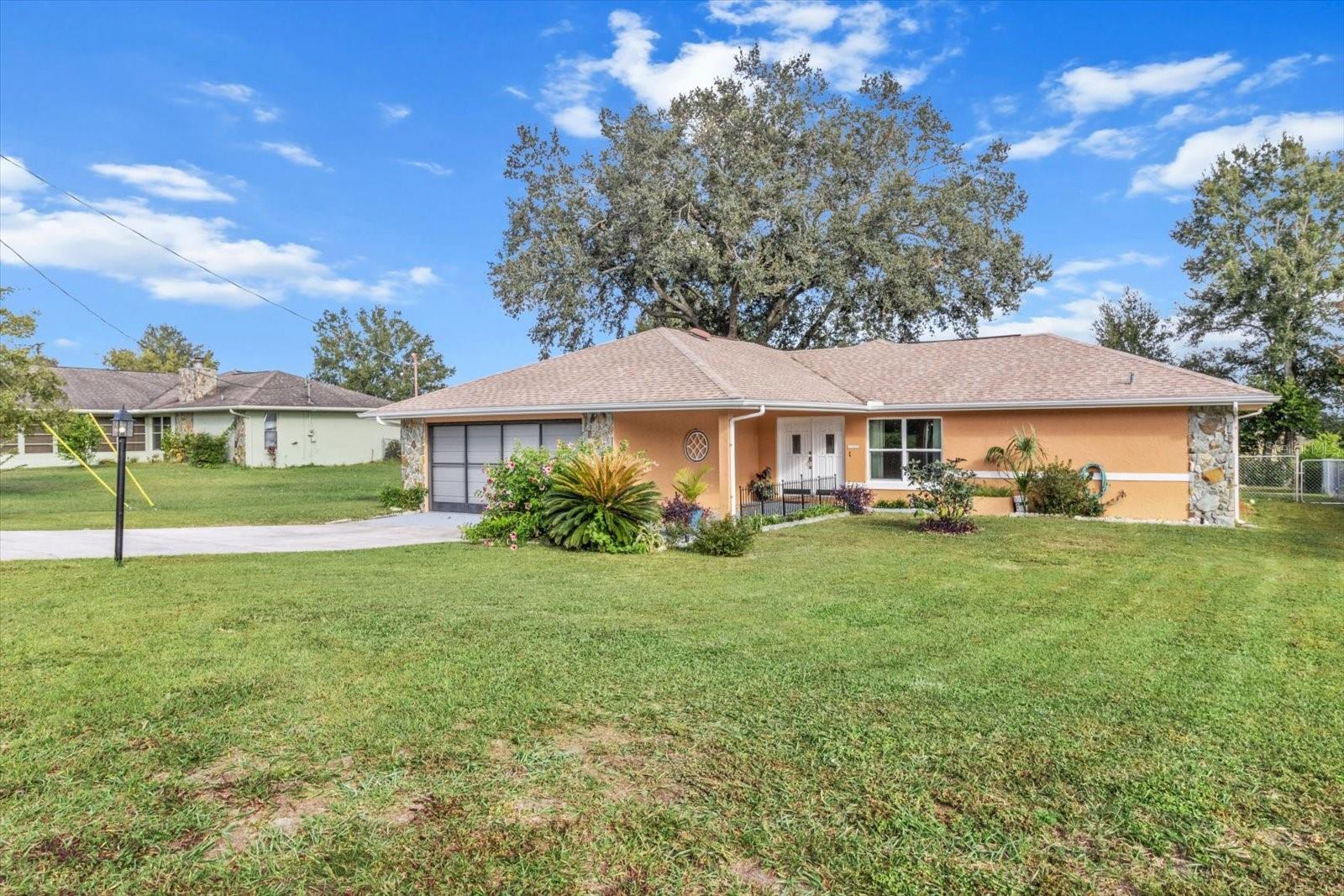 This 3-bedroom, 2-bath home is more than charming. The home was completely renovated in 2024, and it features a 300-square foot enclosed, air conditioned, patio with vinyl window covers that can be removed so you can enjoy the screened windows and cooler weather. Attached to the screened patio is a 120-square foot outdoor patio under the shade of mature trees. The back of this charming home is fenced, and it faces out into an open field as far as the eye can see. Homeowners on this side of Plantation Street call it their 'million dollar view,' and it doesn't disappoint. Featuring a split floorplan, this house is equipped with all new flooring and granite countertops in both bathrooms as well as the kitchen. All three bedrooms are large, and the guest bedroom closets feature an organizational system within. Furthermore, this home features brand-new windows installed in 2024, a new roof as of 2022, and the HVAC was replaced in 2017. The 2-car garage features a sliding screen door as well as both upper and lower cabinetry to make storage both convenient and organized. The laundry room features upper cabinets for storage, and ample space. A door leading out to the back patio is located in the guest bathroom if ever a pool is added to the house. This home is located in Rainbow Lakes Estates and features no HOA fees. The community is equipped with access to the lake. The lake features a boat ramp and a dock, a playground, picnic tables, and a community center. You will also find a community shuffleboard court, all located nearby. Only a 10-minute drive from Dunnellon and the beautiful Rainbow Springs, this home is conveniently located to all that this part of the Florida lifestyle , which includes a 30-minute drive to Ocala, less than 45-minutes to Gainesville, and only 30-minutes to Crystal River’s King’s Bay and Three Sisters Springs. The best part about this house? It is not located in a Flood Zone.