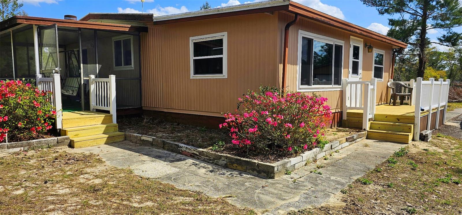 The word "country" has many meanings. Country music, what country do you live in, and " your brother-in-law is pure country." When we speak of country in the context of this home, we mean, you are living out in THEE Country, The Sticks, The Boonies. Whatever you want to call it, if you want to live or vacation somewhere referred to by one of these monikers or any others, come take a look at this place. Bring the boat, the RV, the 4-wheelers, the side-by-sides, and all the mechanical toys you want. Prefer live animals over mechanical toys? Fine, bring them. The deed restrictions allow animals. Your only limitation to the type and amount of animals you can have is the Citrus County Land Development Code, Chapter 3730. Animals are calculated based on the amount of acreage, then the schedule is applied. If this is important to you, make sure you inquire with the "Planner of the Day" at Citrus County Land Development. Now back to the home and property. The home has been updated with new bathroom vanities, and a rubber membrane roof with a 15-year warranty, that was installed in 2016. The warranty can be transferred to the new owner. Since the home was listed, the sellers replaced the wood steps and boards on the deck. They also put a fresh coat of paint on the exterior of the home. New owners will find comfort in the new HVAC package unit(2024), and nice vinyl, dual-pane windows. For a home with less than 1300 sq ft of living space, there is plenty of storage and room to move about. Outside there is the 2-car, detached garage with dual roll-up doors, and 2 sheds to keep your "stuff". The property is located about 1 mile down the limerock/sand road from the pavement. No 4-wheel drive is necessary for access. There's a lot of value here. Come check it out for yourself. This description was written by a human who has been in the home, and driven the area, not some AI bot.
