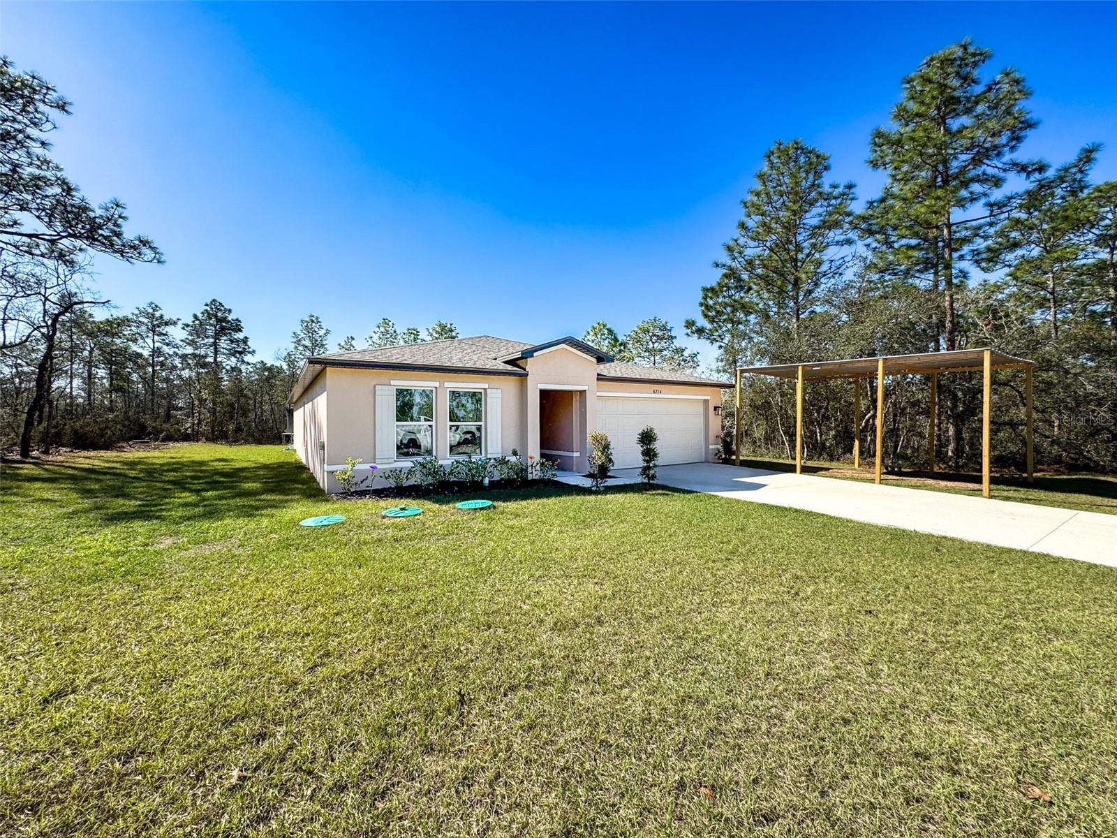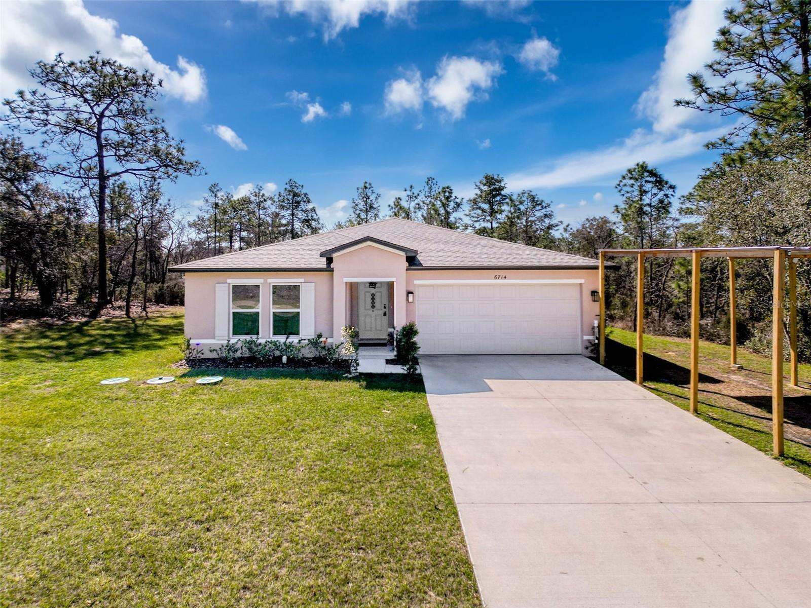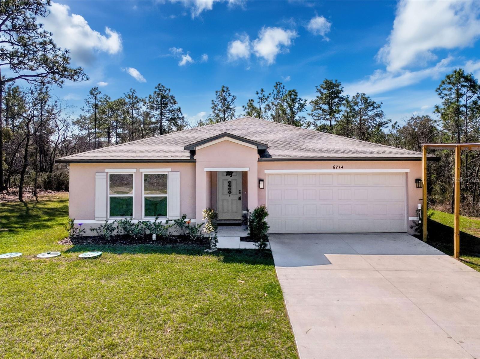 Welcome to this beautiful newer construction home built in 2023, offering modern comfort in a prime Citrus Springs location. With four bedrooms, two baths, and over 1,800 square feet of living space, this home is move-in ready with nothing to worry about. Situated on a .23-acre lot in a very quiet location, it provides easy access to ATV and side-by-side trails for outdoor enthusiasts. This home also features a RainSoft water filtration system, ensuring high-quality water throughout. Conveniently located just 10 minutes from Dunnellon and the scenic Rainbow River, 15 to 20 minutes from Crystal River and the Gulf, and 10 to 15 minutes from the new Shoppes at Black Diamond, featuring Target, Starbucks, and other amenities, this home offers the perfect balance of peaceful living and accessibility. Don’t miss your opportunity to own a like-new home in one of Citrus County’s most desirable locations.**INQUIRE ABOUT THE SPECIAL FINANCING INCENTIVE BEING OFFERED ON THE PROPERTY**
