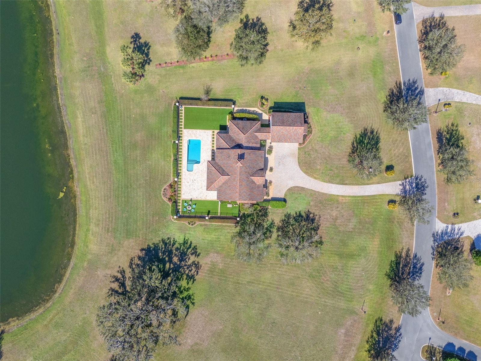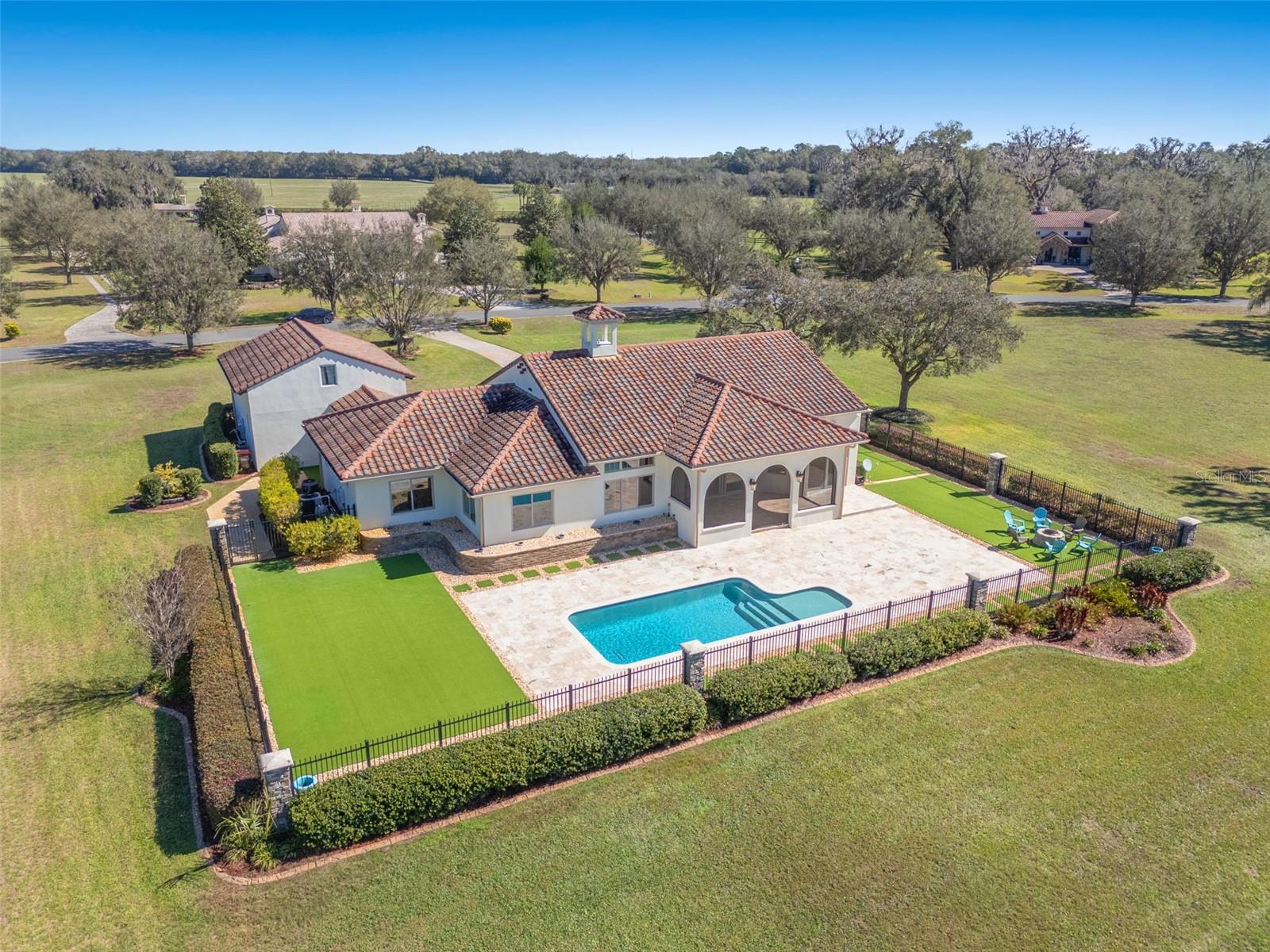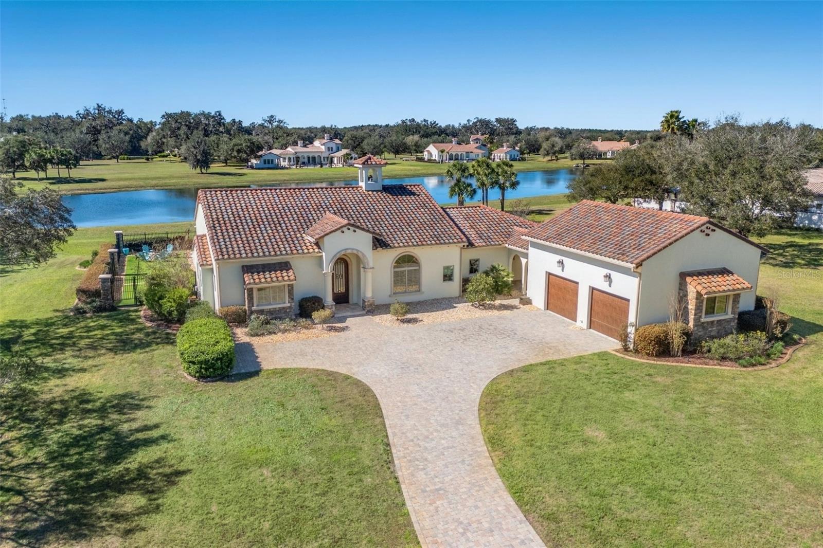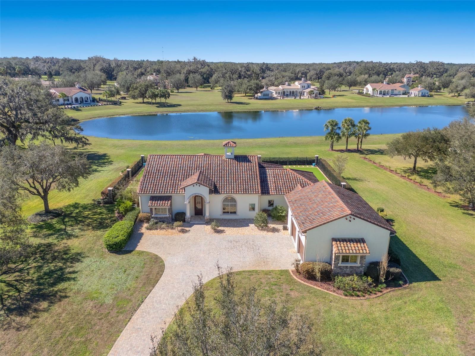 One or more photo(s) has been virtually staged. Designed for the most discerning buyer, this 1.55-acre Tuscan-style estate is the epitome of luxury, privacy, and timeless elegance all nestled within the exclusive gated community of Bel-Lago. After making your way through the gated neighborhood entry, you are welcomed home via an extended paver driveway, setting the tone for the luxury and privacy that awaits. Open the front door and you will be instantly captivated by picturesque pool and pond views visible from nearly every room and the expansive patio—complete with high-end automated retractable screens for year-round enjoyment. This sprawling 3,300 heated sqft., single level residence is highlighted by an open concept living area and triple split-bedroom layout, the thoughtful floor plan ensures an ideal space for entertaining, comfort and privacy for all. The chef’s kitchen at the heart of the home boasts granite countertops, top of the line appliances, an oversized pantry, and a large breakfast bar, ideal for entertaining. Elegant trayed ceilings, a stunning fireplace and plantation shutters add architectural sophistication in the main living space and beyond. At the front of the home is a flex space, ideal for an office, additional bedroom or formal dining area. The primary suite is a true retreat, offering a generous walk-in closet, dual vanities, soaking tub, and walk-in shower. 2 additional bedrooms, each with en-suite baths, provide ample space for family or guests. A well-appointed laundry room enhances functionality while the bonus room above the expanded 2 car garage provides additional versatile living space for many different uses. The resort-style backyard features the covered and screened lanai, heated pool with expansive travertine deck, fire pit, and fully fenced turfed yard all set against the tranquil back drop of a lake and lush landscaping. Located in Ocala’s premier equestrian community, Bel-Lago offers8,000 acres of preserved land with private trails for horseback riding, cycling, and walking. Just 10 minutes from shopping and health centers, 20 minutes from the World Equestrian Center, and 35 minutes to the Gulf Coast, this meticulously maintained home offers a rare opportunity to experience elegance, space, and tranquility in an unmatched luxury setting.