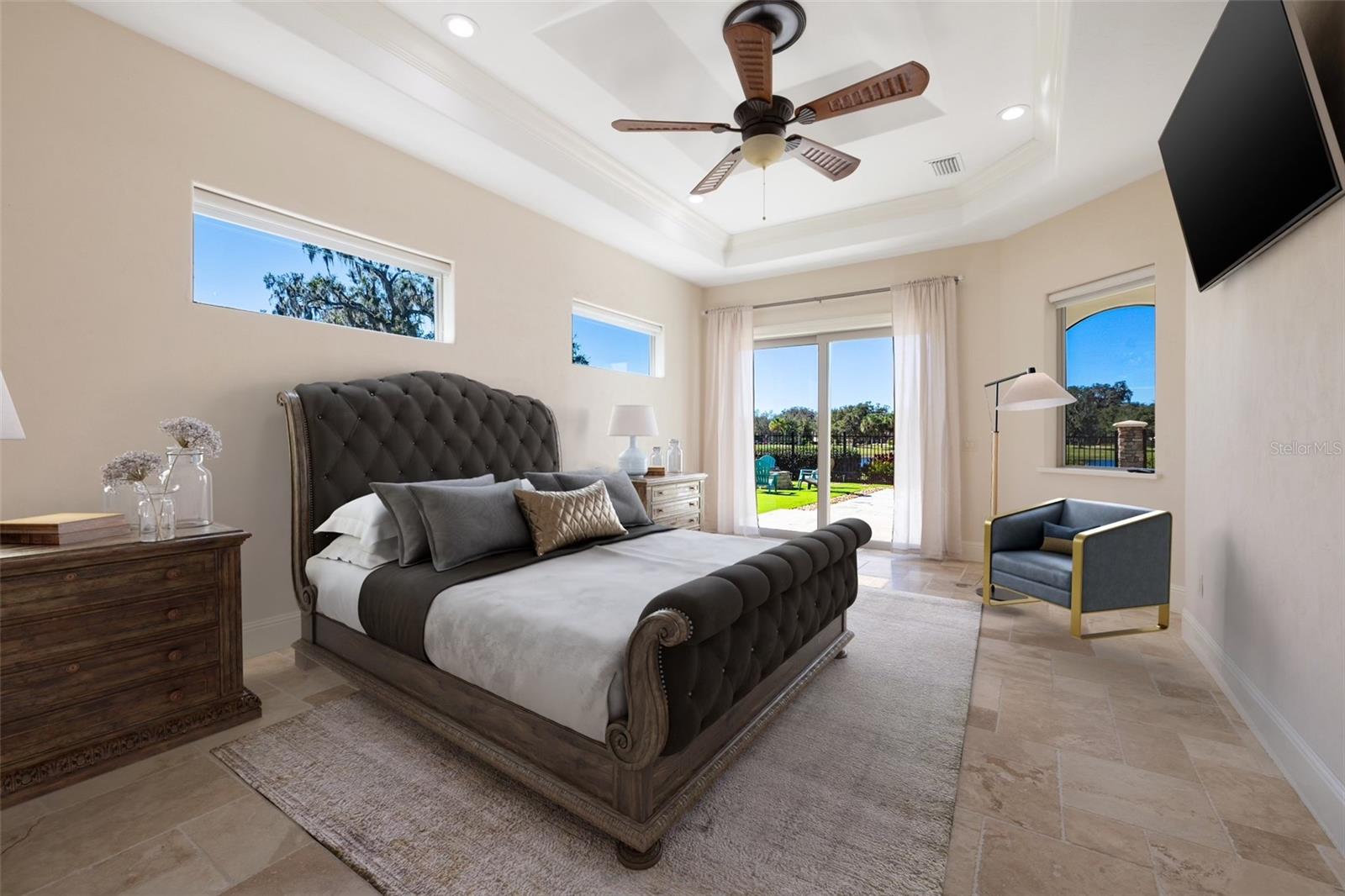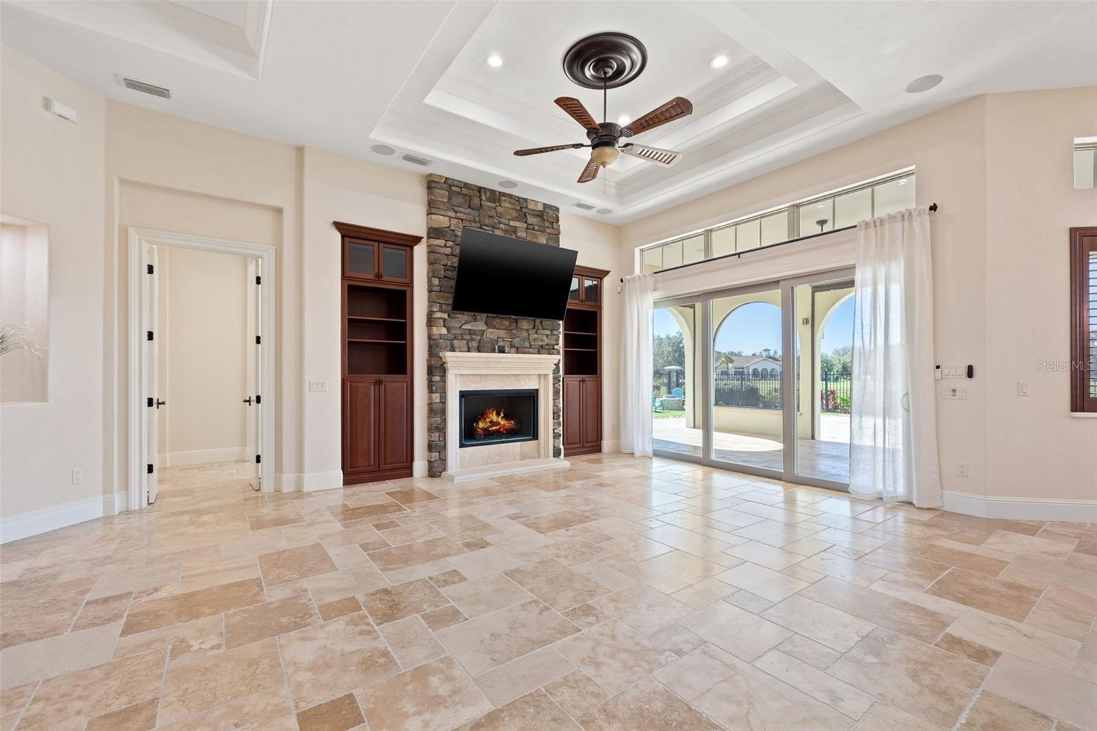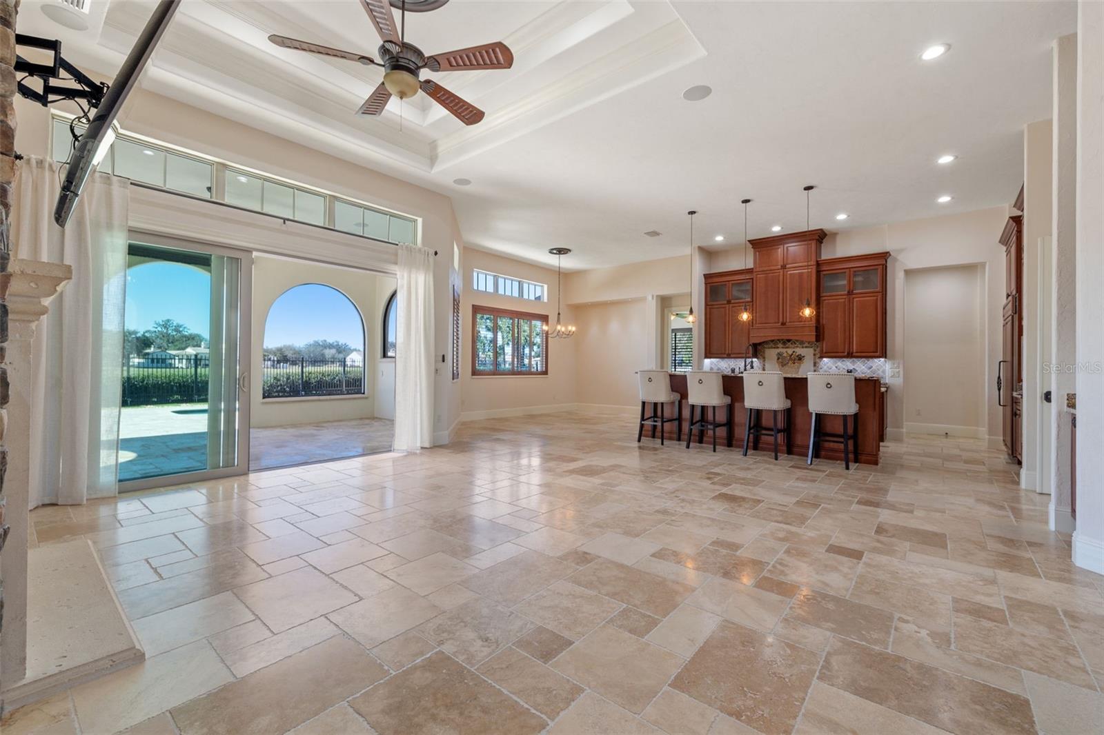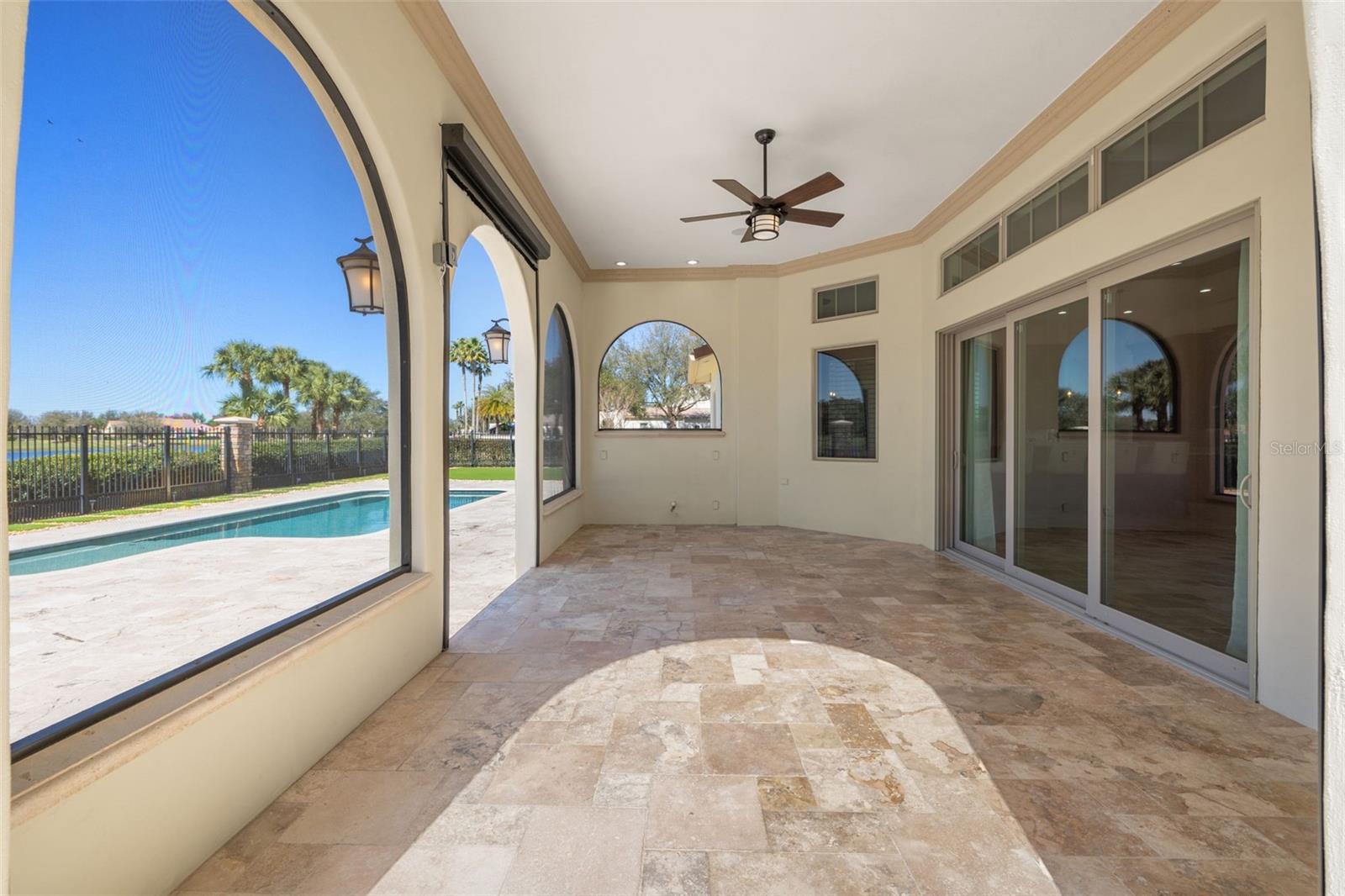 One or more photo(s) has been virtually staged. Designed for the most discerning buyer, this 1.55-acre Tuscan-style estate is the epitome of luxury, privacy, and timeless elegance all nestled within the exclusive gated community of Bel-Lago. After making your way through the gated neighborhood entry, you are welcomed home via an extended paver driveway, setting the tone for the luxury and privacy that awaits. Open the front door and you will be instantly captivated by picturesque pool and pond views visible from nearly every room and the expansive patio—complete with high-end automated retractable screens for year-round enjoyment. This sprawling 3,300 heated sqft., single level residence is highlighted by an open concept living area and triple split-bedroom layout, the thoughtful floor plan ensures an ideal space for entertaining, comfort and privacy for all. The chef’s kitchen at the heart of the home boasts granite countertops, top of the line appliances, an oversized pantry, and a large breakfast bar, ideal for entertaining. Elegant trayed ceilings, a stunning fireplace and plantation shutters add architectural sophistication in the main living space and beyond. At the front of the home is a flex space, ideal for an office, additional bedroom or formal dining area. The primary suite is a true retreat, offering a generous walk-in closet, dual vanities, soaking tub, and walk-in shower. 2 additional bedrooms, each with en-suite baths, provide ample space for family or guests. A well-appointed laundry room enhances functionality while the bonus room above the expanded 2 car garage provides additional versatile living space for many different uses. The resort-style backyard features the covered and screened lanai, heated pool with expansive travertine deck, fire pit, and fully fenced turfed yard all set against the tranquil back drop of a lake and lush landscaping. Located in Ocala’s premier equestrian community, Bel-Lago offers8,000 acres of preserved land with private trails for horseback riding, cycling, and walking. Just 10 minutes from shopping and health centers, 20 minutes from the World Equestrian Center, and 35 minutes to the Gulf Coast, this meticulously maintained home offers a rare opportunity to experience elegance, space, and tranquility in an unmatched luxury setting.