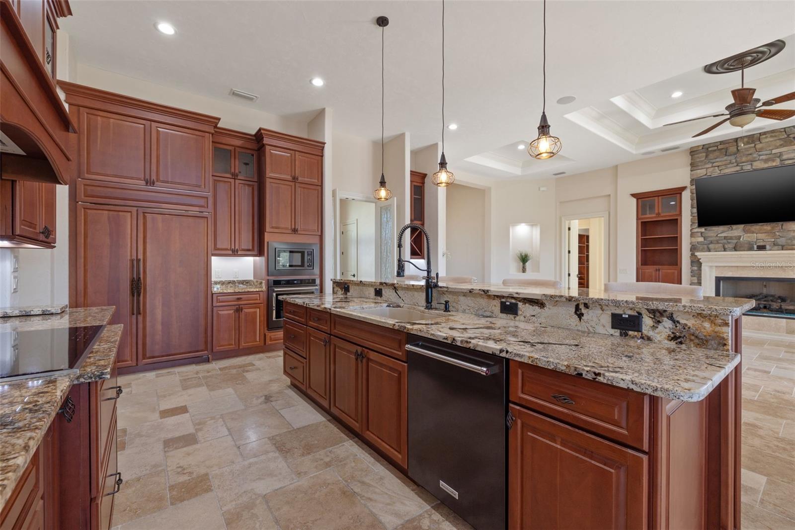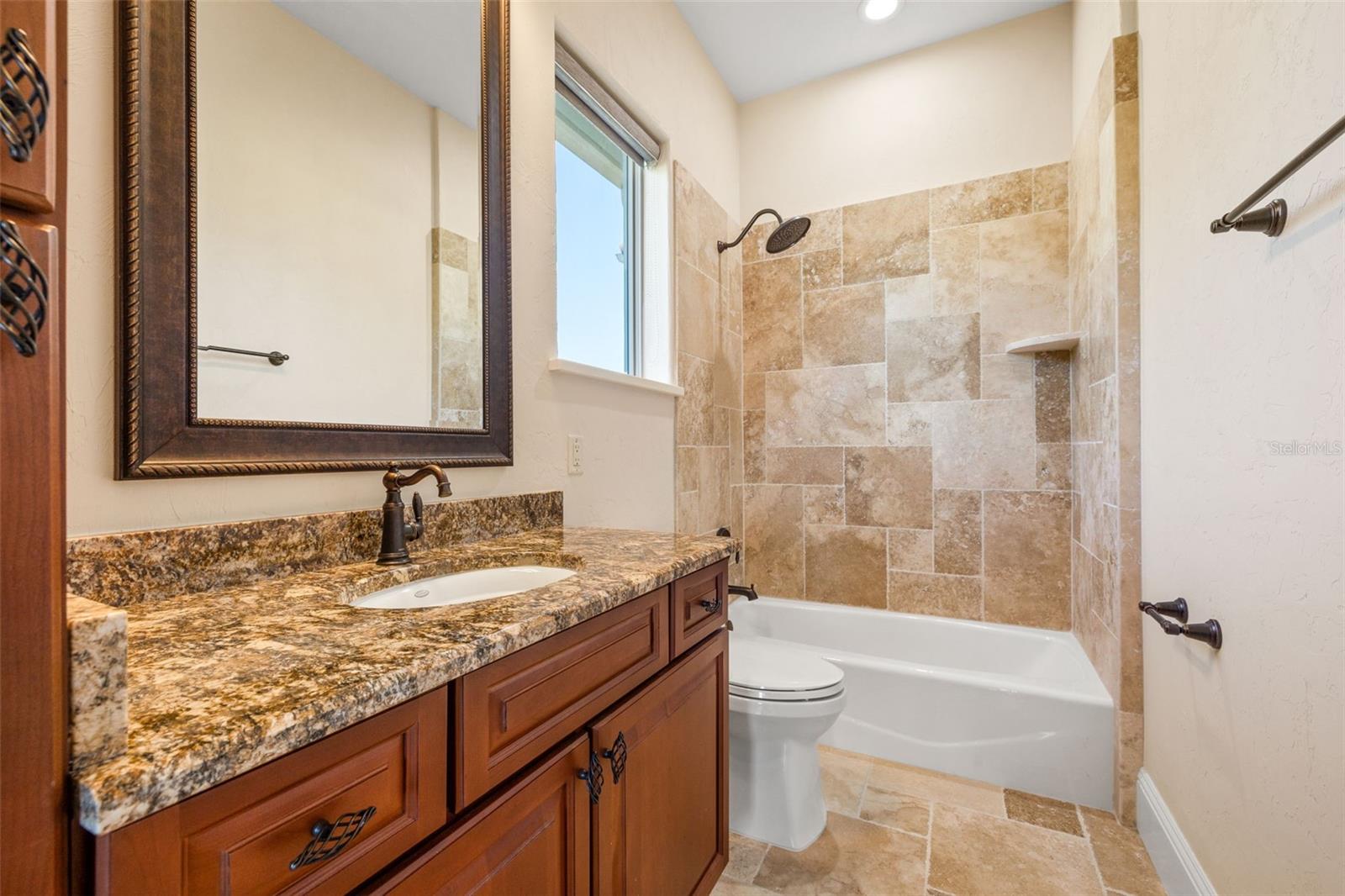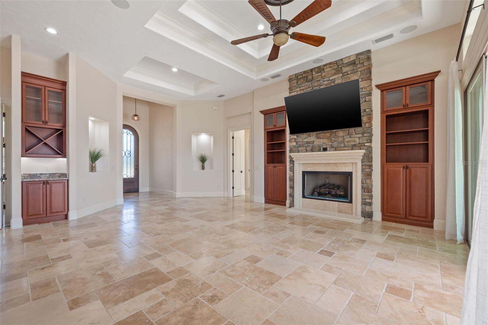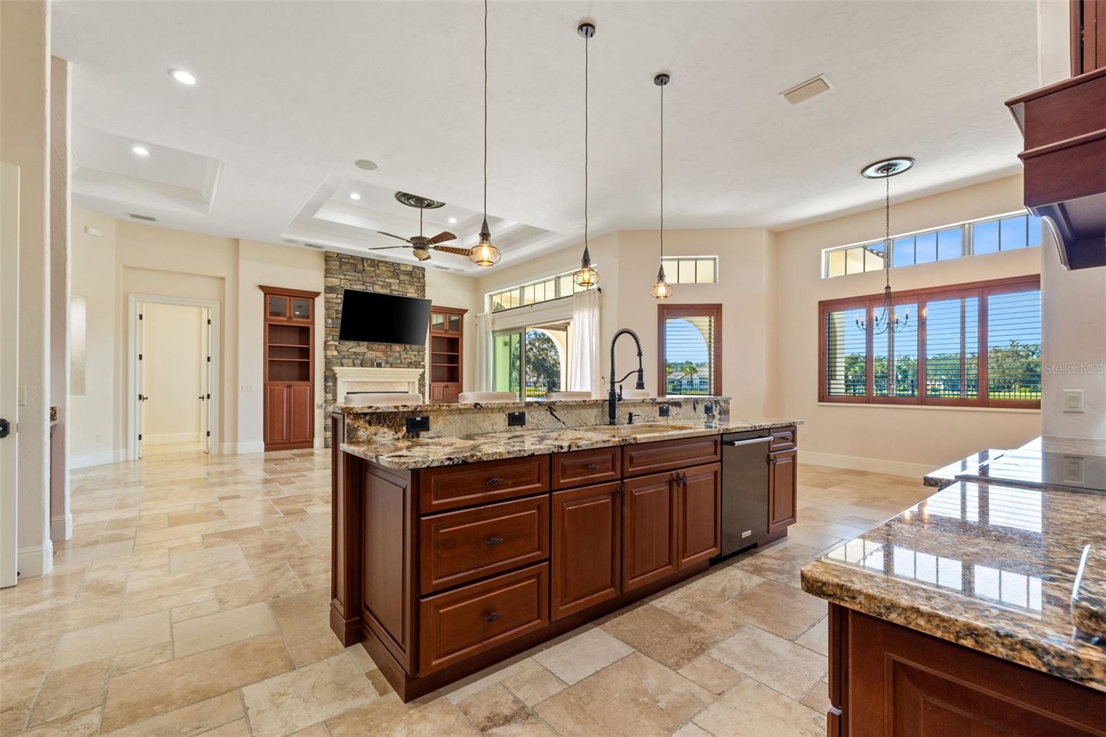 One or more photo(s) has been virtually staged. Designed for the most discerning buyer, this 1.55-acre Tuscan-style estate is the epitome of luxury, privacy, and timeless elegance all nestled within the exclusive gated community of Bel-Lago. After making your way through the gated neighborhood entry, you are welcomed home via an extended paver driveway, setting the tone for the luxury and privacy that awaits. Open the front door and you will be instantly captivated by picturesque pool and pond views visible from nearly every room and the expansive patio—complete with high-end automated retractable screens for year-round enjoyment. This sprawling 3,300 heated sqft., single level residence is highlighted by an open concept living area and triple split-bedroom layout, the thoughtful floor plan ensures an ideal space for entertaining, comfort and privacy for all. The chef’s kitchen at the heart of the home boasts granite countertops, top of the line appliances, an oversized pantry, and a large breakfast bar, ideal for entertaining. Elegant trayed ceilings, a stunning fireplace and plantation shutters add architectural sophistication in the main living space and beyond. At the front of the home is a flex space, ideal for an office, additional bedroom or formal dining area. The primary suite is a true retreat, offering a generous walk-in closet, dual vanities, soaking tub, and walk-in shower. 2 additional bedrooms, each with en-suite baths, provide ample space for family or guests. A well-appointed laundry room enhances functionality while the bonus room above the expanded 2 car garage provides additional versatile living space for many different uses. The resort-style backyard features the covered and screened lanai, heated pool with expansive travertine deck, fire pit, and fully fenced turfed yard all set against the tranquil back drop of a lake and lush landscaping. Located in Ocala’s premier equestrian community, Bel-Lago offers8,000 acres of preserved land with private trails for horseback riding, cycling, and walking. Just 10 minutes from shopping and health centers, 20 minutes from the World Equestrian Center, and 35 minutes to the Gulf Coast, this meticulously maintained home offers a rare opportunity to experience elegance, space, and tranquility in an unmatched luxury setting.