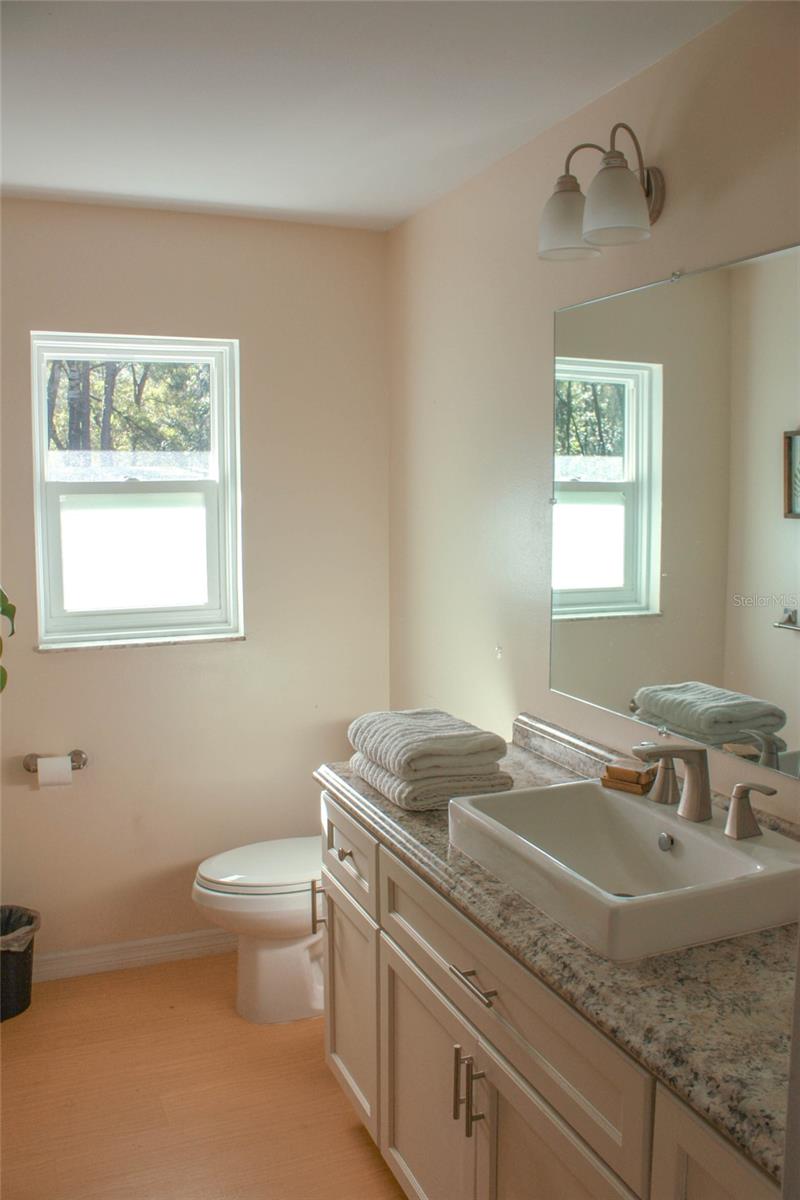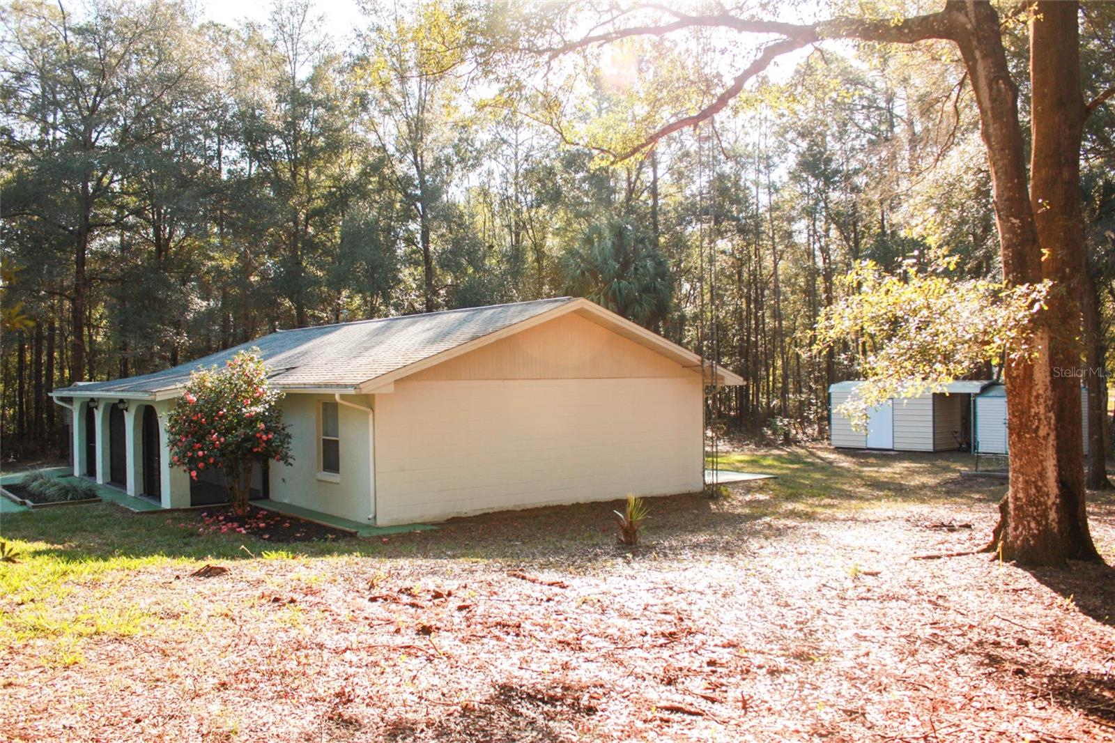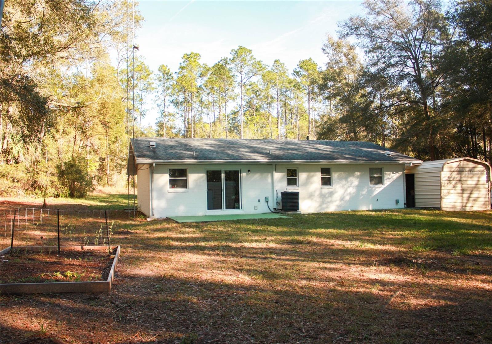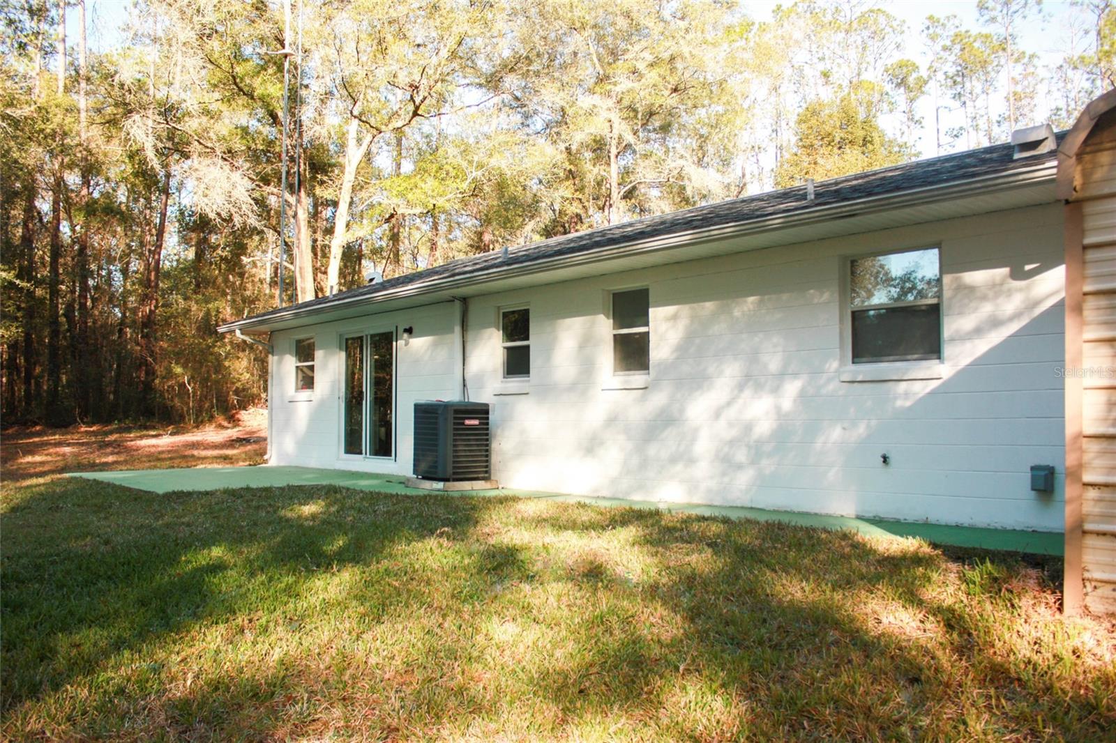 This is an amazing opportunity to own this beautifully renovated 2 bedroom, 2 bathroom home. Located on a .24 acre lot, this home not only has the convenience of being recently renovated, but the privacy to come along with it. This home has new paint throughout the inside and outside. Walking up to the home, there are several mature decorative trees that flower at different times throughout the year. There is a covered screened porch that makes it more enjoyable to be outside in the evenings, or to watch a summer thunderstorm. Entering the home, you walk into a large living room that's plenty big enough for entertaining or just enjoying your comfy furniture. Off this main area, you have a fully renovated bathroom that is well lit both with light fixtures and nature light. Leading off the living room to the right is a large kitchen with new soft close cabinets, a new stainless Samsung stove/oven, microwave and refrigerator and a new stainless Bosch ultra quiet dishwasher. Lighting fixtures are also brand new. A laundry closet with a hot water heater is conveniently off the kitchen. This is a newer water heater and air conditioning system, which is still under warranty. The washer and dryer are new and come with this home. From the kitchen, you can go one direction into a spacious bedroom or out the slider onto a nice sized freshly painted patio. If you leave the living room and go left, there is a spare room, which is currently being used as a master bedroom, as it has a full bathroom directly off of it. Leading off the spare room is a 2nd spacious bedroom which is currently being used as a nursery. This home has a very large carport adjacent to the house which is being used a garage and has access to the house through the spare room. The garage also has access to a 220 power hookup that can be used for power tools or for a whole house generator. The yard is flat and all cleared, bordered by matured trees which provides a private setting, perfect for entertaining or just working on your projects in peace. Two large storage sheds can be found at the back of this property. This home is located just 3 miles from Rainbow Springs State Park. Although located outside the city, you are only 10 minutes to local shopping, restaurants and other spring centered parks. Should you want to travel to a bigger city, you are just several minutes from the main route that takes you straight into Ocala. This home has the amazing qualities of privacy and newness you have been looking for.