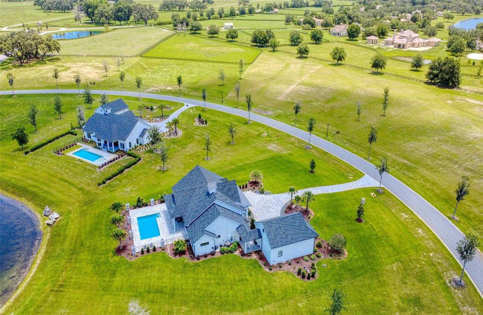 HUGE PRICE REDUCTION.....Welcome Home! Situated on 1.25 Acres within the prestigious equestrian community of Bel-Lago, this custom-built Modern Farmhouse is the epitome of luxury meets quiet country living! Take a deep breath and relax while you pass through the secure gated entry and wind along the oak tree lined lane alongside the sprawling horse filled pastures that seem to go on for miles. As you arrive to the property, the paver drive leads you past the meticulously manicured lawn and landscaping. The curb appeal of this home lacks for nothing with a spacious front porch, perfect to sit back and enjoy you morning coffee! Stepping inside you are greeted by the soaring vaulted ceilings that open up the foyer and continue into the great room beyond! The current owners built this home as the perfect winter residence with entertaining and family in mind! The amply great sized room features a floor to ceiling natural stone electric fireplace, perfect for those rare chilly Florida nights! This kitchen is equipped with stunning two-toned floor to ceiling cabinetry, under the sink instant hot water, stainless steel Kitchenaid appliances, quartz countertops and a glistening glass tile backsplash. The casual cook or the seasoned chef should have no problem settling right in! At this property the outdoor livings is just as important as the indoor and that is accentuated by the oversized sliding doors that open up to the covered patio and heated pool! The view beyond the pool is spectacular as well and overlooks a beautiful pond! Back inside the split floorplan makes this home perfect for a family or retired couple living alone! The primary suite has the same 12-foot ceilings as throughout the rest of the property and another access out onto the back patio! There is a large built out closet and spectacular ensuite bath with separate soaking tub, walk in shower and anti-fog mirrors! The flex room at the front of the property makes for the perfect office, 3rd bedroom or den! There is a half bath for guests just next-door and an oversized laundry room with a folding table and hanging space! The 2nd ensuite bedroom isn’t much of a downgrade from the primary suite either and is offers gorgeous views of the pond! The huge 2 car garage is connected to the main house via covered breezeway. The 2nd story of the garage is currently unfinished but would make a spectacular art studio, home gym or a great guest suite! There is plumbing available in the garage so another full bath could also be added in the space! Some of the many upgrades and features of the property include: whole house water softener & filtration system, a reverse osmosis filter under the kitchen sink, 2 tankless water heaters, custom electric shades throughout the entire property, a full home security system including cameras surrounding the entire home and so, so much more! The location of this home cannot be beat and is just minutes form the World Equestrian Center, 1.5 hours to Tampa and Orlando, moments to the Rainbow River and all the shopping, dining and entertainment you could desire! This is the one you have been waiting for, schedule your showing today before this little slice of heaven belongs to someone else!