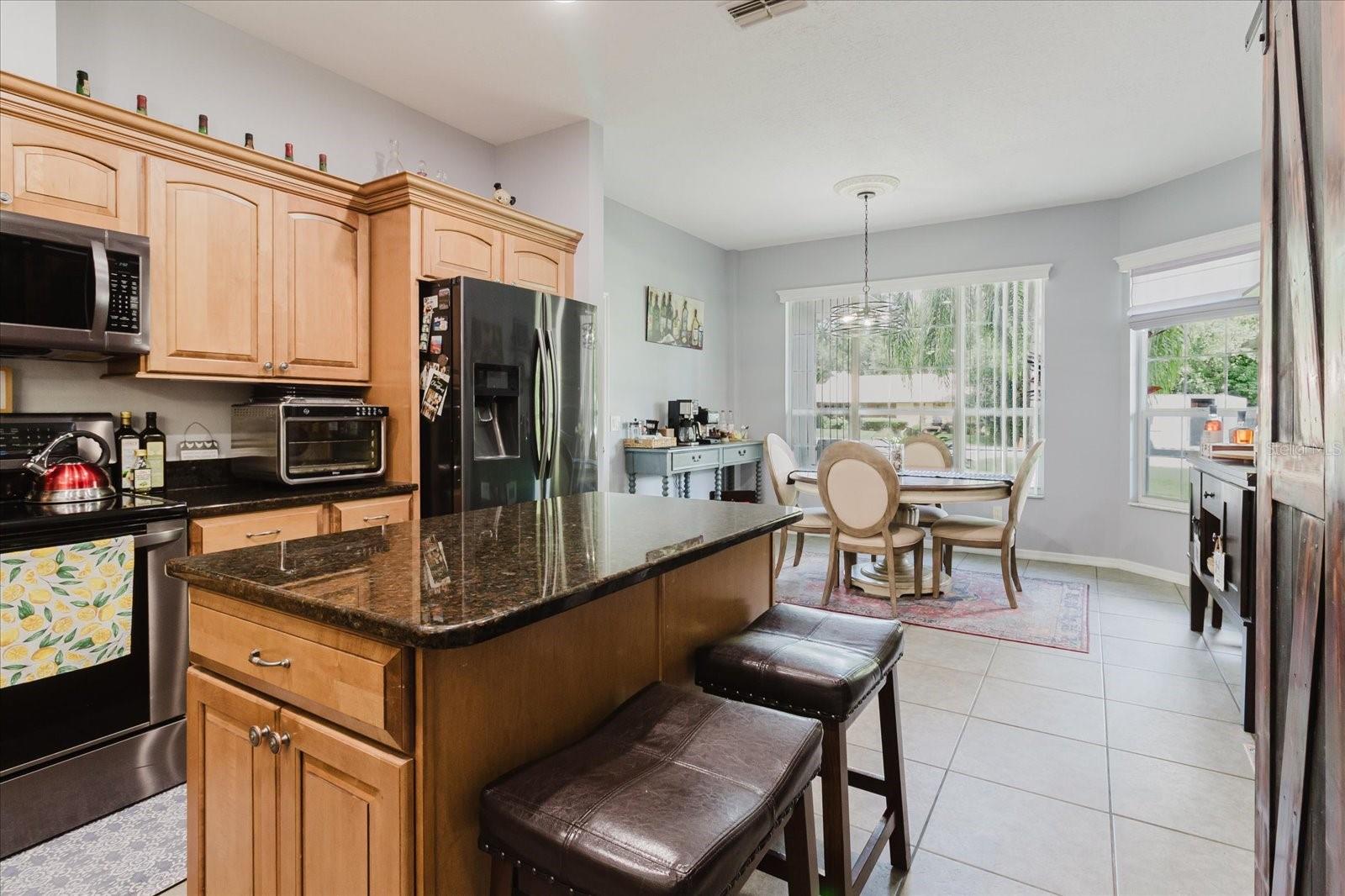 Price Improvement on this beautiful home in the Rainbow Springs neighborhood inside Dunnellonl! Nestled on a spacious ¼-acre lot, this beautifully designed 3-bedroom, 2-bathroom residence offers the perfect blend of luxury, functionality, and modern comfort. Step inside to an open-concept layout featuring a gourmet kitchen complete with sleek modern cabinetry, granite countertops, and high-end stainless steel appliances—perfect for entertaining or creating culinary masterpieces. The expansive living areas are filled with natural light and designed for both everyday living and hosting. This home offers a spacious kitchen with an eating area, a full coffee bar, and a kitchen island. Retreat to the spacious master suite, which boasts a walk-in closet and a spa-like ensuite bathroom with dual vanities and luxurious finishes. The home features an in-ground pool with salt/solar heating, a covered lanai with privacy screening, and a screened in front porch with beautifully landscaped yard with irrigation, oversized garage has lots of storage, and the driveway has been upgraded with pavers. The back part of the roof was replaced in 2023 and the front part of the roof was replaced in 2014. The HVAC system was replaced in 2019. Enjoy low property taxes and minimal HOA fees, while also taking advantage of the community’s impressive amenities: community pool, restaurant, workout room, pool tables, pickleball, tennis courts, bike trails and walking trails and easy access to Rainbow River. Conveniently located near lots of shopping, this home truly has it all. Don't miss the immersive 3D Matterport tour to explore every inch of this incredible home!