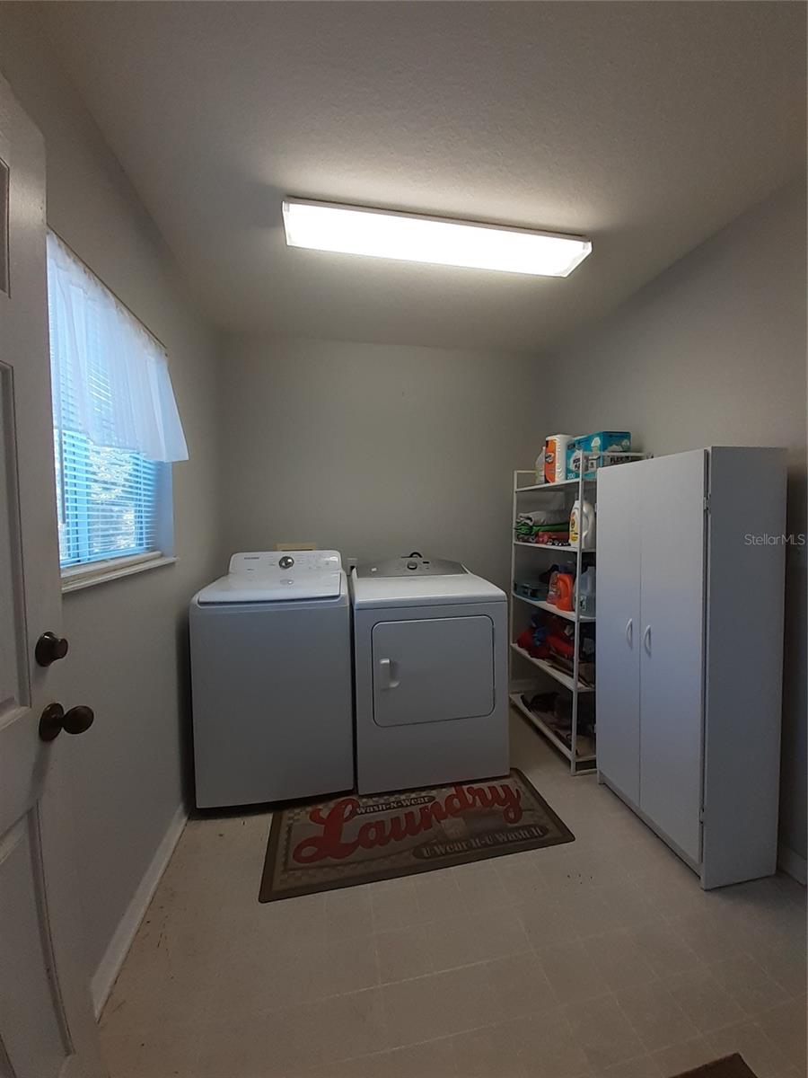 Welcome to Spruce Creek Preserve, a premier 55+ community surrounded by the Ross Prairie Preserve, just minutes to terrific shopping, restaurants and entertainment! If you like hiking, biking, canoeing or kayaking there are many places for you to enjoy. But if you prefer activities closer to home, there are so many to choose from right in the community. This spacious, updated home is located on a tree lined street only 2 blocks long. You will love the huge kitchen with newer stainless steel appliances, loads of cabinets and tons of counter space. There is a sweet spot for a table by the bay window. The dining room can accommodate a table and hutch. The primary bedroom is large, easily having a king sized bed, nightstands, dresser with mirror and a chest of drawers without seeming to be crowded. It also has an ensuite bath with double sinks and 2 closets, one a walk in. The guest bedroom is very roomy and has a walk in closet as well. The living room and family room are both large, allowing a variety of options for furniture arrangement. It's also perfect for family members to have separate spaces! From the family room you can walk out to the patio to grill and chill! The laundry room is right off the kitchen and also serves as a mudroom from the garage.