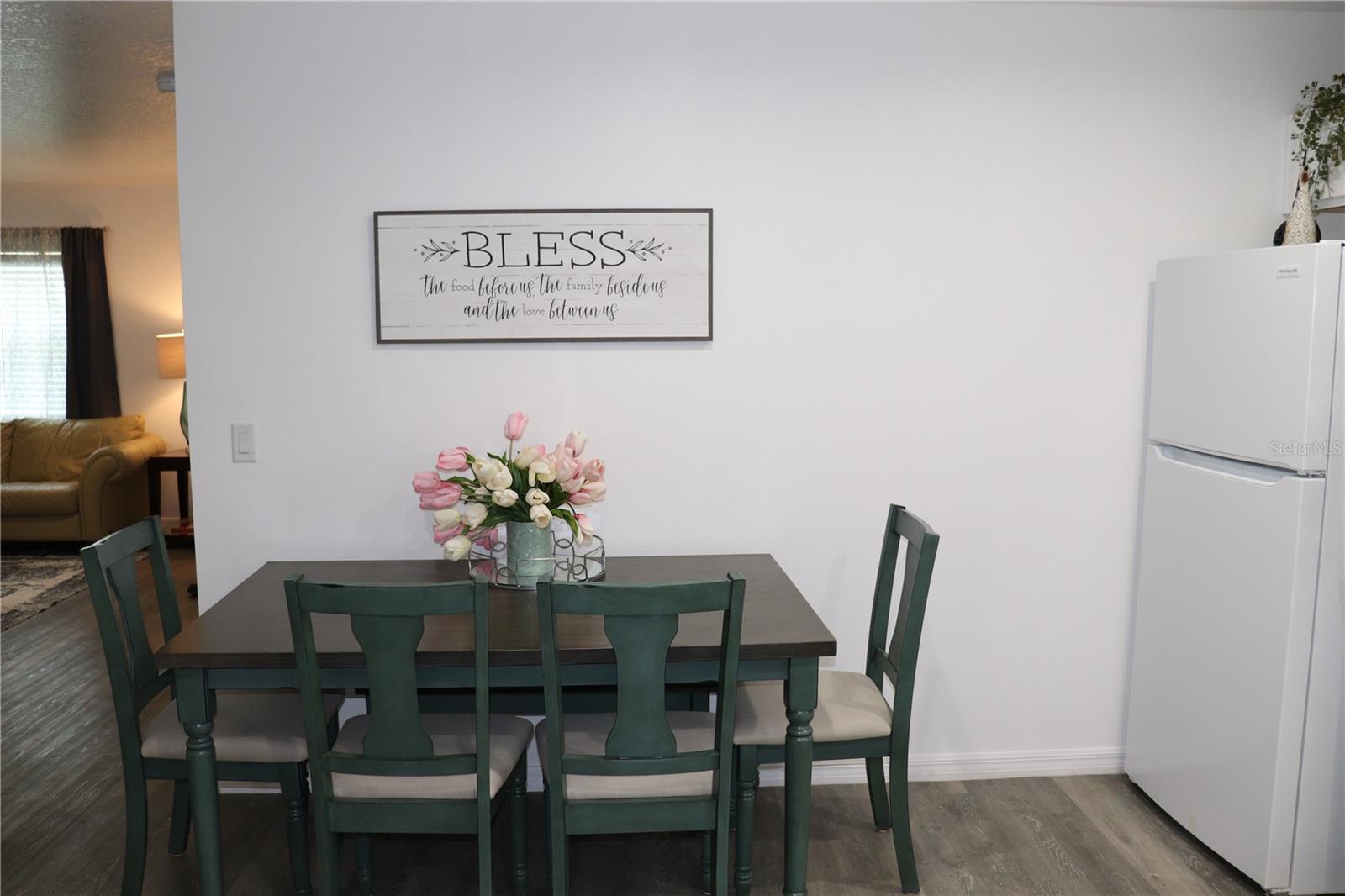 This 4 bedroom home offers a lovely family-friendly floorplan, and is one of the lowest priced new home construction homes in Citrus Springs. Plus the seller is offering up to $7,500. in closing costs! Don't miss out on this affordable home, fully equipped with all appliances and also window treatments. This well built home showcases four nice-sized bedrooms, two full baths, and a warm, cozy floor plan. The kitchen offers wood cabinetry, hard surface countertops, Frigidaire appliances, including the refrigerator. Throughout the home, you will love the ease of maintenance and the beautiful look of the luxury vinyl plank flooring. No carpet!! The inside laundry room is bright and cheerful, with a large window to bring in natural light and includes an Amana washer and dryer. It is truly move-in ready. For further peace of mind, the heat pump is a Trane, and the roof has 25-year shingles. You'll love the ease of maintenance, as well as the exterior siding. No painting! This home is situated on a large and spacious corner homesite, adding to the fantastic ambiance of this home and the fabulous price. There are no HOA fees, and Citrus Springs has a community center, tennis courts, and recreational activities for the outdoor enthusiasts. Citrus Springs is also located near freshwater fishing, biking trails, and a short distance away to Crystal River for saltwater fishing or swimming with the manatees. Don't miss out on this very affordable home, all appliances, and no HOA fees! Some photos are included of the furnished model of the same floor plan, so you can see how well this home lives. This home showcases Florida lifestyle living at a truly affordable price.