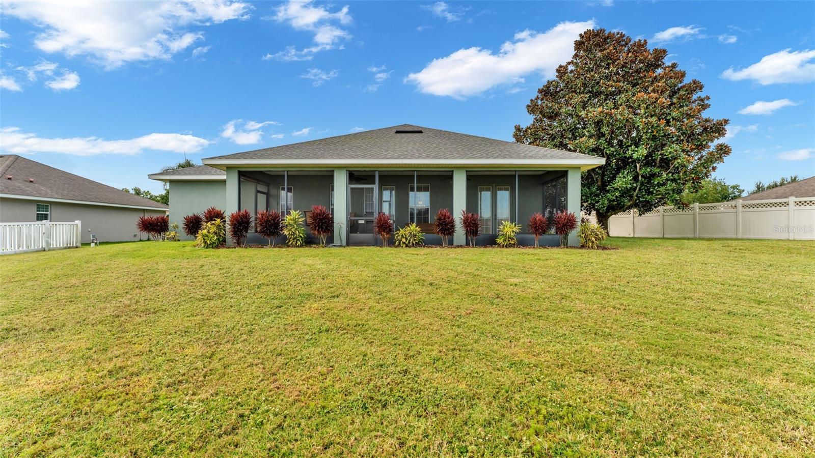 Welcome to 730 Country Cove Walk, a beautifully maintained home with curb appeal that shines. The property features a spacious yard with meticulous landscaping, accented by palm trees and vibrant colored plantings that buffer both the front and back exterior. An extended paver driveway—recently sealed—offers additional parking convenience on the right side, setting the tone for thoughtful details throughout. Inside, this 4-bedroom, 2-bathroom residence offers a flexible and functional layout. Through the front door, the hallway leads left into a fourth bedroom currently used as an office, while to the right you’ll find a designated dining room that can easily serve as a flex space. The heart of the home is the open living area, connected seamlessly to a well-appointed kitchen with stainless steel appliances, abundant countertop and cabinet space, and a dedicated area for a coffee or wine bar. French doors extend the living space outdoors, opening to an oversized lanai with tranquil views of the spacious backyard and the retention area beyond—no immediate neighbors and a peaceful breeze make this the perfect place to relax or entertain. The primary suite is tucked to the left side of the home, offering direct lanai access, a walk-in closet, and a spa-like ensuite with an extended vanity, soaking tub, and tiled walk-in shower. Two additional bedrooms are located down the hallway from the living area alongside the guest bathroom, with one bedroom featuring a sliding pocket door that creates an ideal guest or MIL suite. This thoughtful tri-split floorplan balances privacy and flexibility—perfect for work-from-home needs, growing families, or visiting guests. Important updates and features include: water heater (2006), appliances (all original from 2006 when the home was built), and a new roof installed on 4/28/2023. Blending indoor comfort with outdoor beauty, this home is ready for its next chapter. Schedule your private showing today and fall in love with everything 730 Country Cove Walk has to offer!