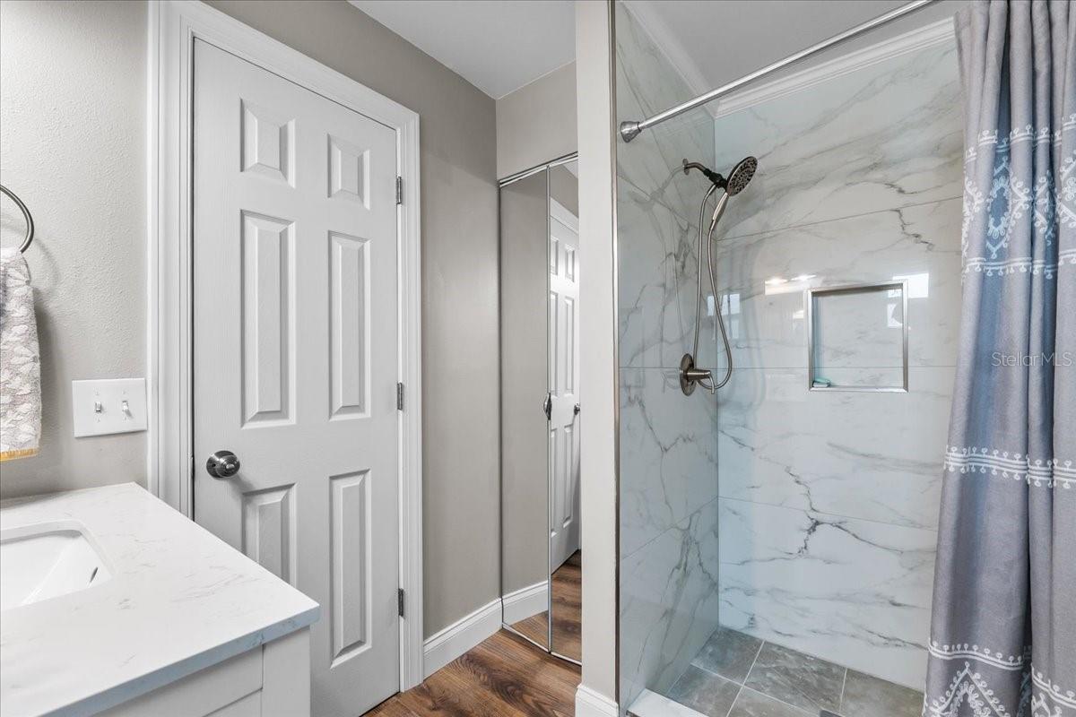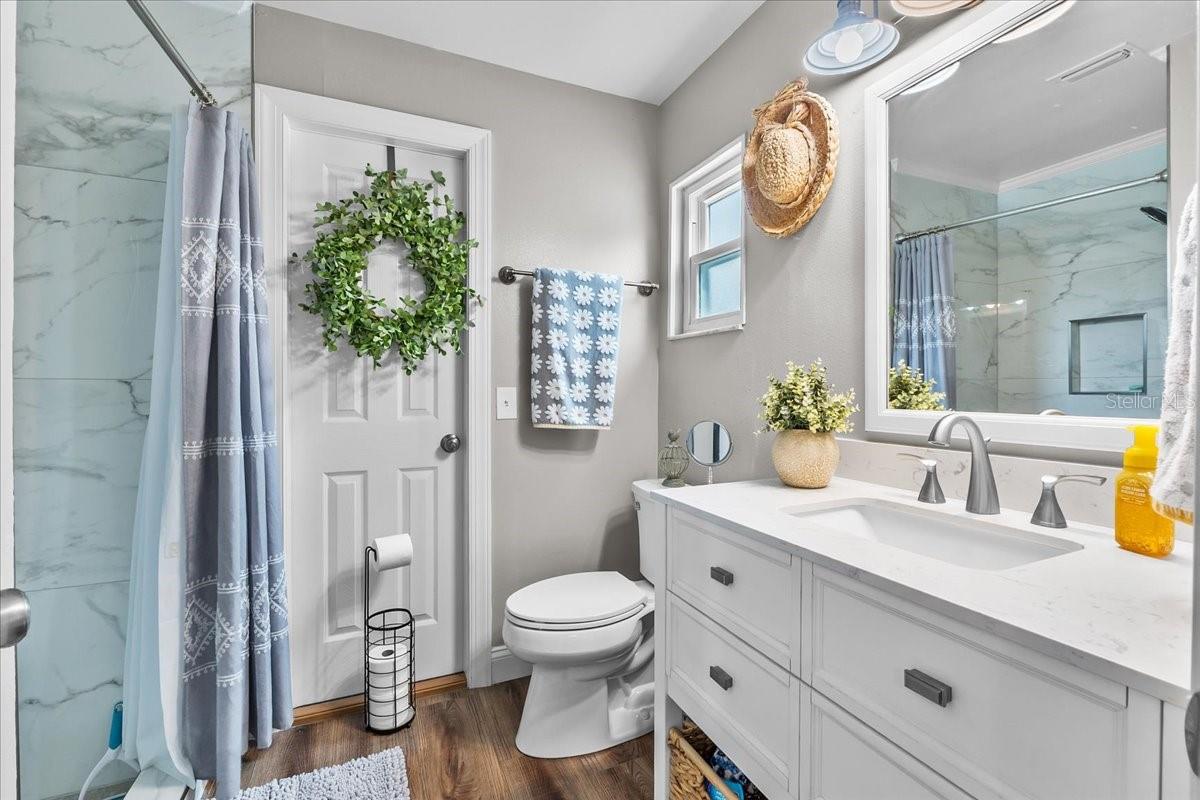 Lake Life Meets Designer Luxury! Welcome to 1155 N 11th St, Eagle Lake, where modern elegance and Florida living come together just steps from Lake McLeod. Enjoy lake views from your driveway and quick access to the public boat ramp at the end of the street - great for boating, fishing, or sunset cruising. Step inside and fall in love with this fully renovated 3-bedroom, 2-bathroom home, where every detail has been carefully crafted. The first thing you'll notice - A stunning brick wood-burning fireplace framed by a shiplap accent wall, creating an inviting focal point that feels like home. The custom kitchen is a showstopper and chef's dream! Featuring an upgraded waterfall island with gorgeous high class porcelain countertops, custom white cabinetry, a gas range with a custom hood vent, inset refrigerator with wrap around cabinetry, and a beautiful glass tile backsplash-perfect for the home chef who appreciates style and function. Additional upgrades include: roof 2021, A/C system 2021, and all-new ductwork 2025, luxury vinyl plank flooring with wide planks. Windows replaced with double pane windows in 2021 and had custom plantation shutters fitted to windows in 2021, large baseboards 2021, renovated bathrooms, including a spa-inspired primary suite with an oversized tiled walk-in shower and elegant vanity and water heater. There's nothing to do here! Also a new shed for additional storage! Outside is your personal retreat! Enjoy a beautifully landscaped backyard complete with a fire pit for entertaining or relaxing under the stars. The vinyl fencing provides both privacy and charm. Relax in the sunroom with a view of your backyard oasis, or head to the lake for an evening on the water. All appliances including washer and dryer stay with the home, making this an effortless move-in. If you're searching for a home that offers designer finishes, thoughtful upgrades, and a wonderful location near Lake McLeod, this is the one.