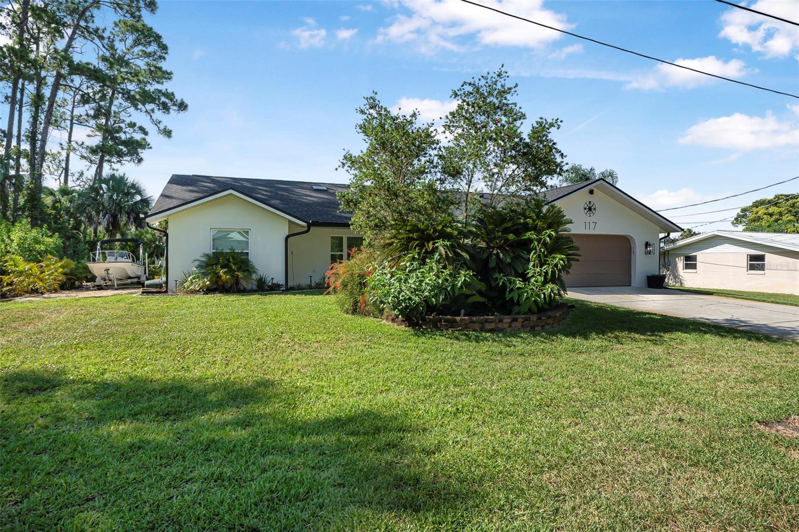 Welcome to 117 Azalea Drive—your private waterfront escape in the peaceful Waterway Park neighborhood of Edgewater. This beautifully updated home sits on a saltwater canal with direct access to the Halifax River and out to the ocean. Enjoy the Florida boating lifestyle with your own private two-story dock and boat lift, perfect for fishing, sunset cruises, or heading straight out to sea. The home has been thoughtfully upgraded with a brand-new roof, fresh exterior stucco, and new composite decking on the dock. Inside, you'll love the open floor plan, updated kitchen with granite countertops and stainless appliances, and a spacious new walk-in closet in the master suite. Tile flooring runs throughout, and the bathrooms have been tastefully updated to match the home's coastal charm. Located on a quiet, low-traffic street with friendly neighbors and no HOA, this property offers true peace and privacy. Whether you're enjoying your morning coffee by the water or watching the breathtaking sunsets from your dock, life here feels like a permanent vacation. Don't miss your chance to own a piece of Florida paradise with deep water access, modern updates, and a backyard built for the best days of your life.
